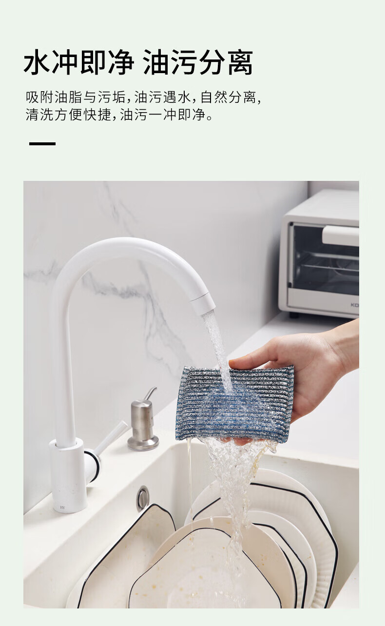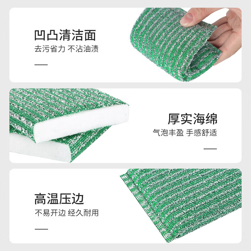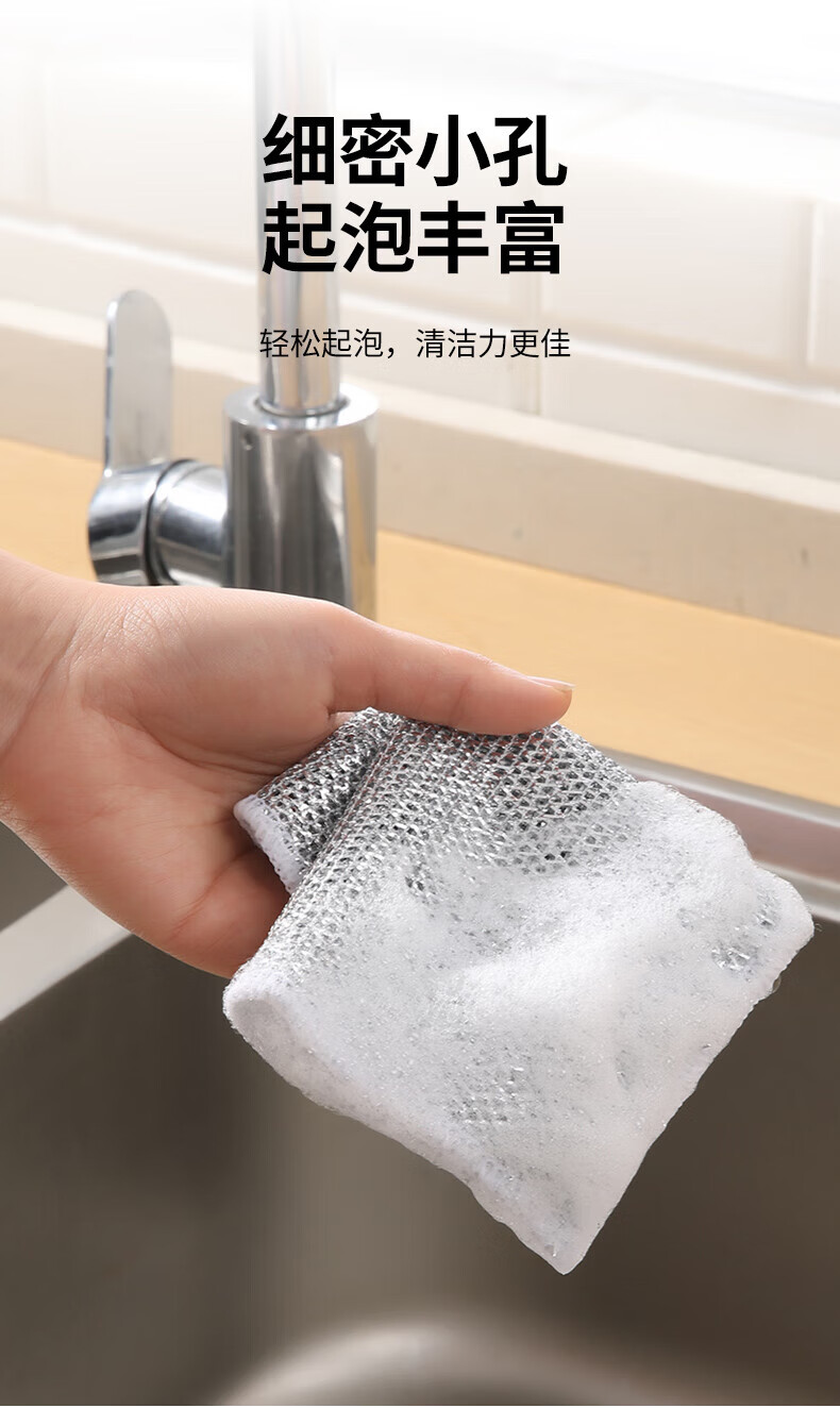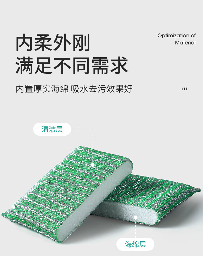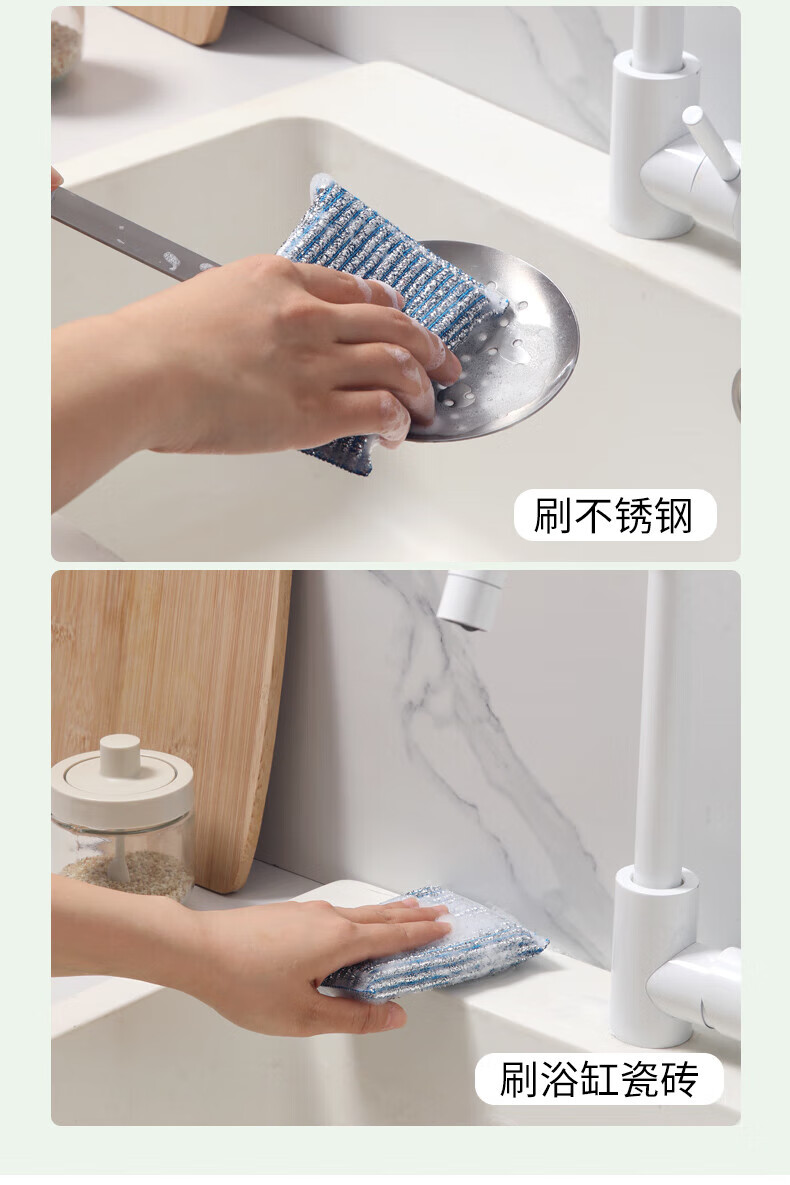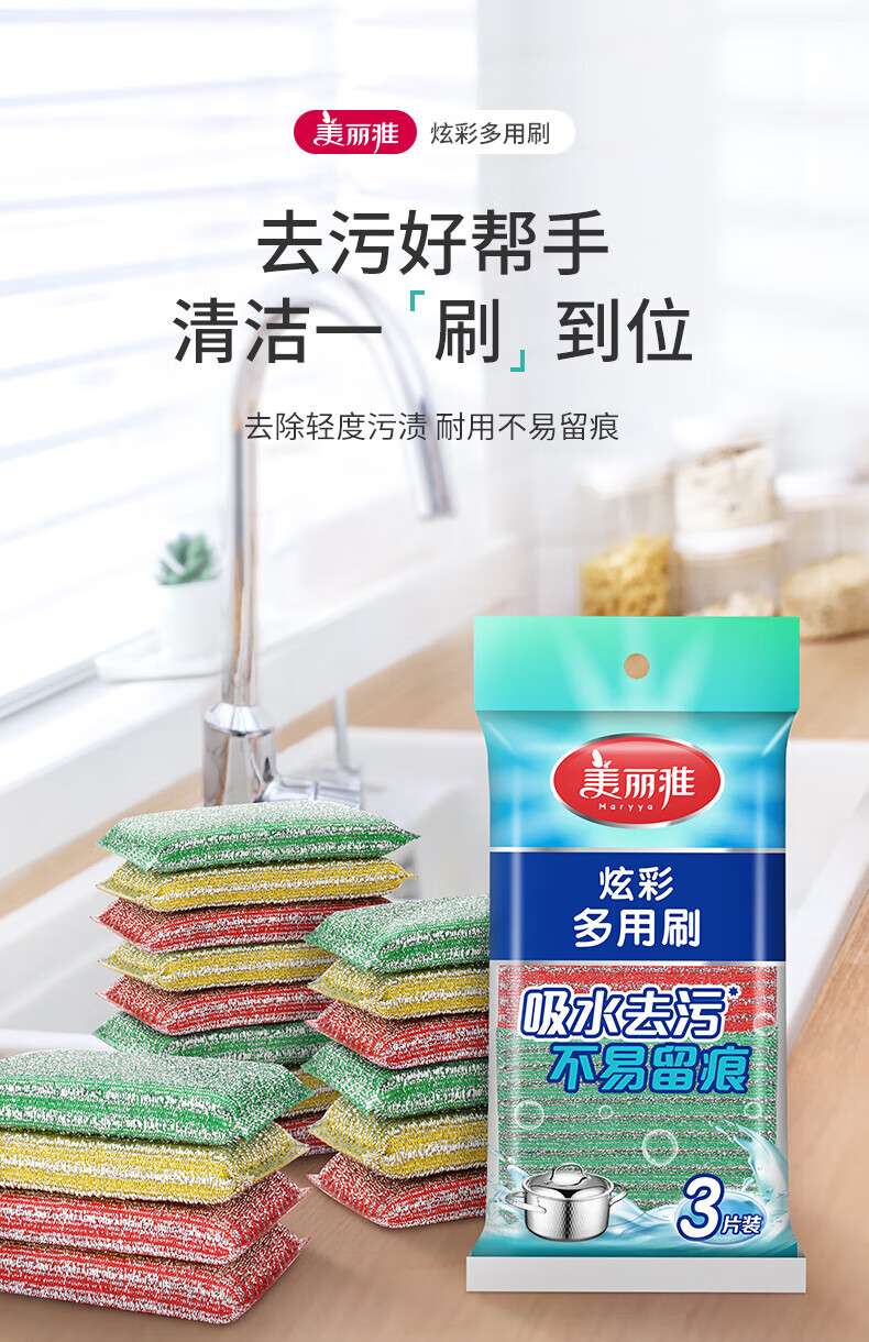 美丽雅百洁布厨房洗碗刷锅吸水去污易清洗海绵百洁布多用洗碗抹布 金柔百洁布-1包装(4片)