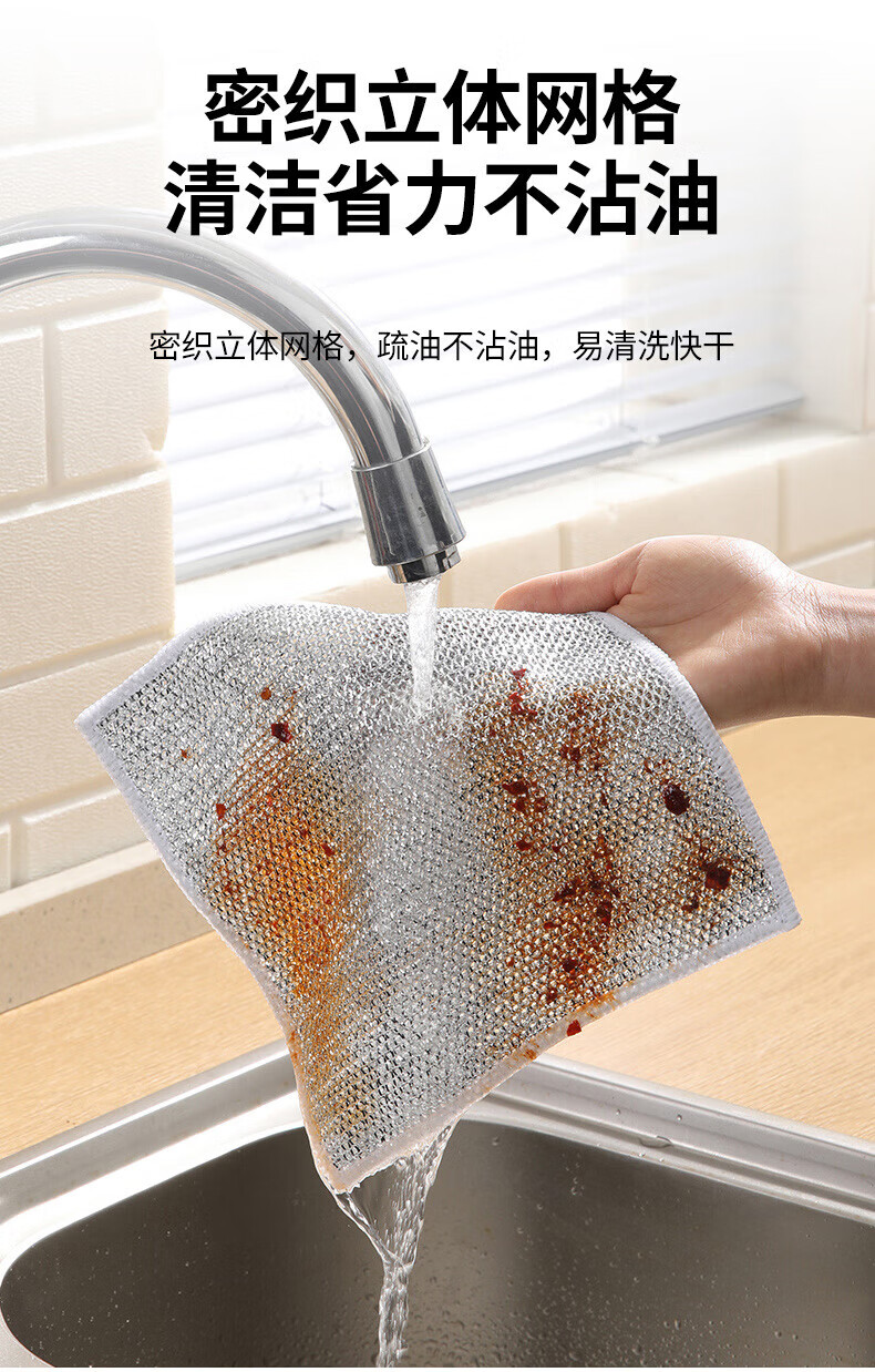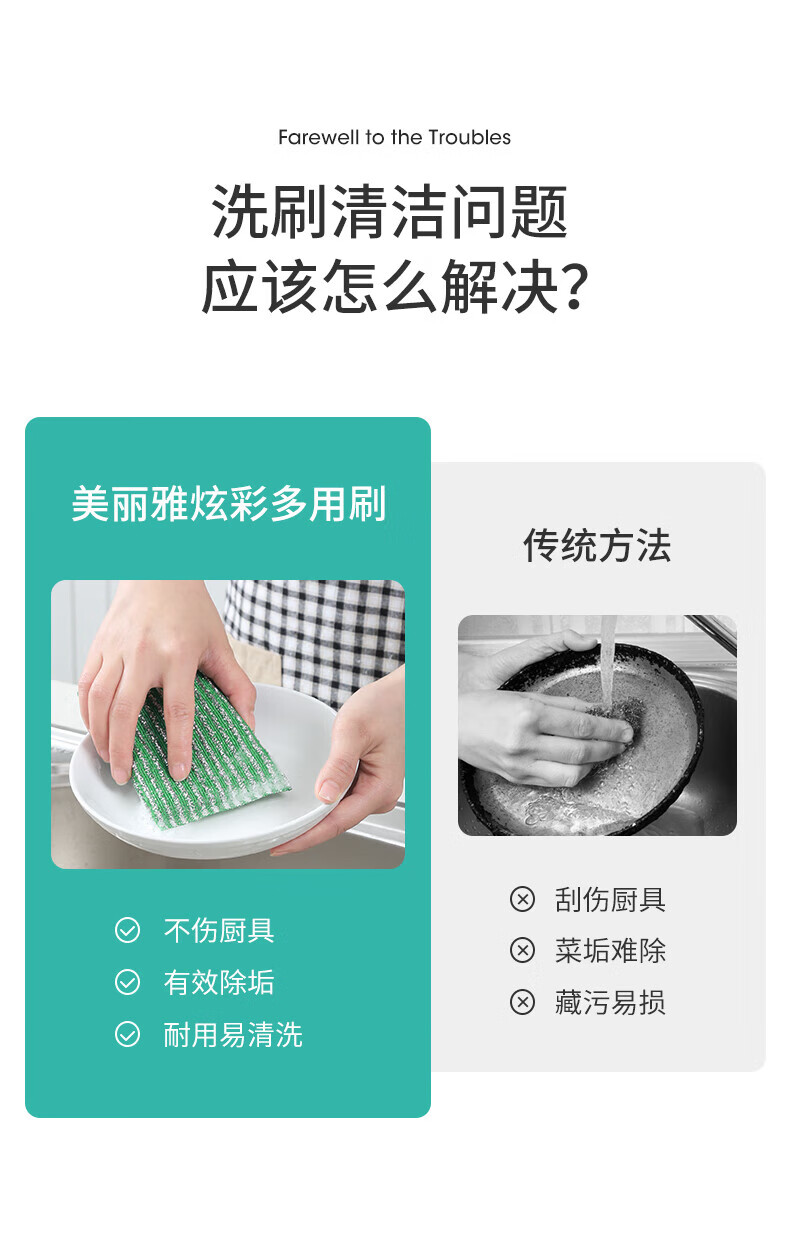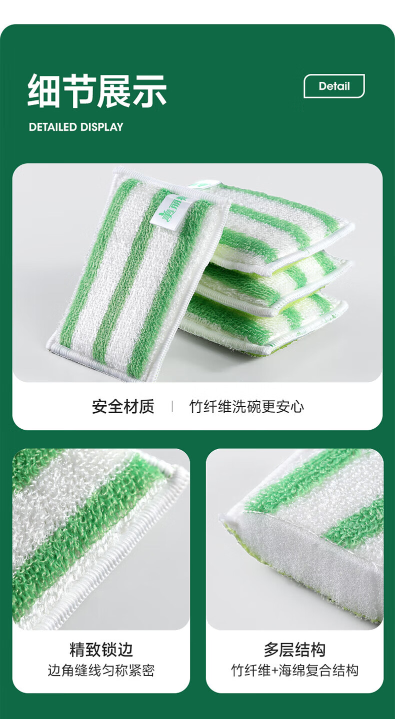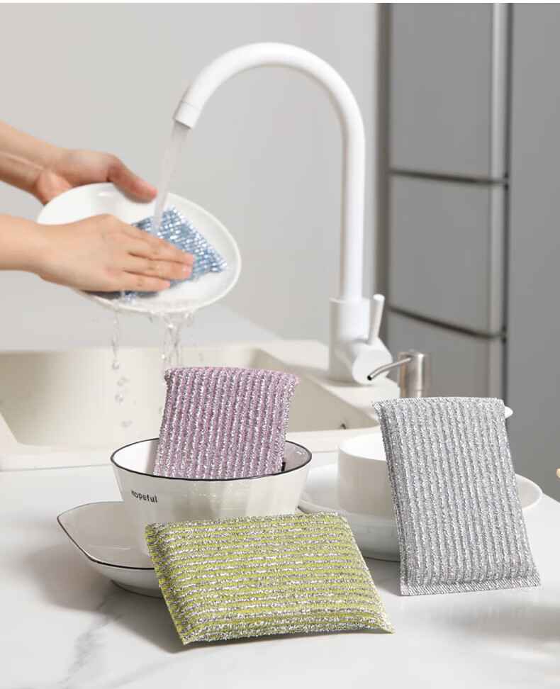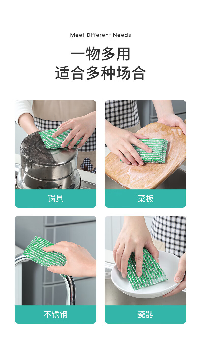 美丽雅百洁布厨房洗碗刷锅吸水去污易清洗海绵百洁布多用洗碗抹布 金柔百洁布-1包装(4片)