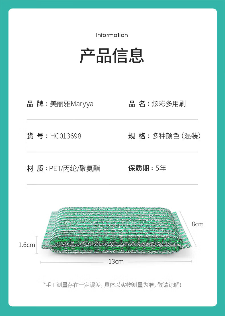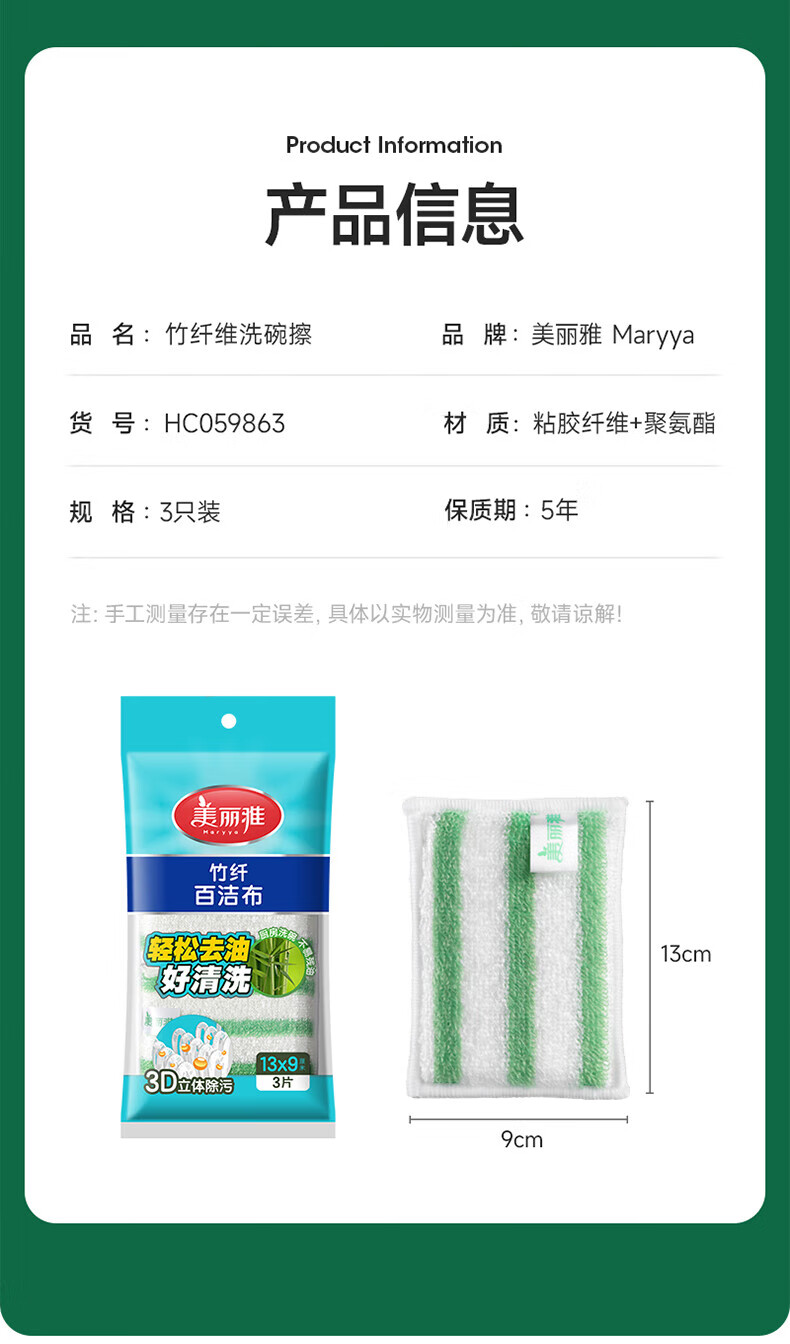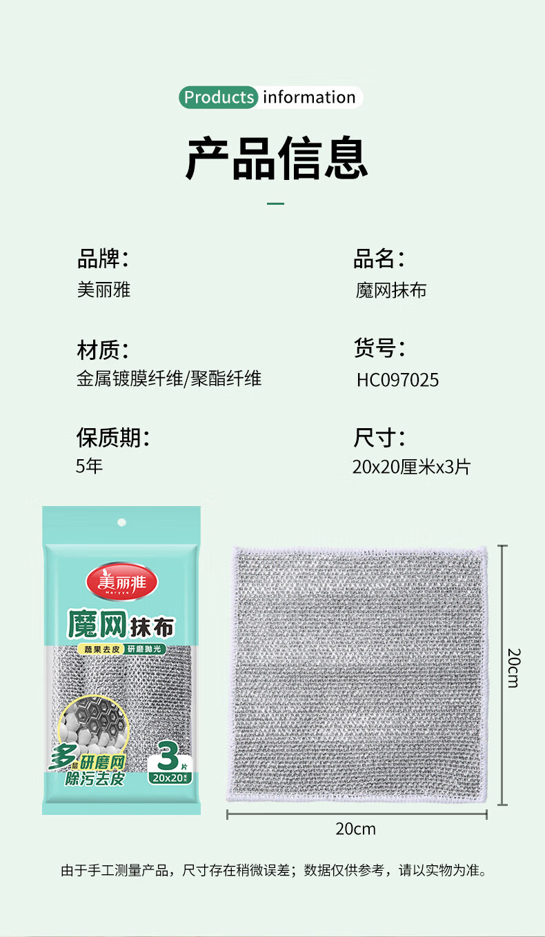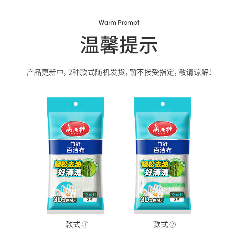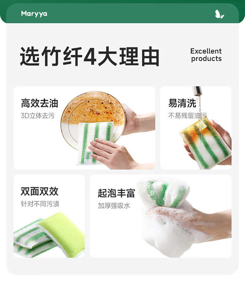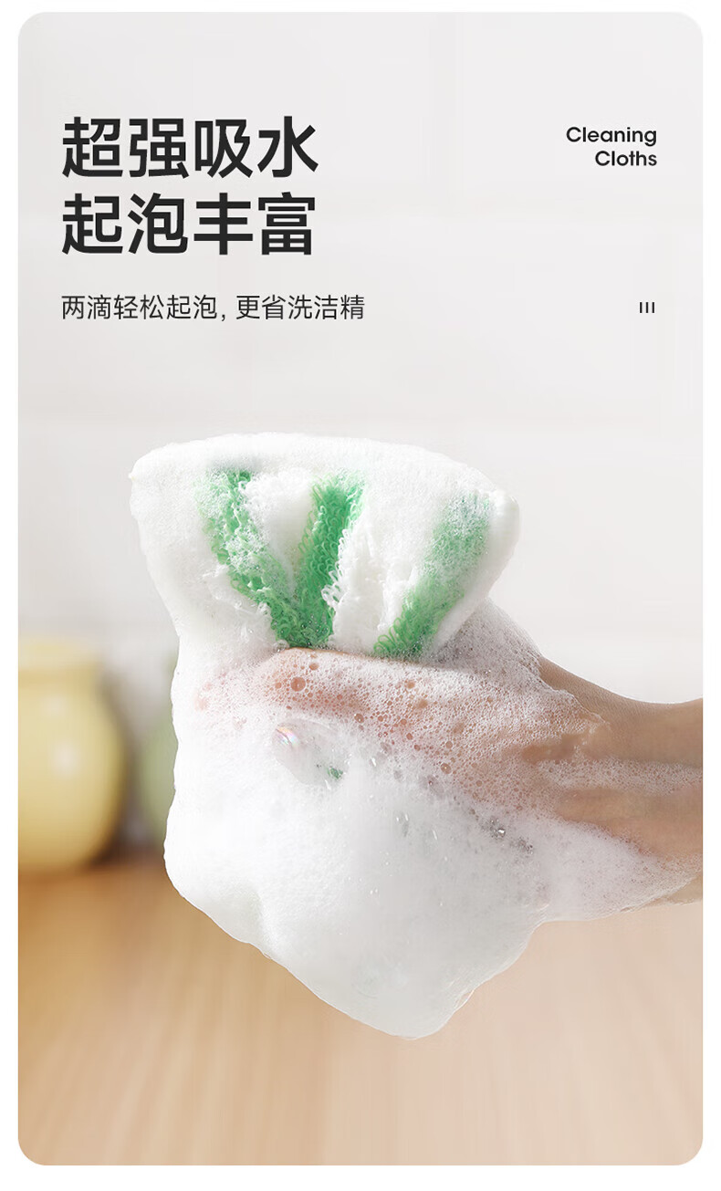 美丽雅百洁布厨房洗碗刷锅吸水去污易清洗海绵百洁布多用洗碗抹布 金柔百洁布-1包装(4片)