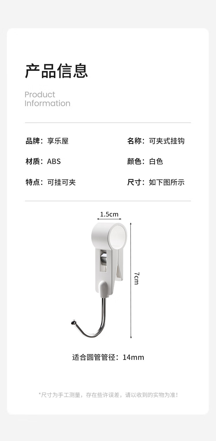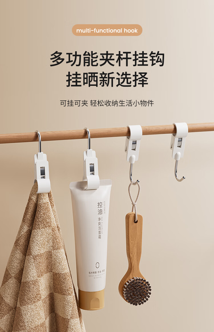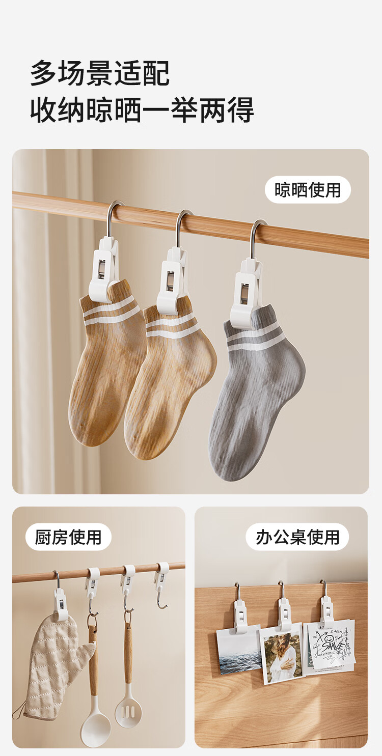 享乐屋厨房挂钩s型卡扣大号多功能免打孔夹子挂钩对对夹卫生间可挂可夹 大号 3个【可夹可挂 14mm管径】