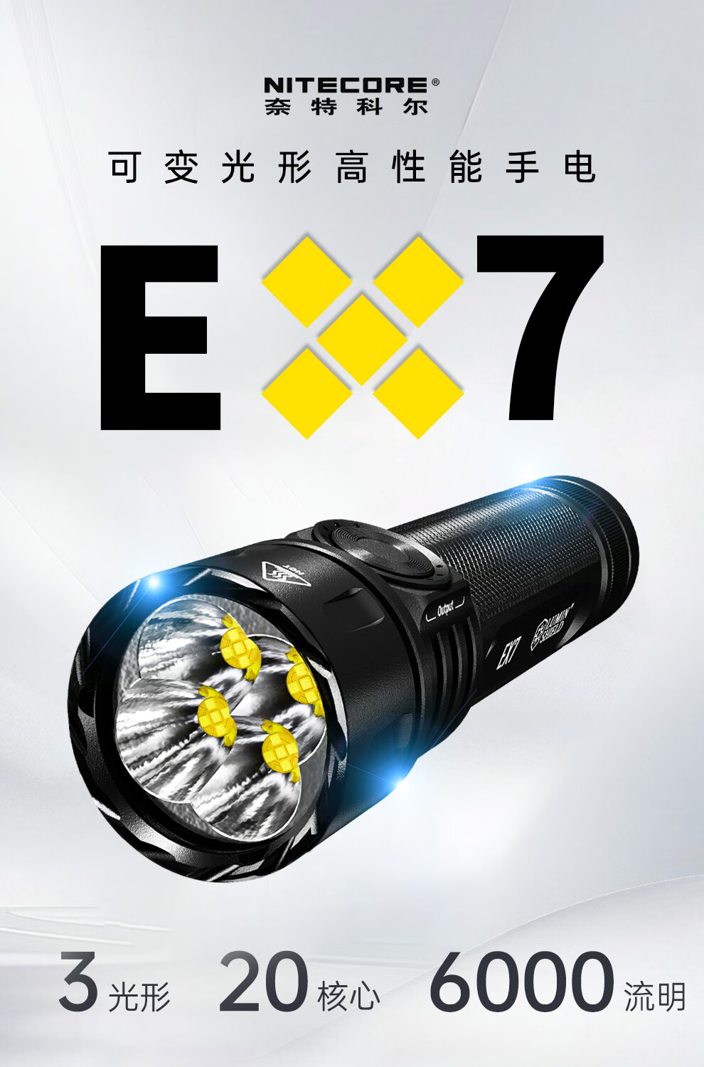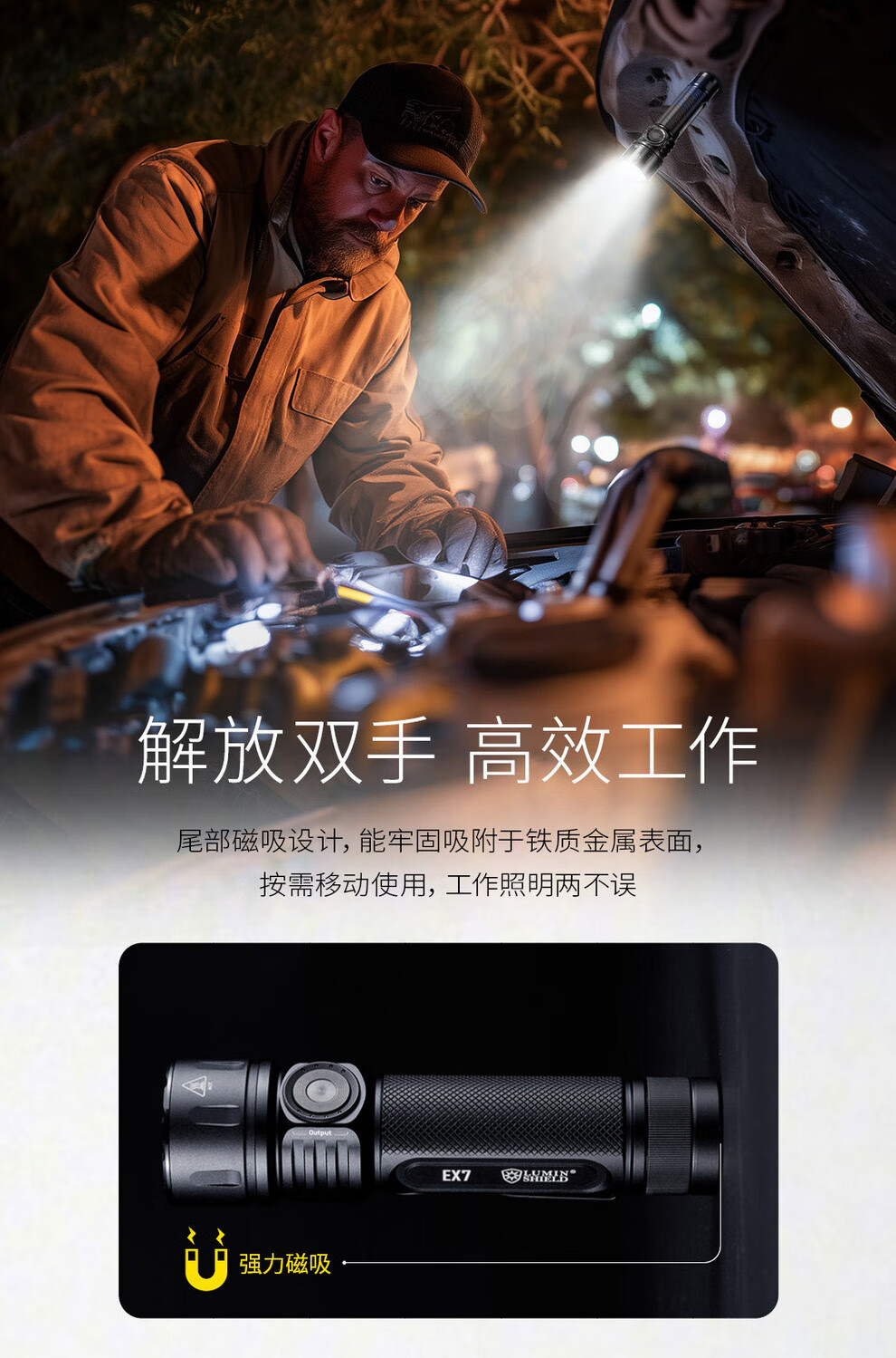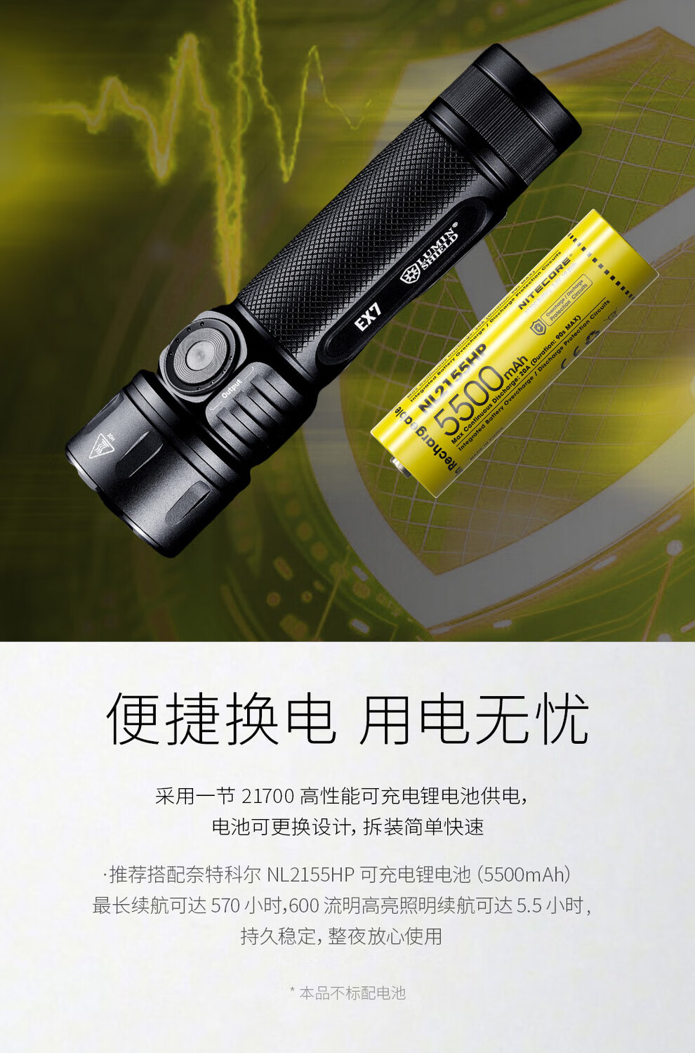 奈特科尔(NITECORE)EX7强光手电筒家用户外照明尾部磁吸工作维修灯超长续航应急灯 EX7标配 + NL2160HP充电电池