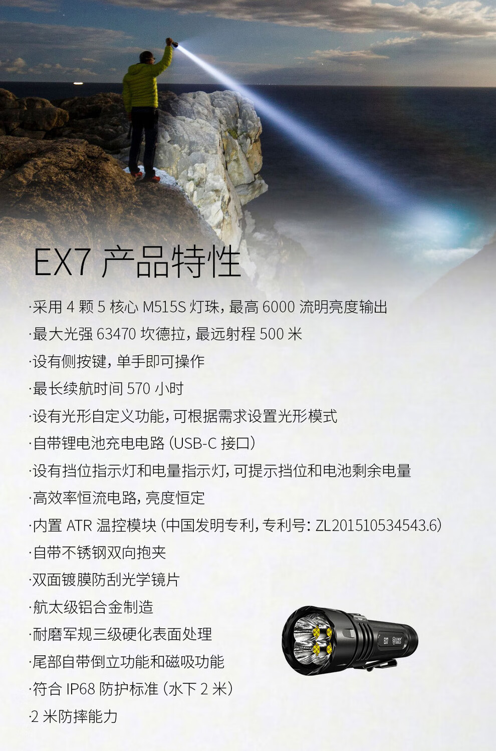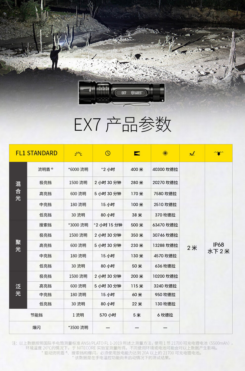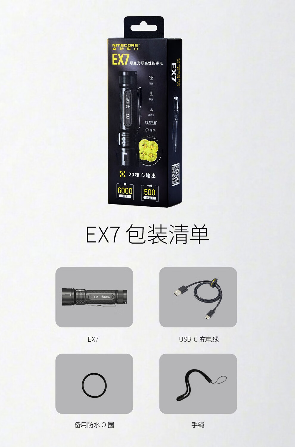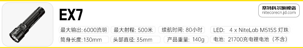 奈特科尔(NITECORE)EX7强光手电筒家用户外照明尾部磁吸工作维修灯超长续航应急灯 EX7标配 + NL2160HP充电电池