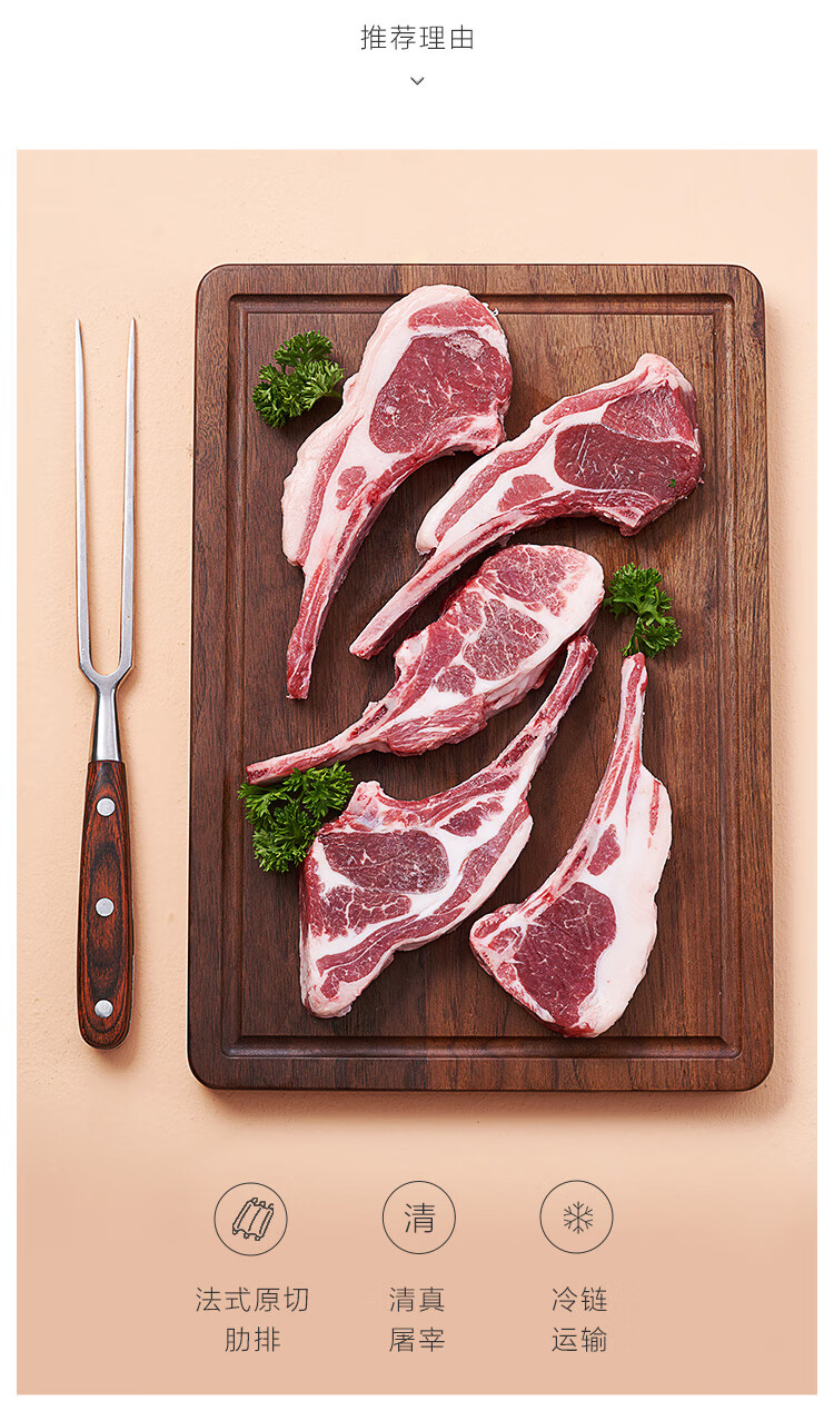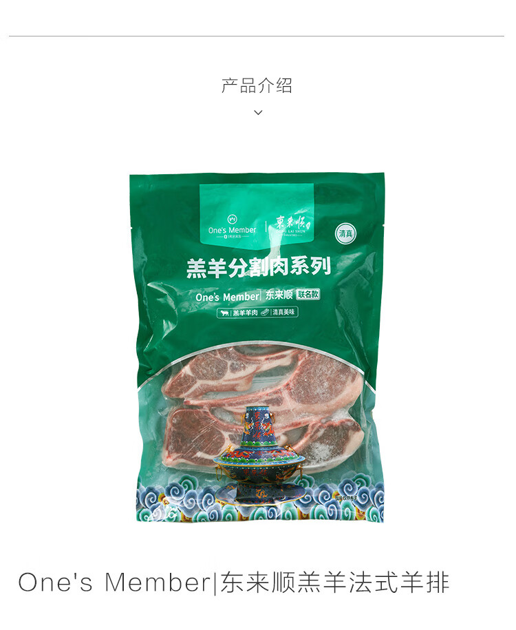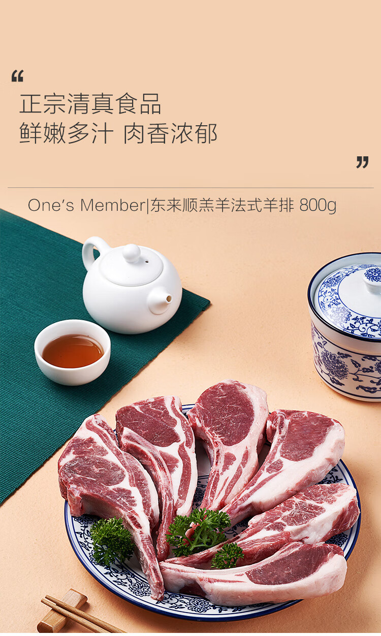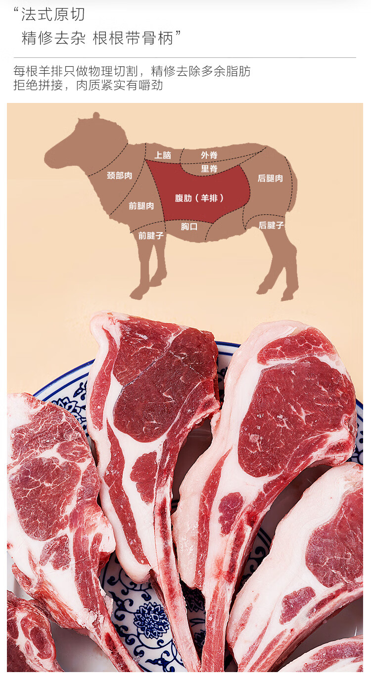 东来顺X1号会员店内蒙羔羊原切法式羊排 净重1.6斤8-9根羊肉烧烤食材