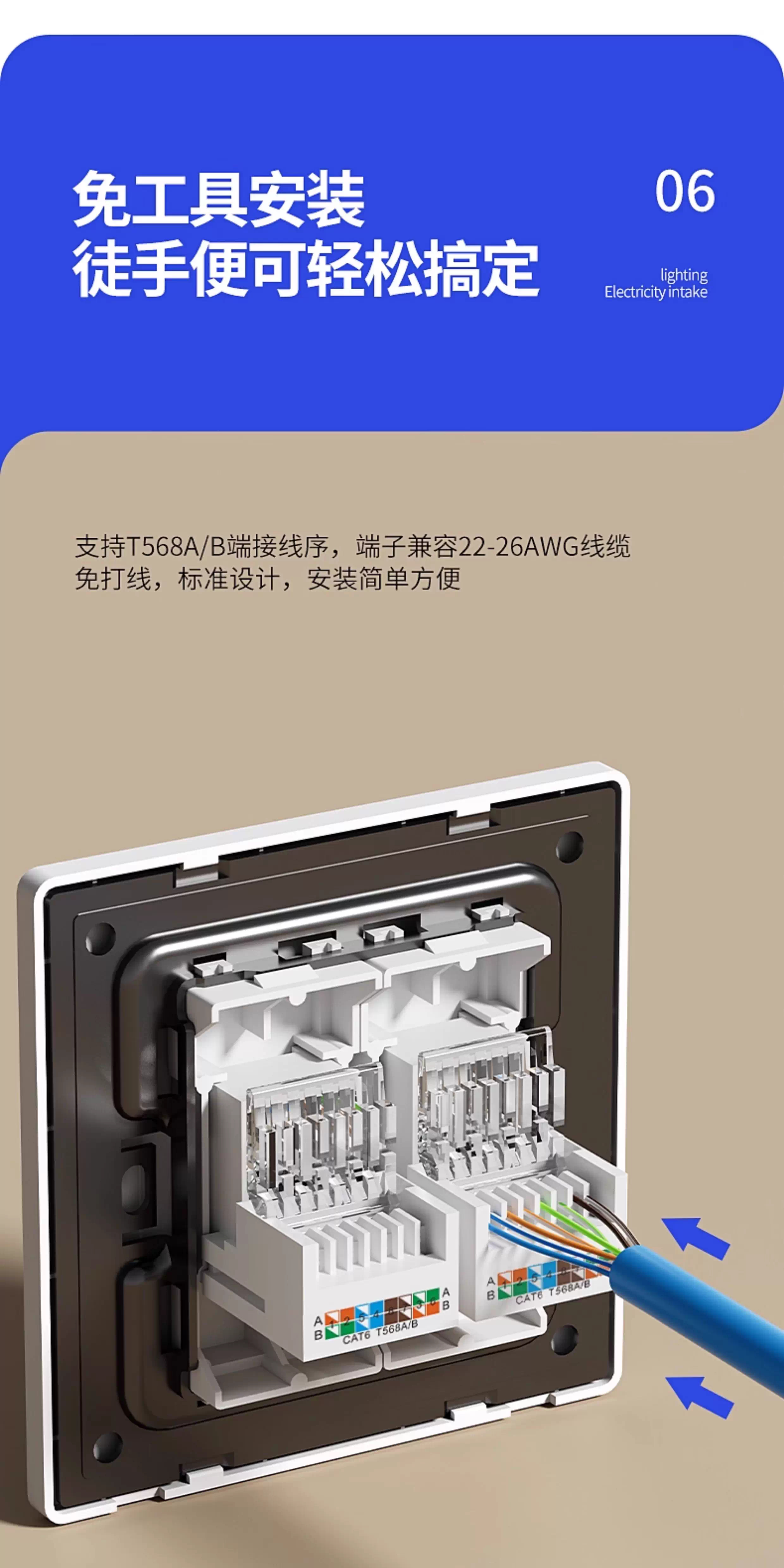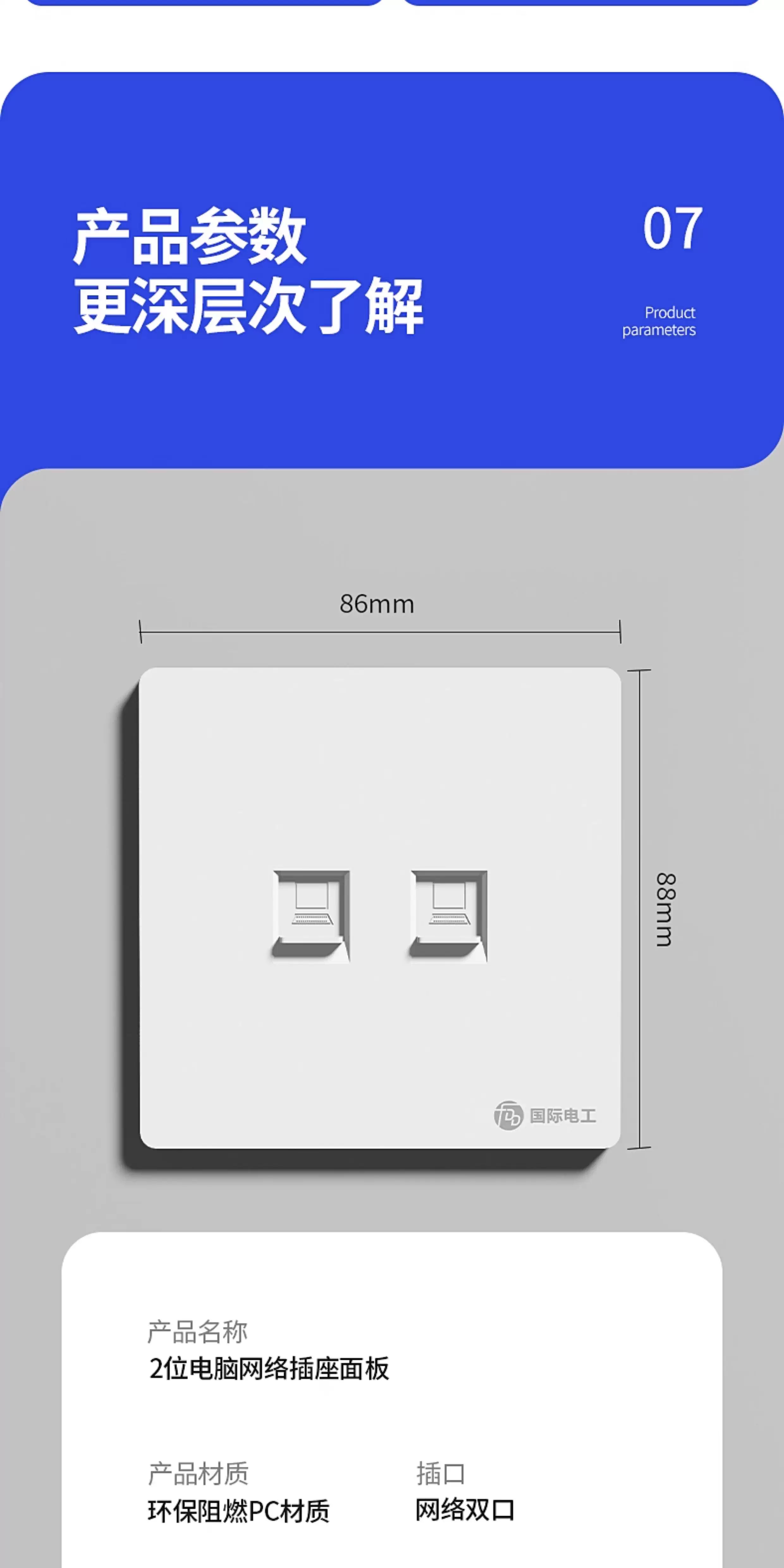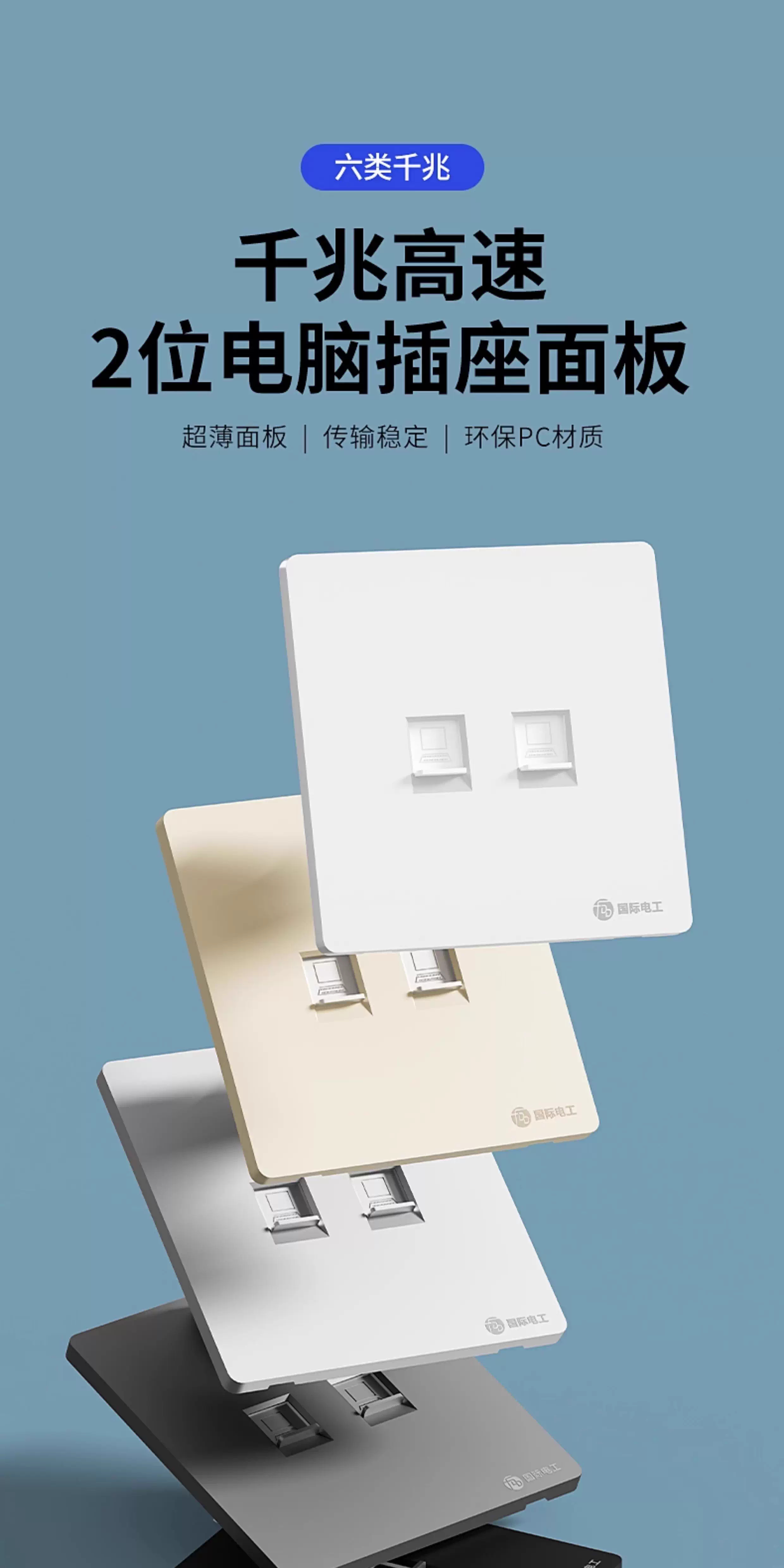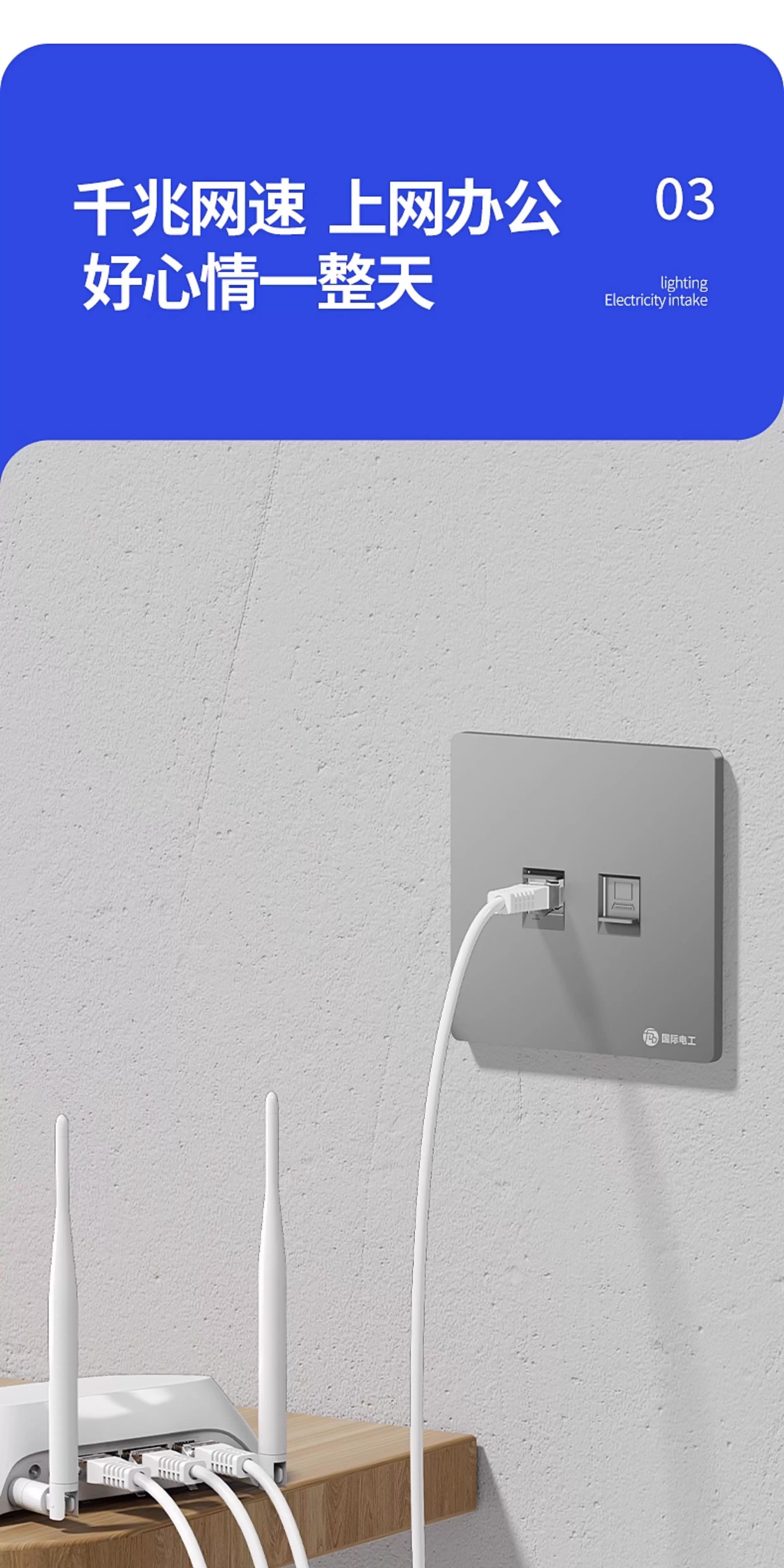 国际电工86型暗装超六类七类网络插座一体面板电脑千兆万兆双网口宽带光纤 七类防屏蔽【单网】白色