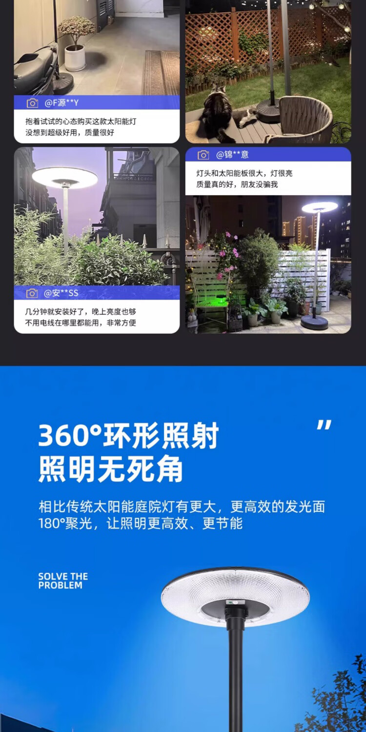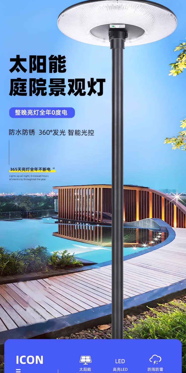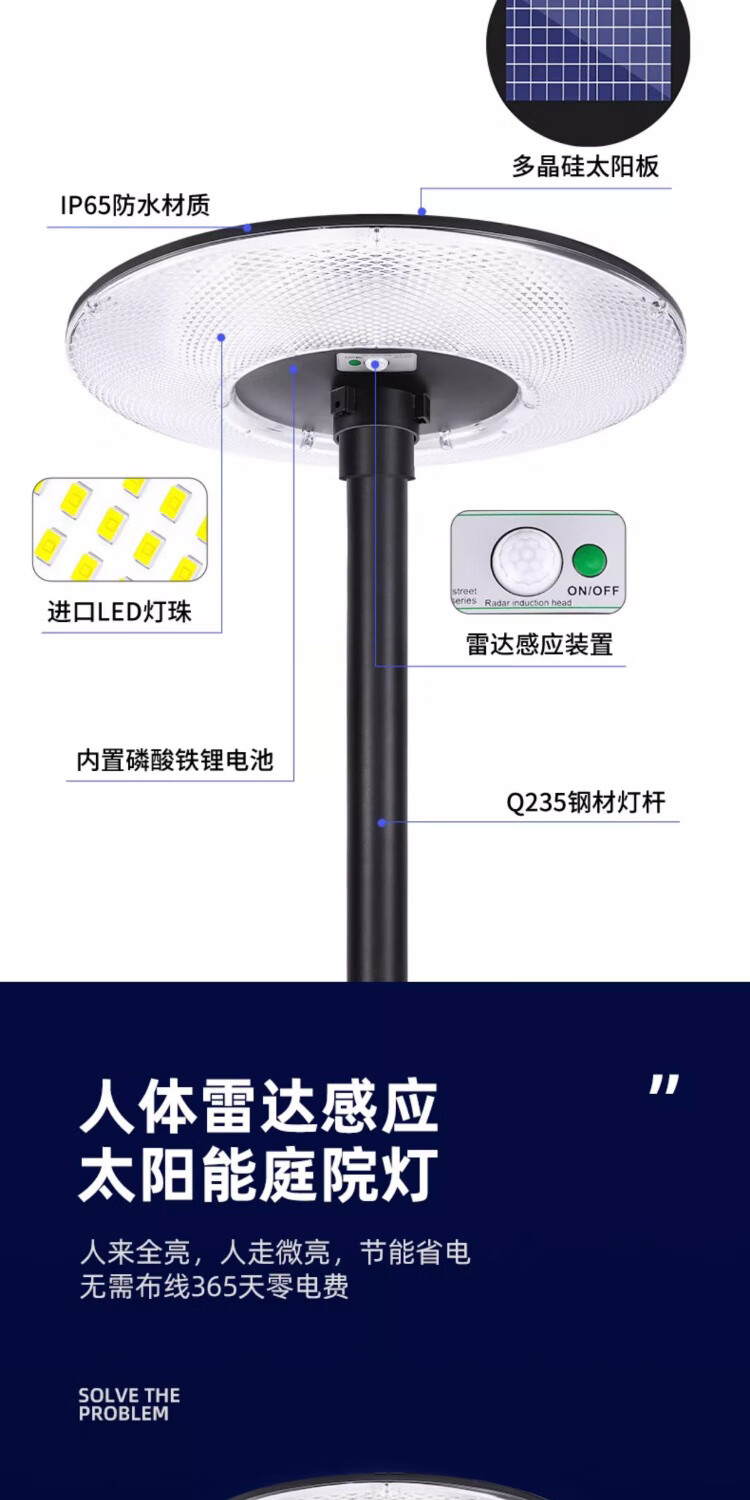 振牛太阳能户外灯庭院灯景观灯家用别墅花园露台移动飞碟感应照明路灯 【弯壁款】4200W型三色太阳能庭院灯 360°发光+进口超亮纳米大灯珠+人体感应