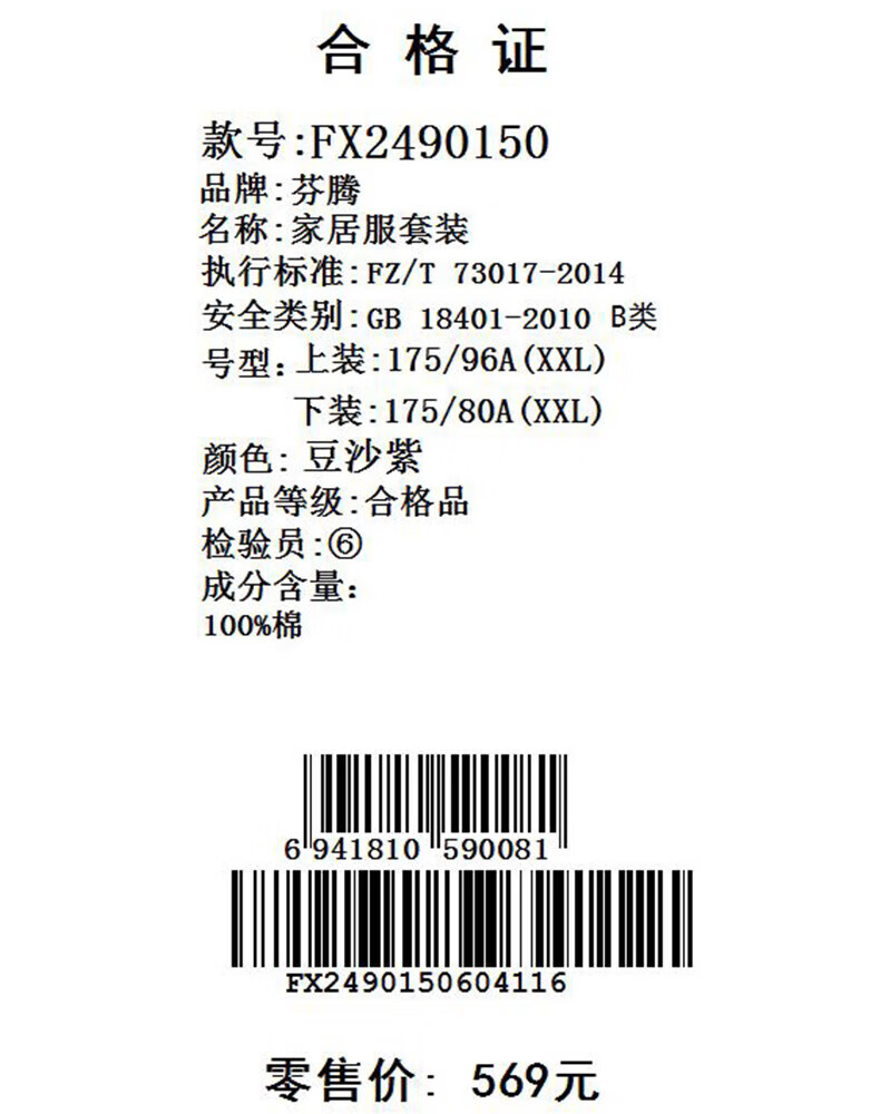全棉时代男士睡衣【针织软弹不拘束】情侣家居服套装