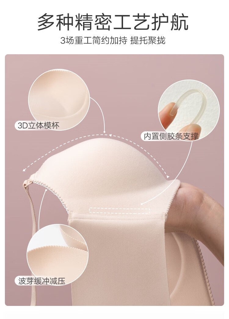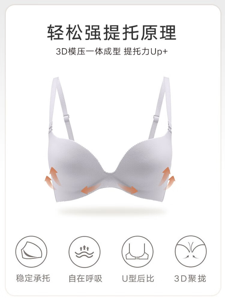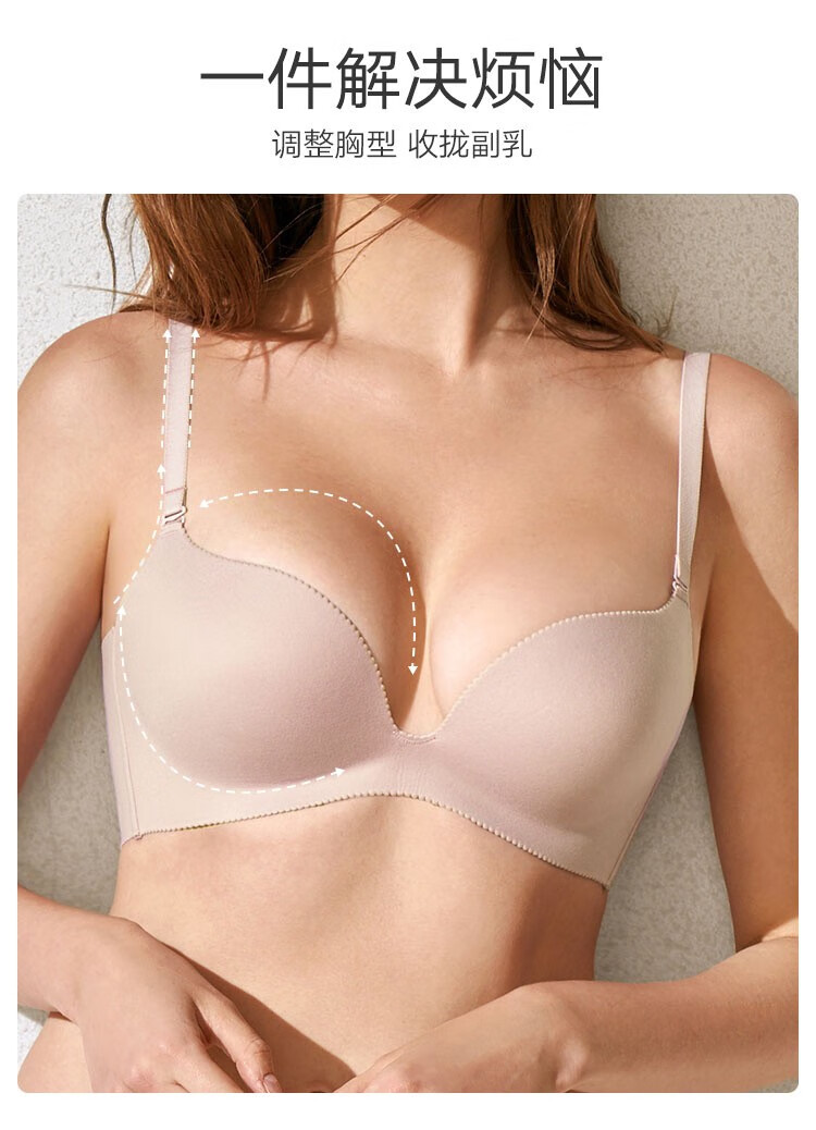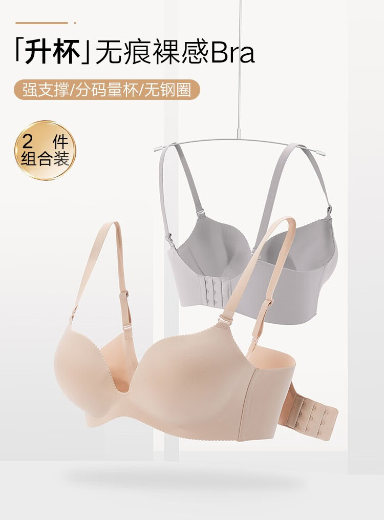 曼妮芬【2件装】舒适无钢圈文胸女士掌心杯聚拢小胸Y 2件装 灰+肤 75A (上薄下厚聚拢杯)