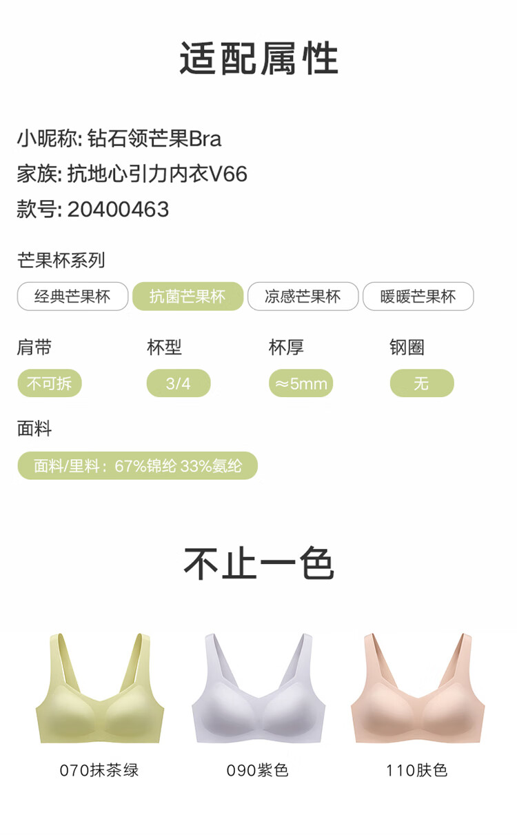 曼妮芬曼妮芬芒果杯女士文胸抗菌无钢圈背心无痕舒适内衣