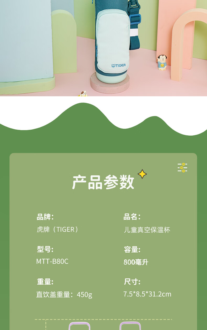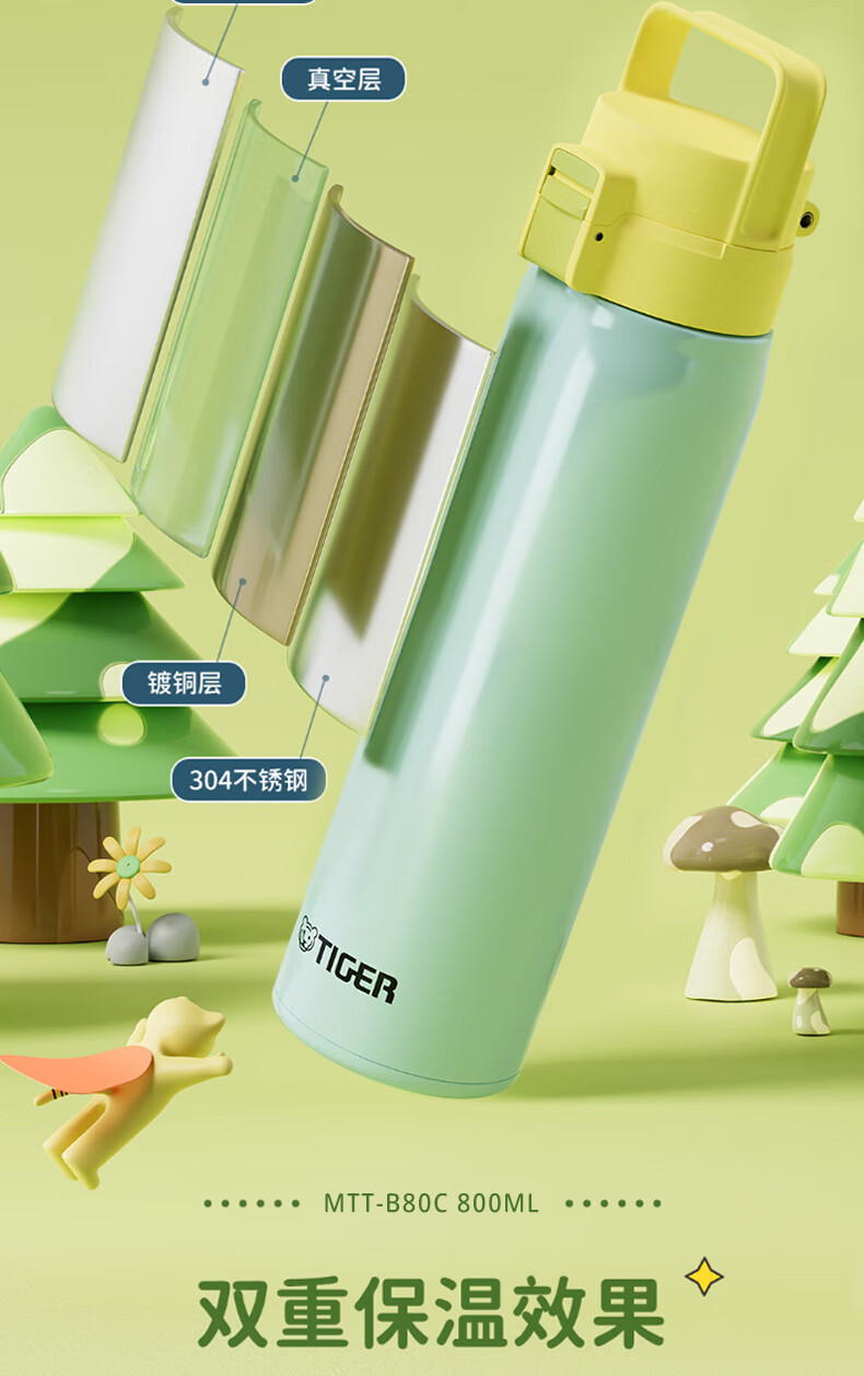 虎牌(TIGER)保温保冷杯学生儿童户外便携直饮盖水杯MTT-B80C-GM薄荷绿800ml