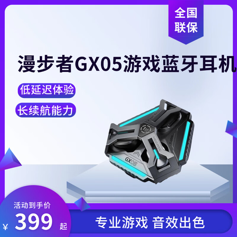 漫步者GX05游戏蓝牙耳机低延迟长续航 灰色全新