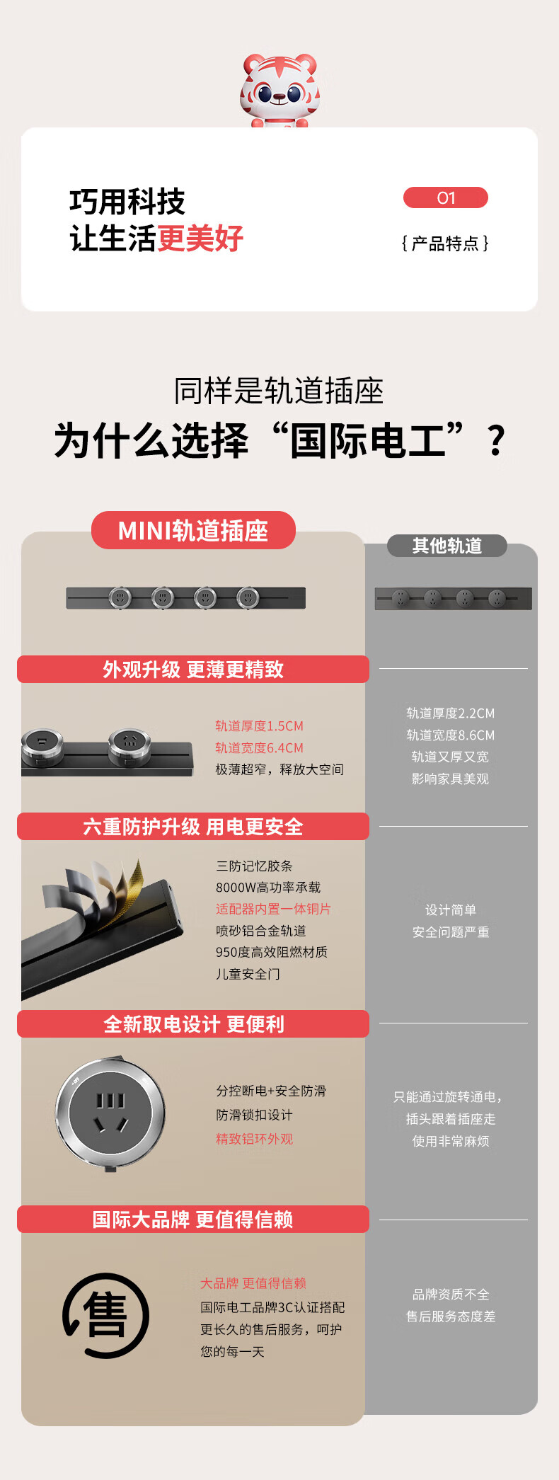 国际电工智能语音轨道插座家用厨房餐边柜移动带灯数显屏滑动插排功率监测 大五孔蓝灯适配器