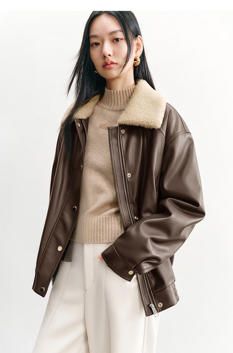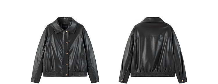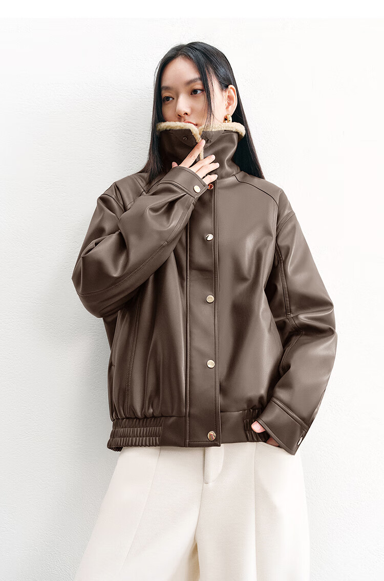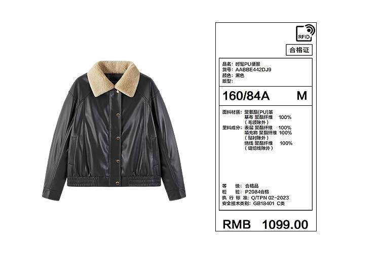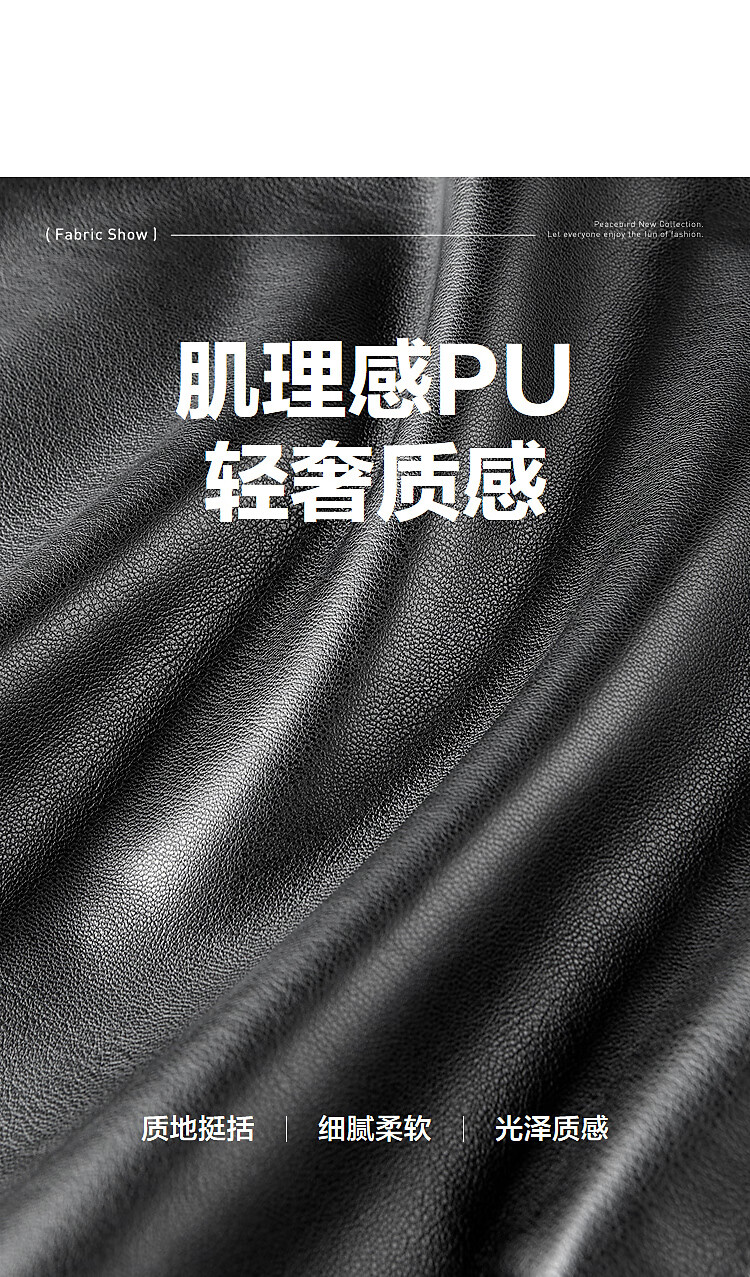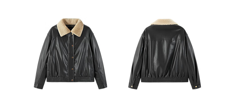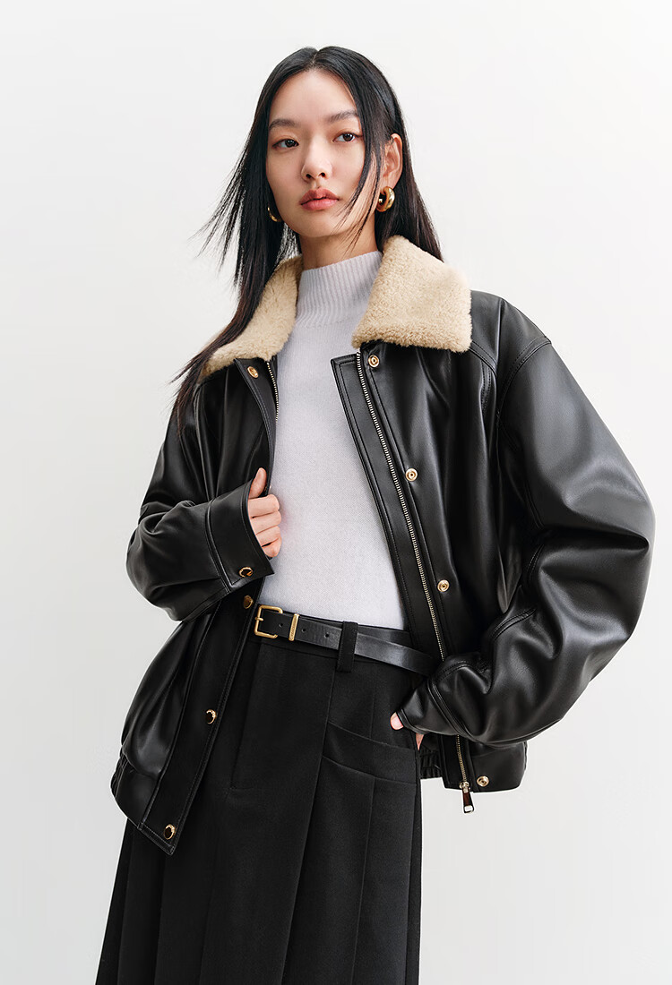 太平鸟女装短外套时髦PU皮机车风女冬装时尚衣服夹棉夹克 黑色 S