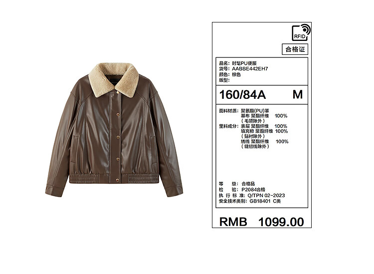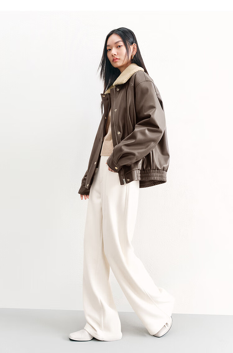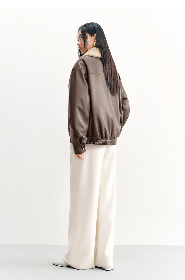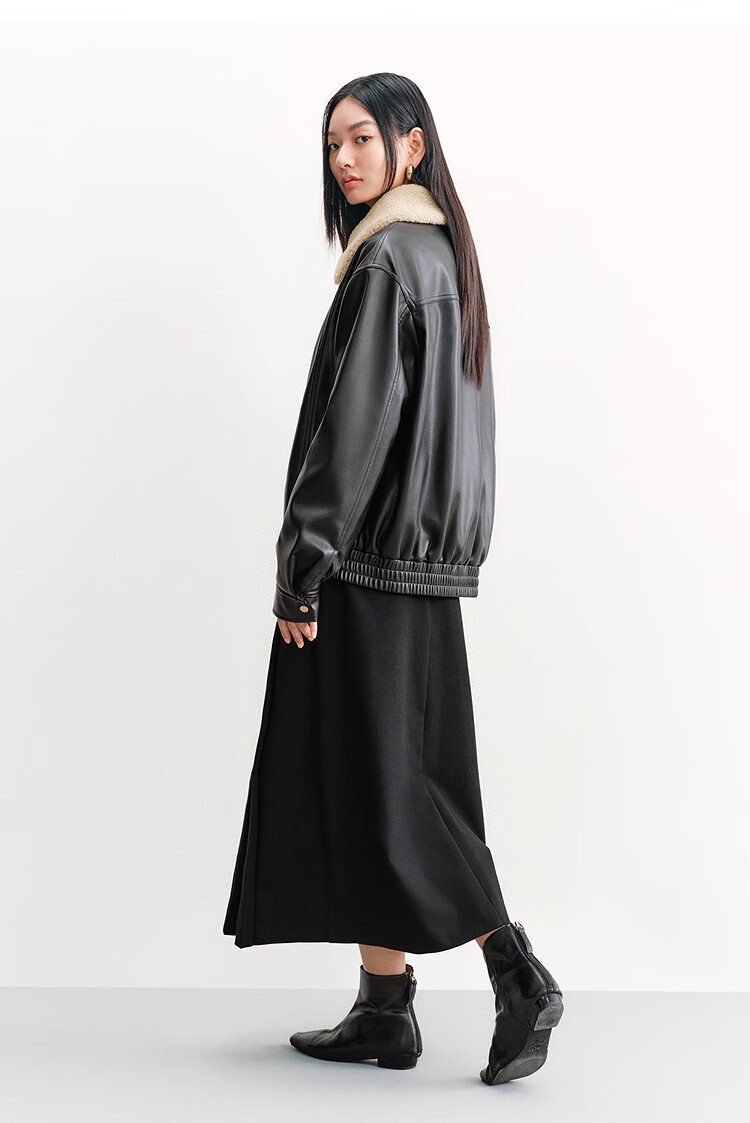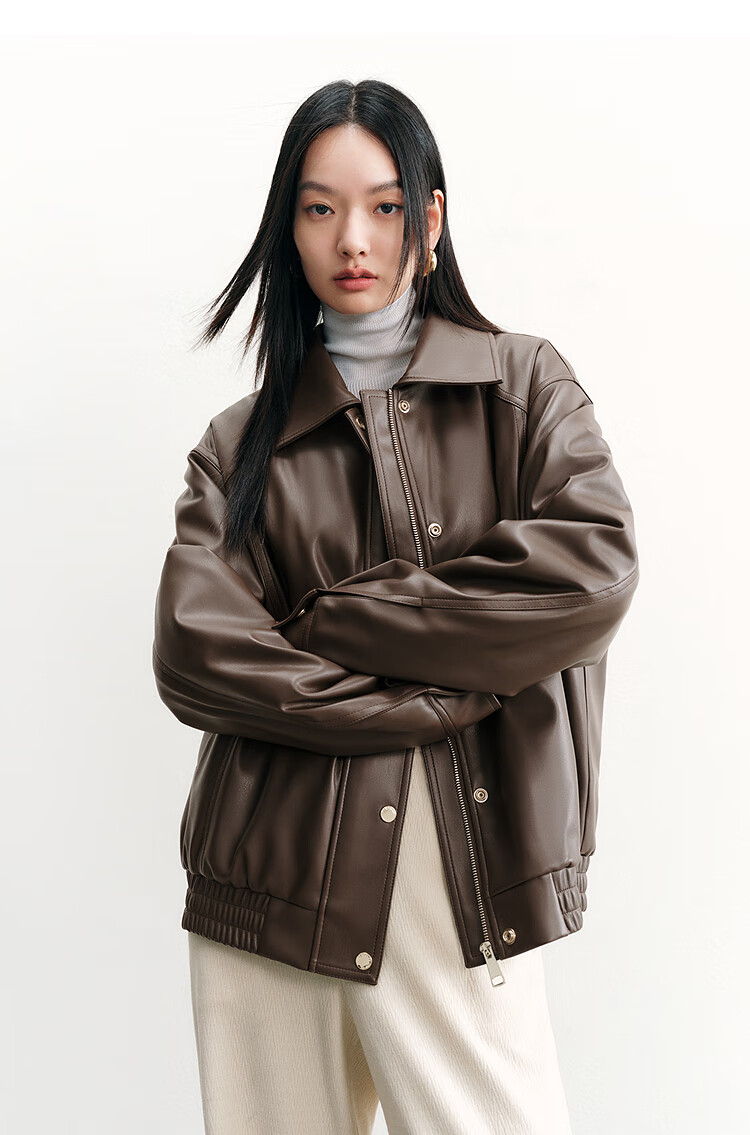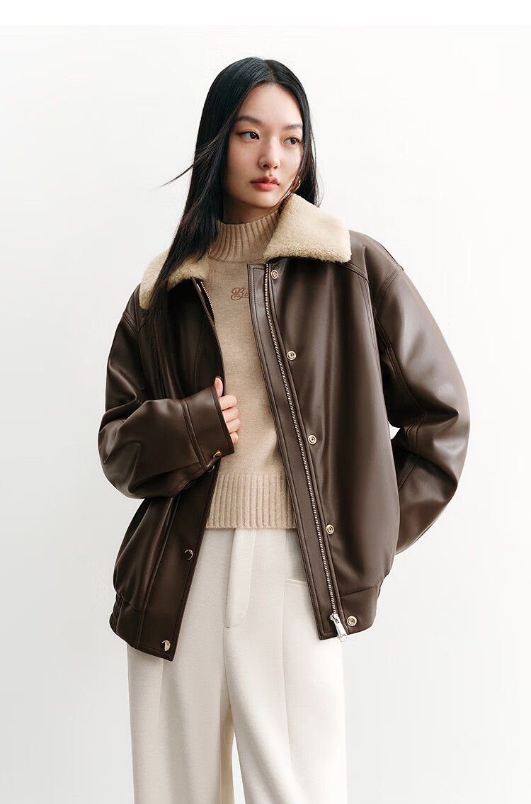 太平鸟女装短外套时髦PU皮机车风女冬装时尚衣服夹棉夹克 黑色 S
