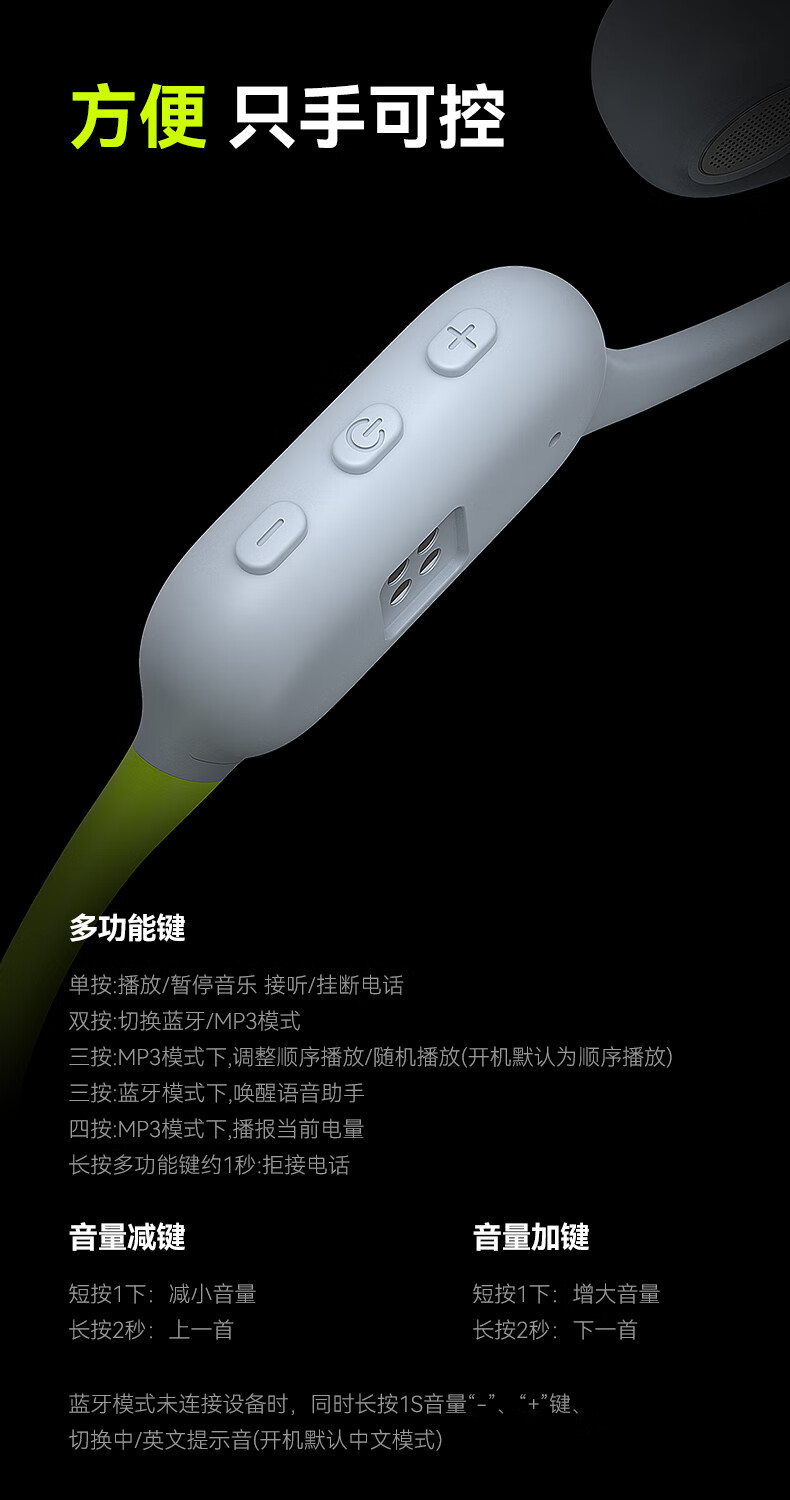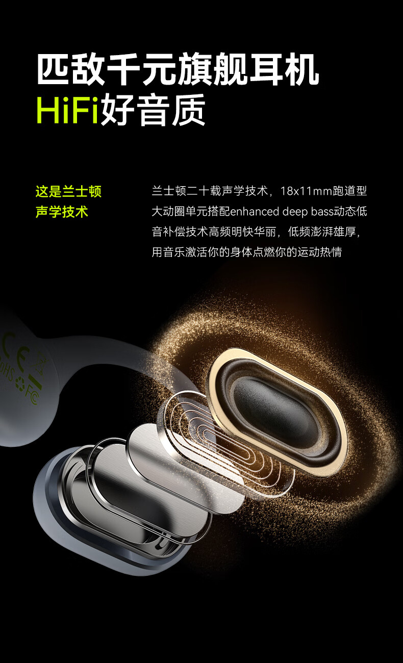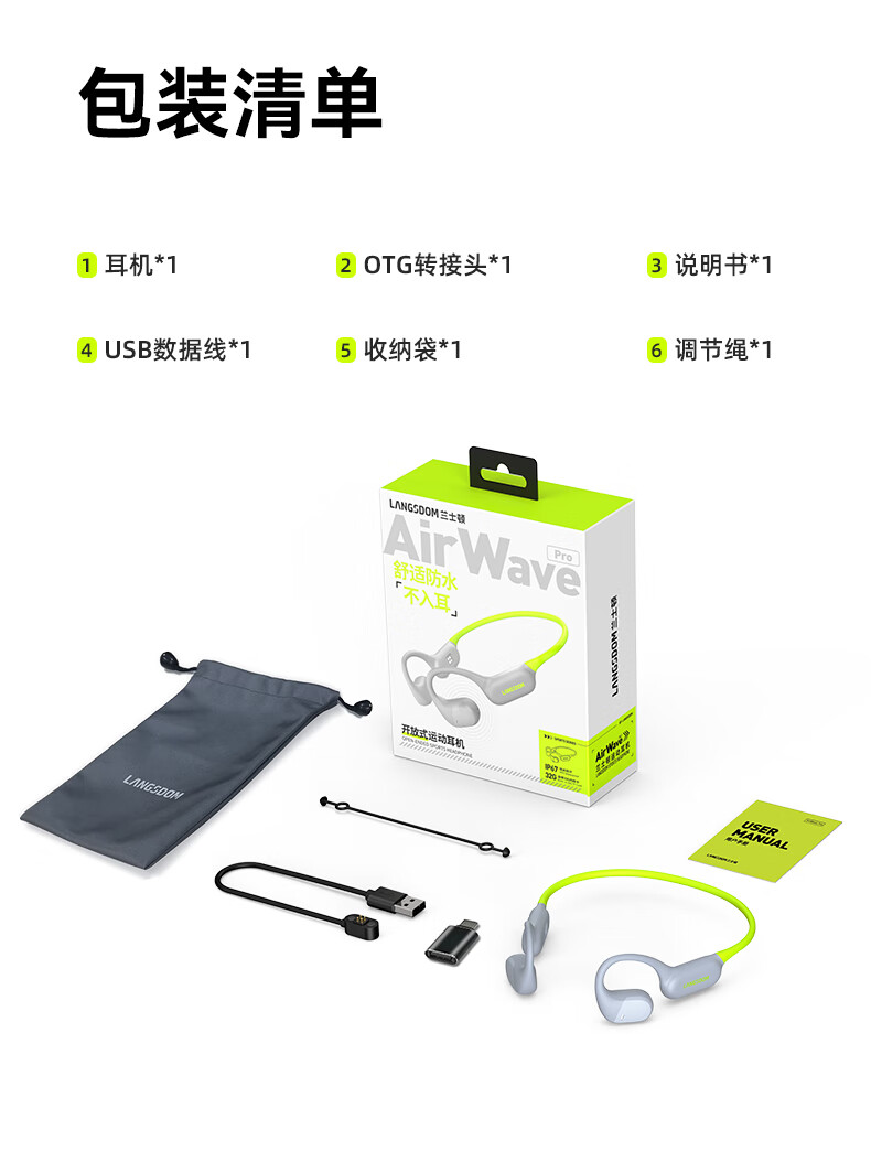 兰士顿AirWave Pro开放式蓝牙耳机无线骨传导概念 运动跑步无线不入耳骑行超长续航 竞速黑