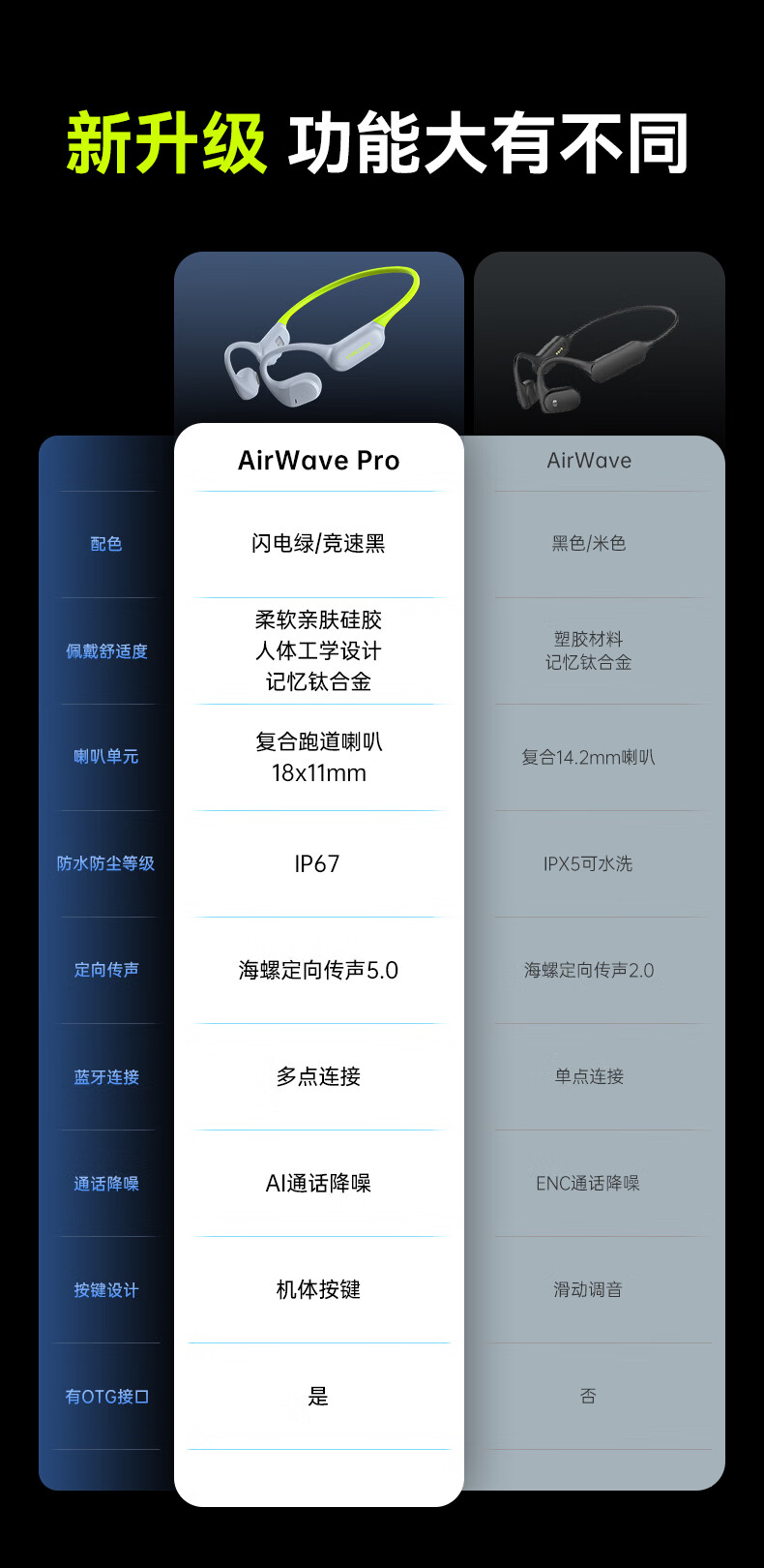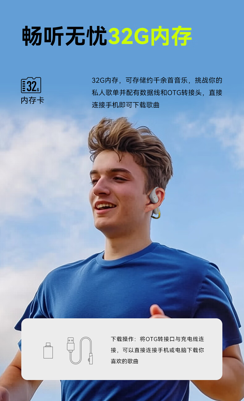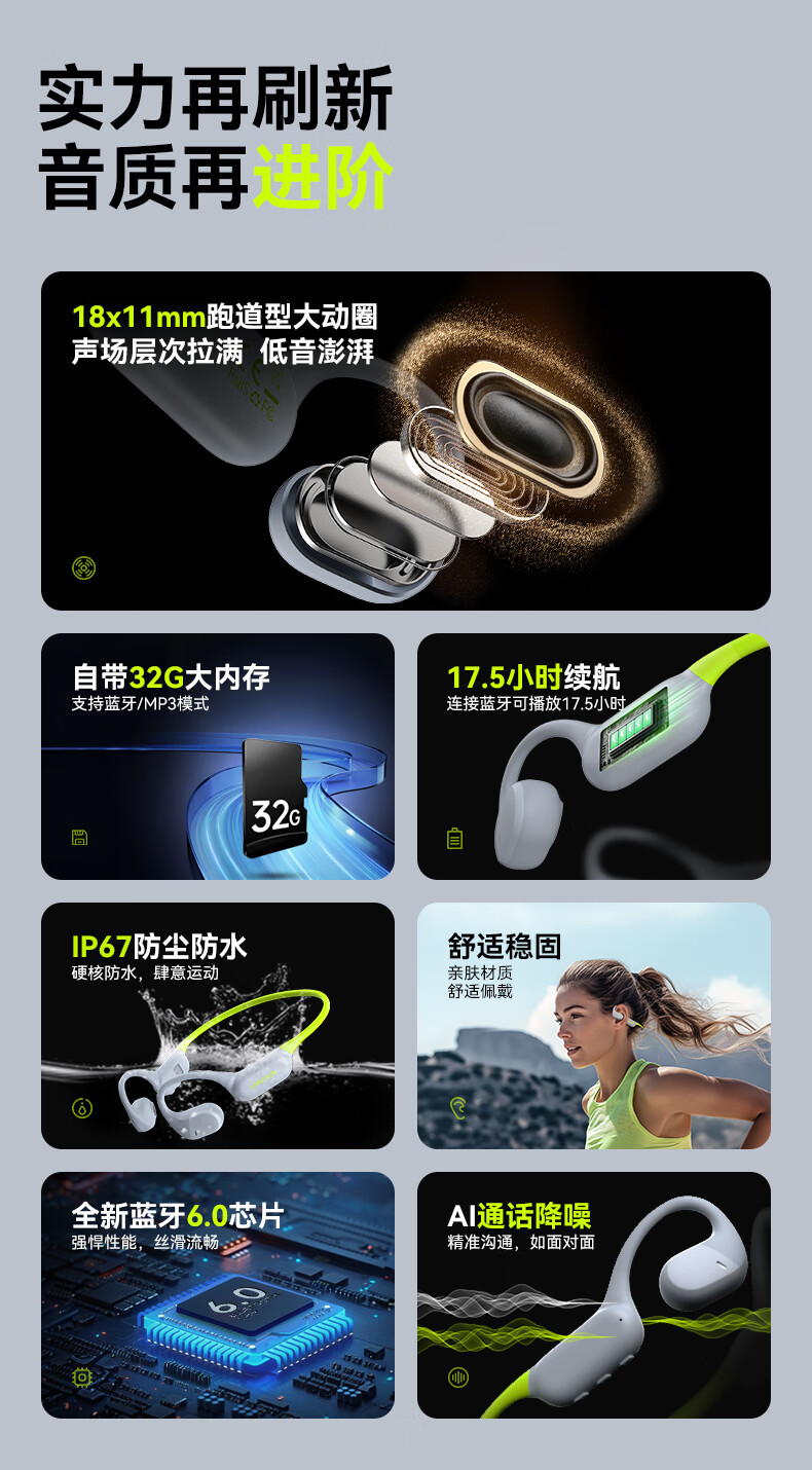 兰士顿AirWave Pro开放式蓝牙耳机无线骨传导概念 运动跑步无线不入耳骑行超长续航 竞速黑