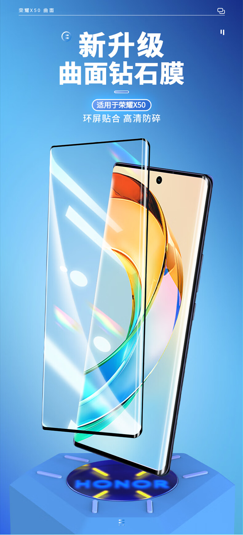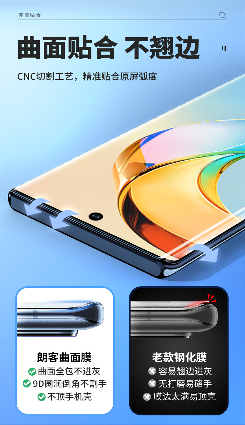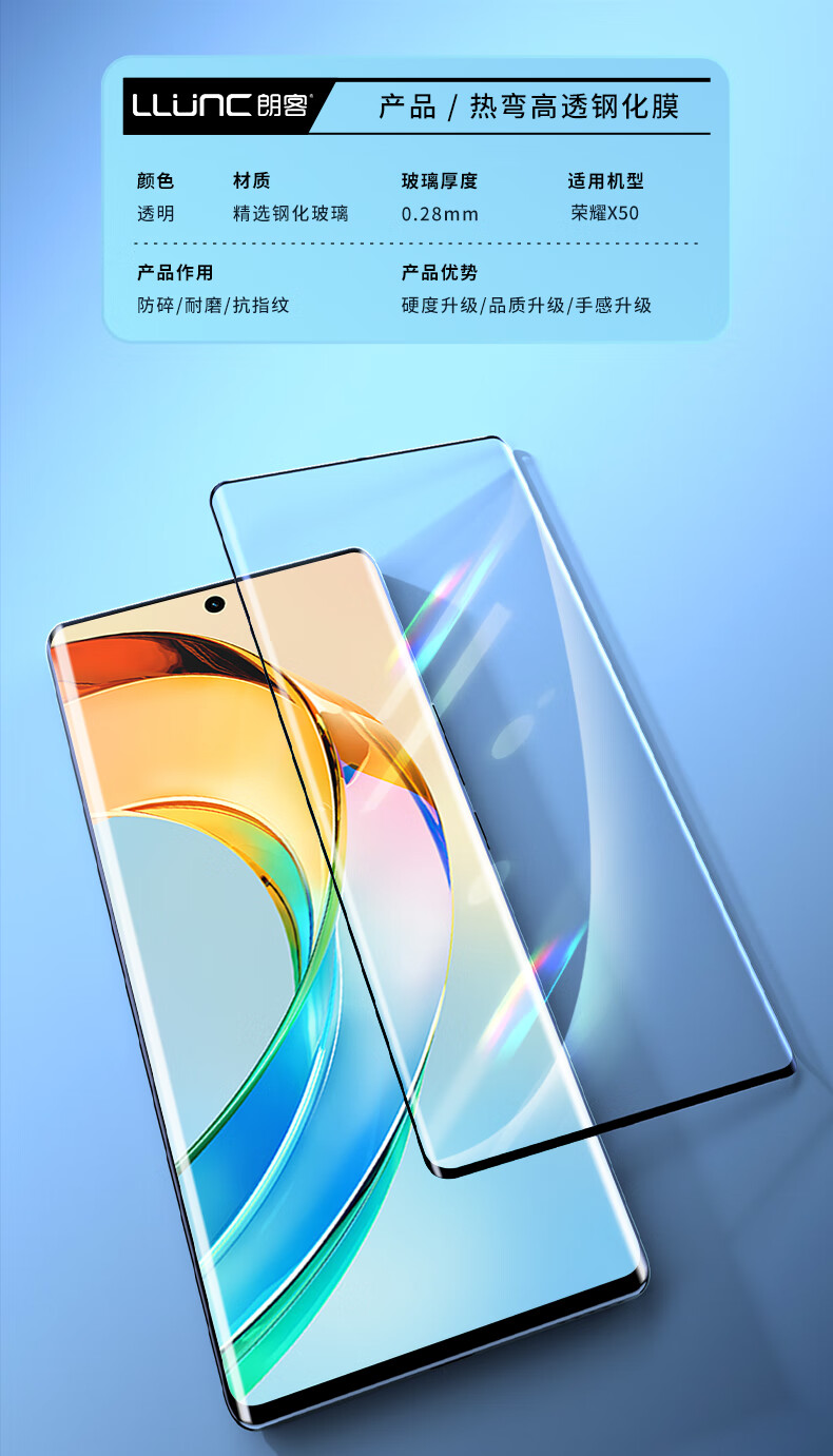 朗客【2片装】适用荣耀X50钢化膜X50Pro/50GT手机膜曲面高清防摔超薄耐磨玻璃膜抗指纹手机贴膜