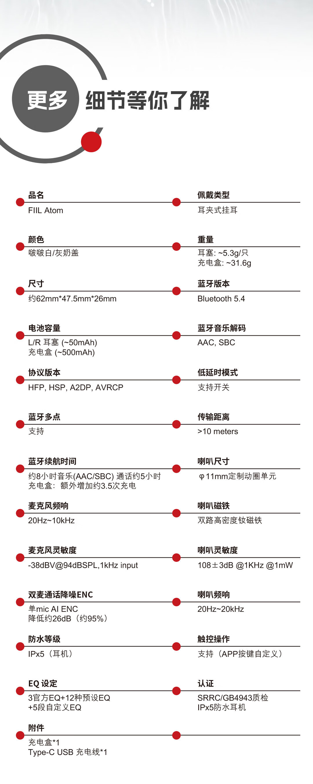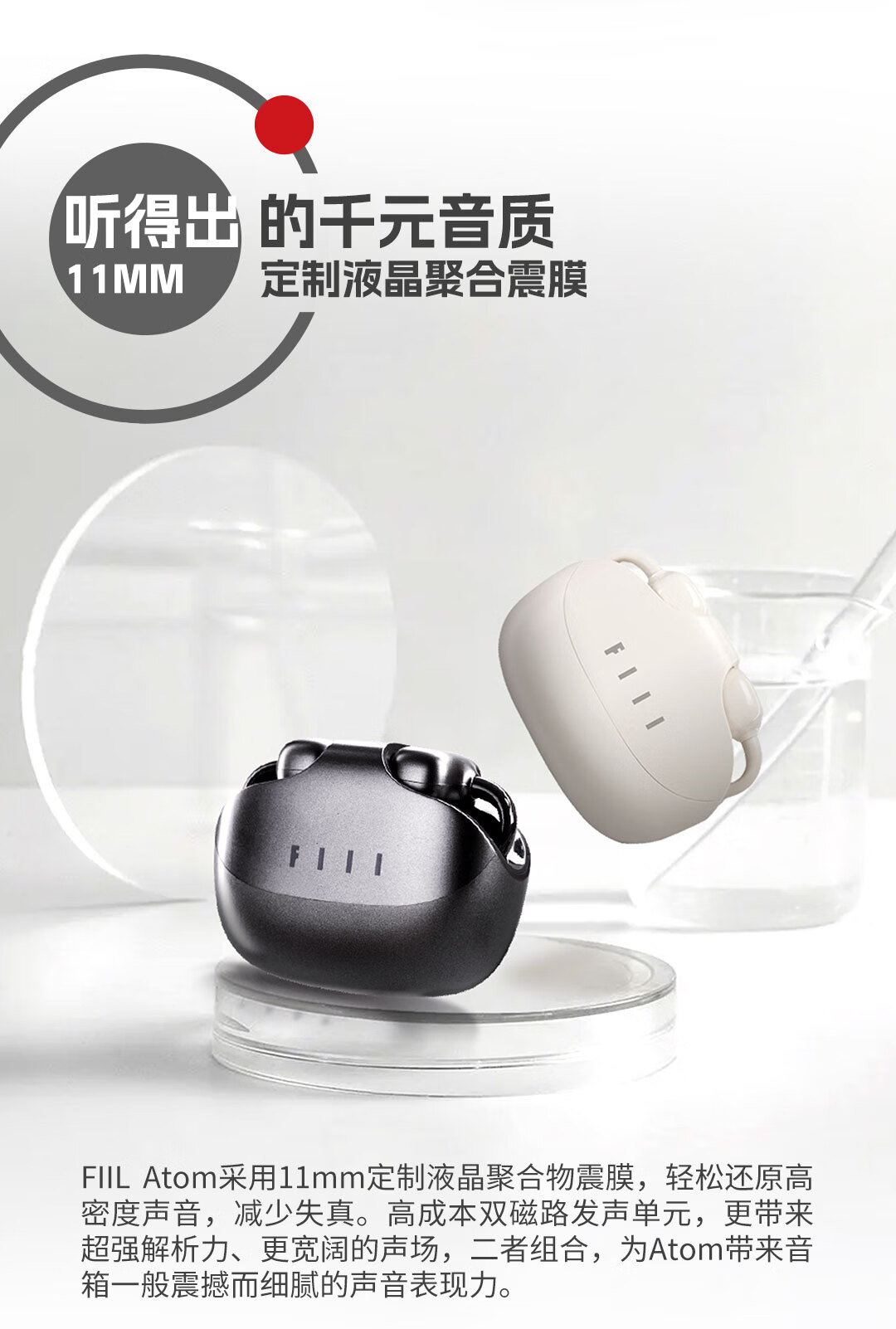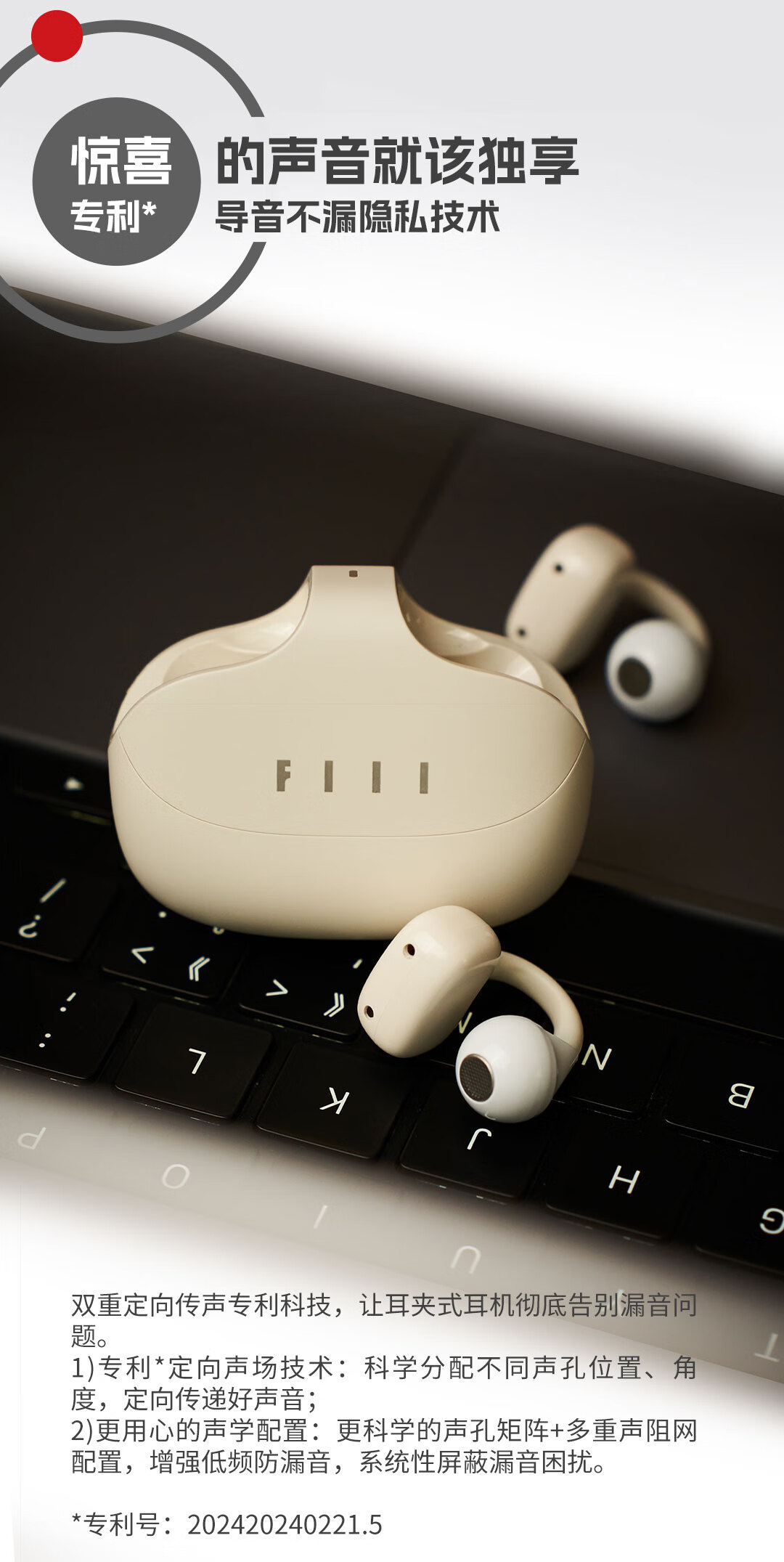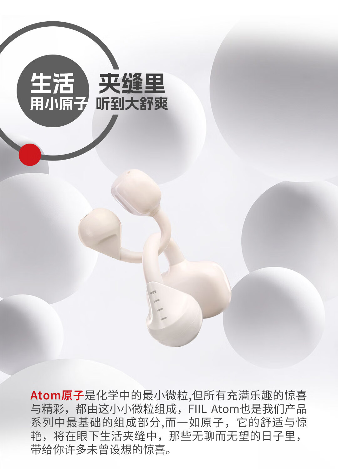 FIIL Atom耳夹式蓝牙耳机高音质蓝牙5.4气传导无线开放式跑步运动耳机挂耳适用于华为小米苹果手机 白
