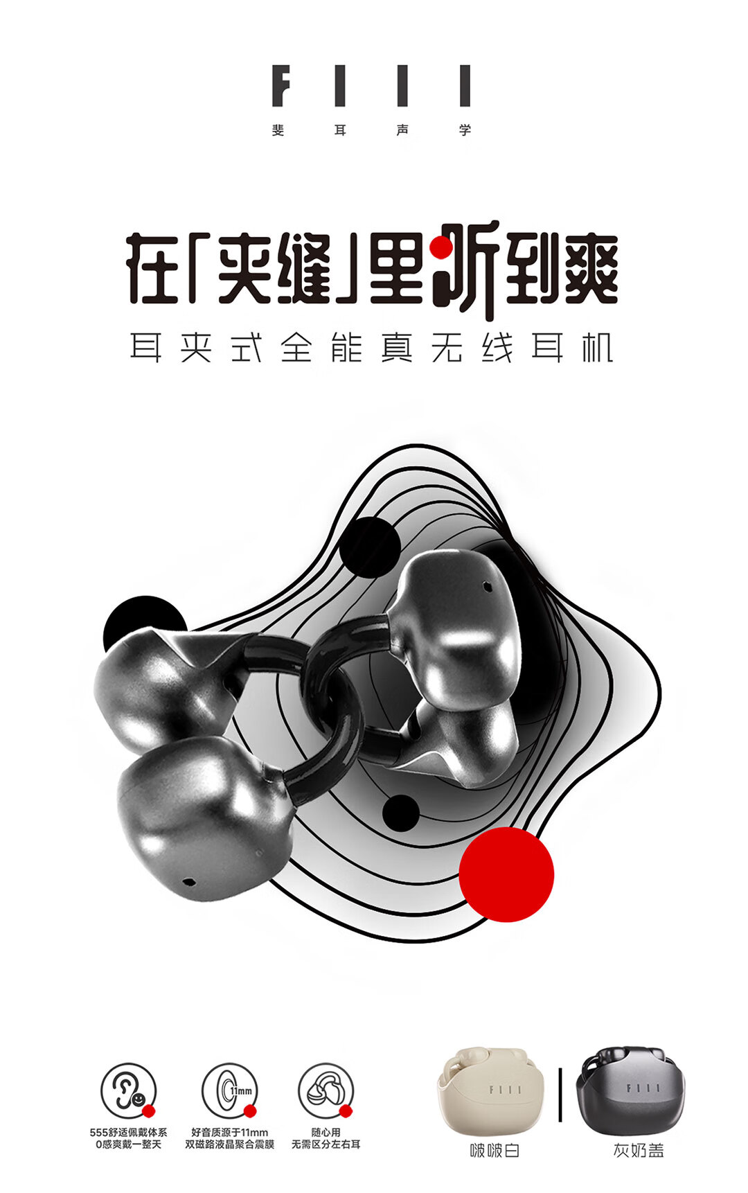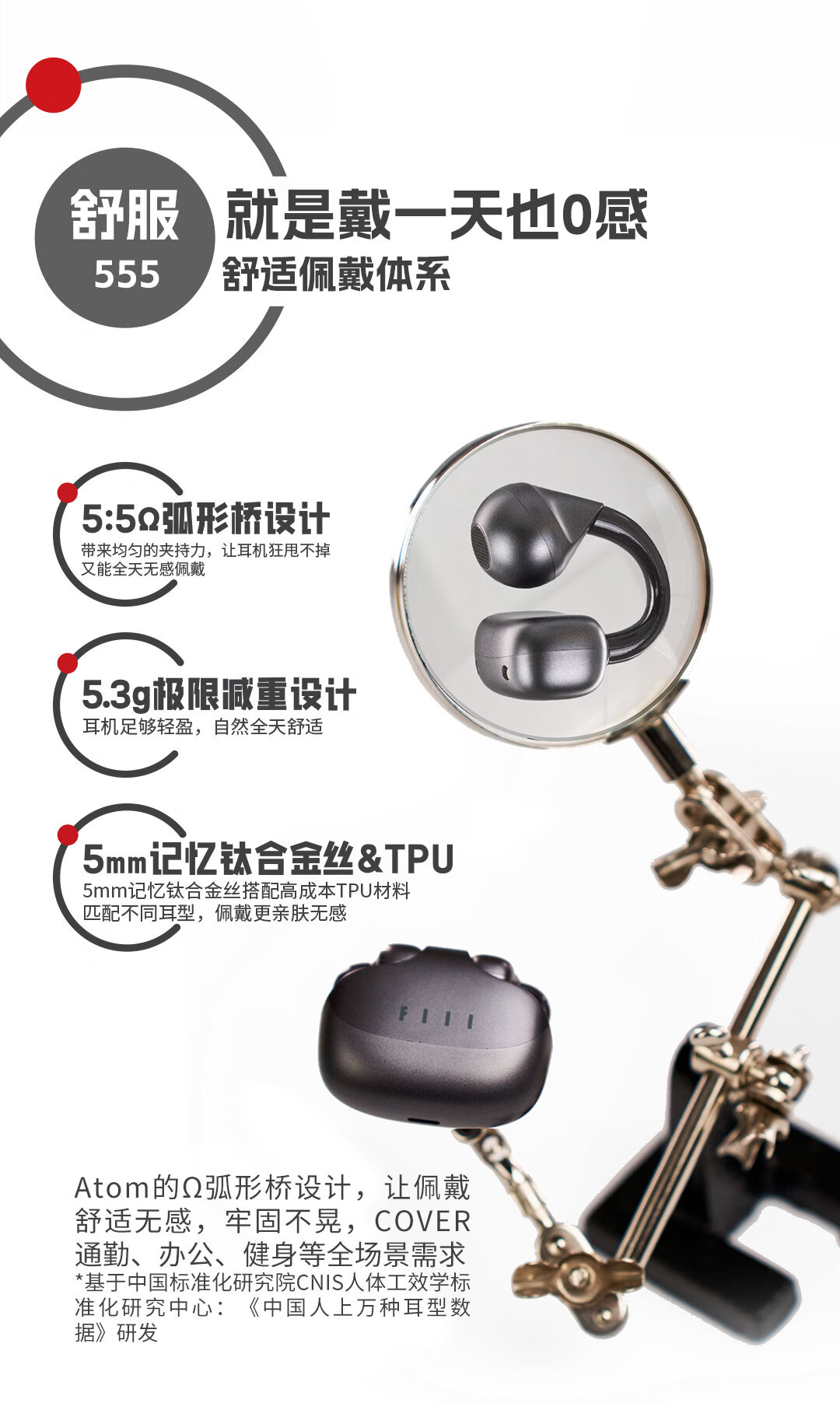 FIIL Atom耳夹式蓝牙耳机高音质蓝牙5.4气传导无线开放式跑步运动耳机挂耳适用于华为小米苹果手机 灰