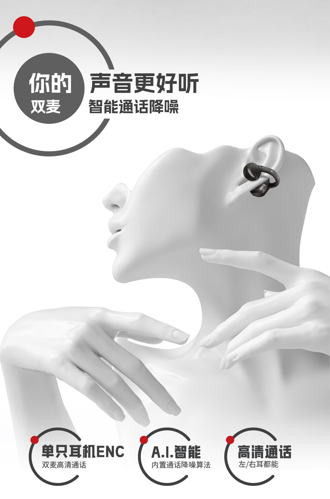 击音【颜值+AI智能】6.0蓝牙耳机耳夹式无线音乐跑步运动续航降噪不入耳开放骨传导概念适用酷狗华为Q3