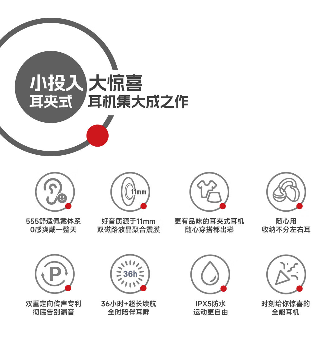 Linklike【无损音质丨爆卖100W】蓝牙耳机耳夹式不伤耳朵无线运动耳机骨传导概念女士专用适配苹果华为小米