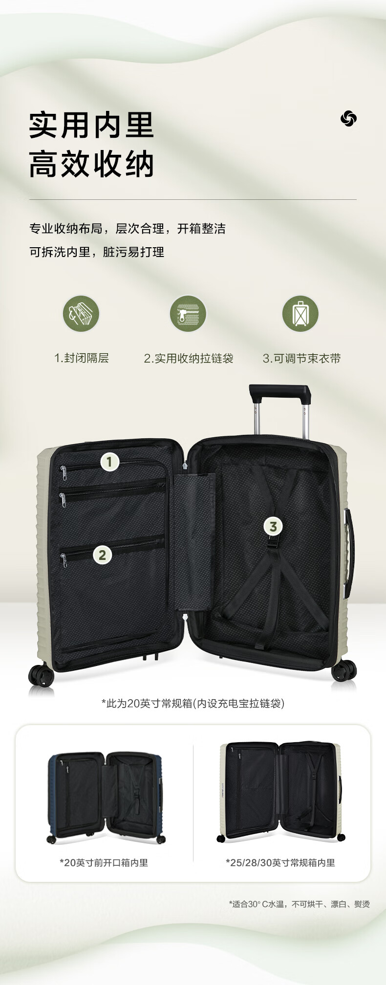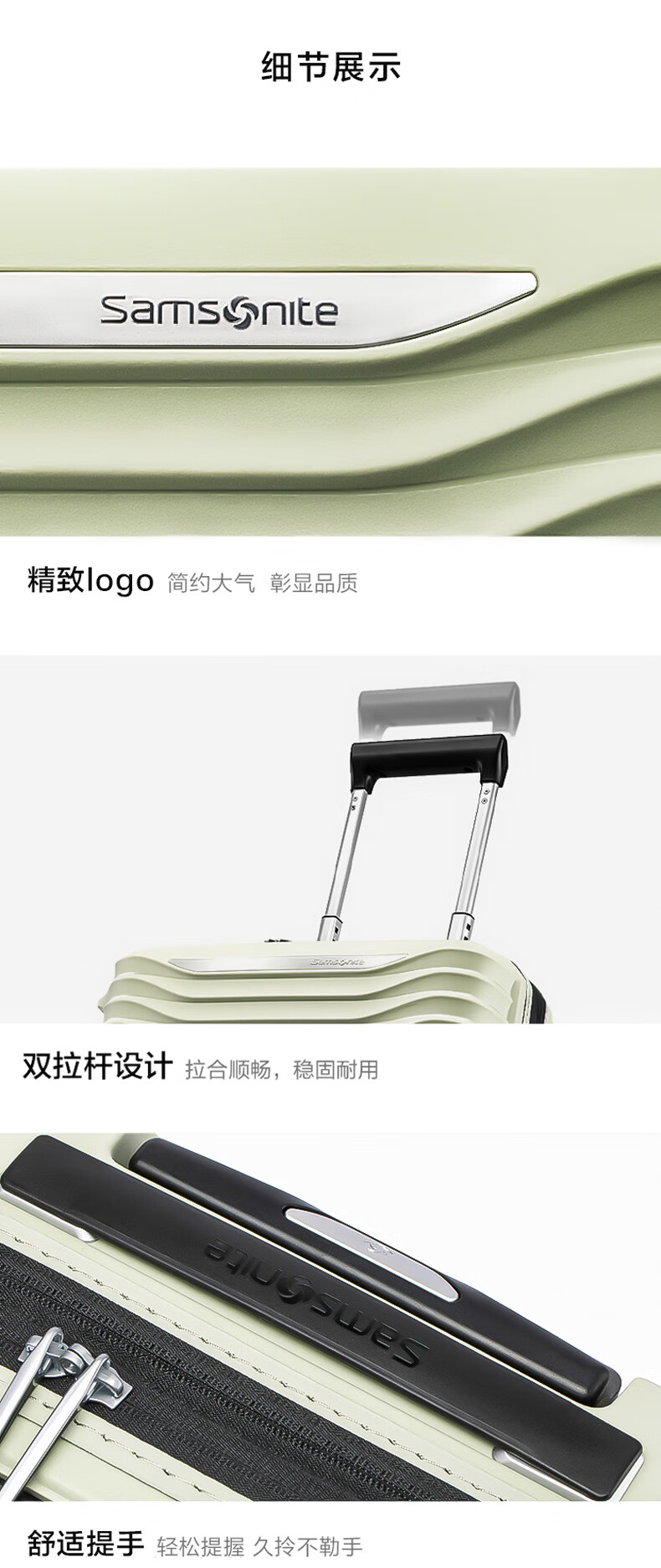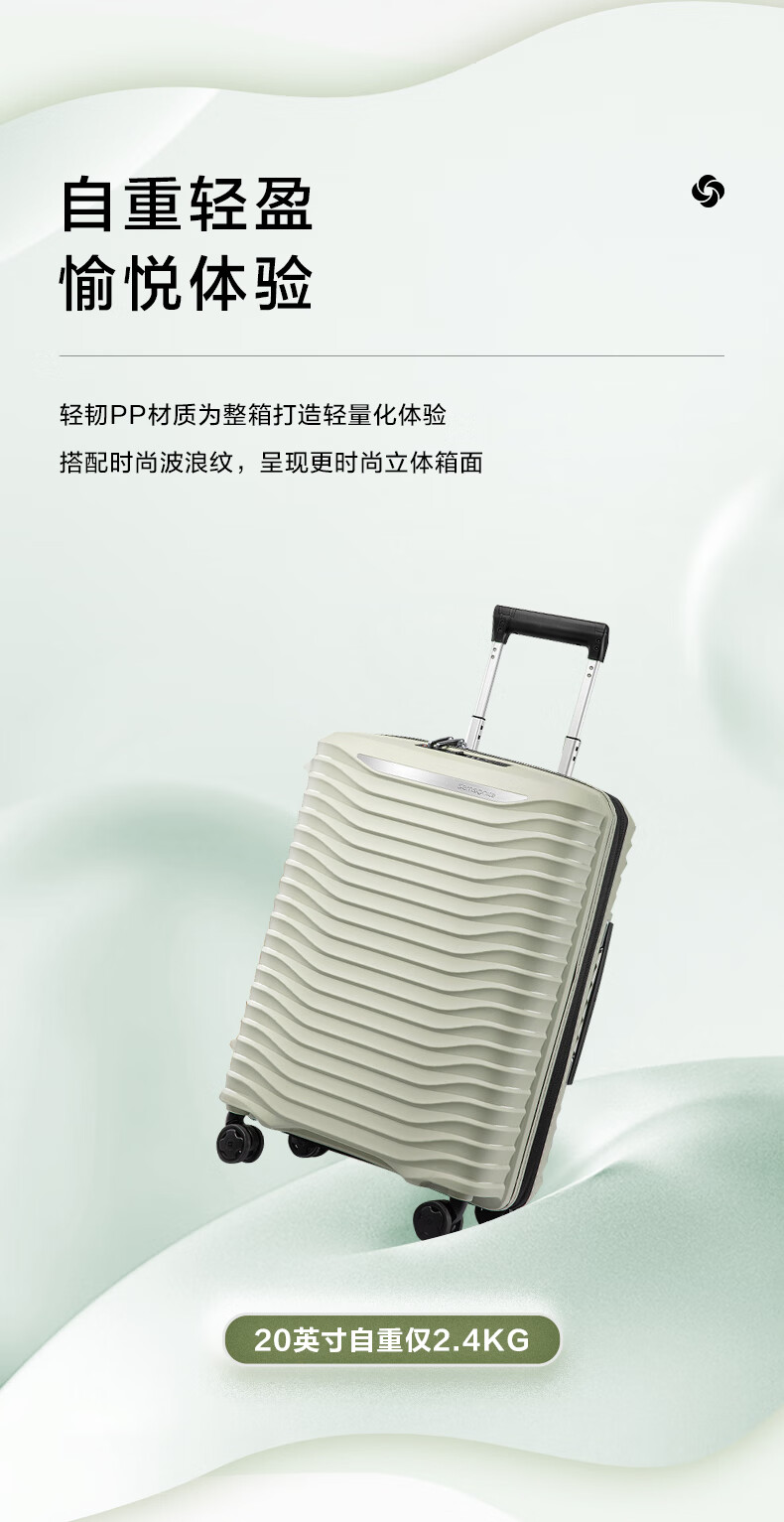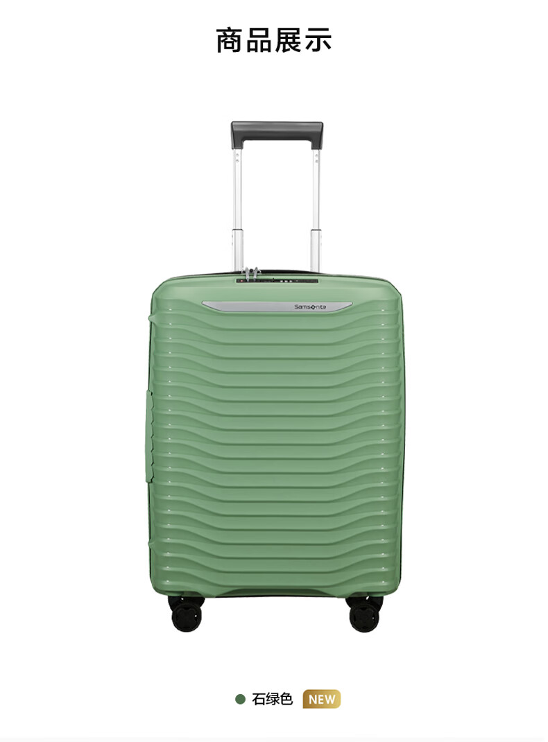 新秀丽(Samsonite)行李箱20英寸简约大波浪箱登机拉杆箱旅行箱KJ1浅灰绿密码箱
