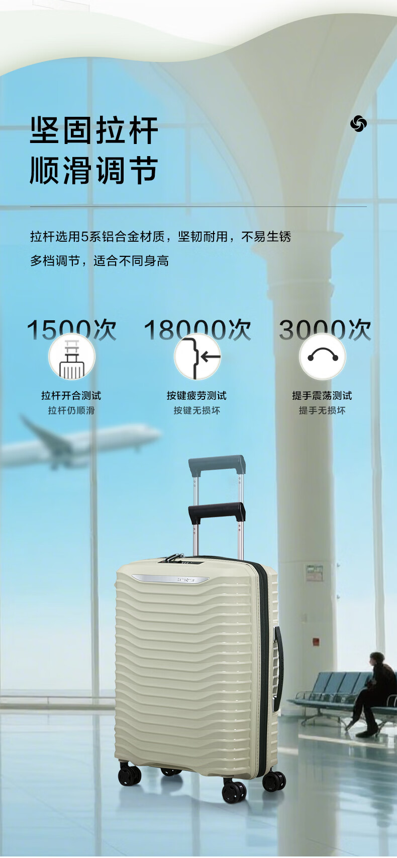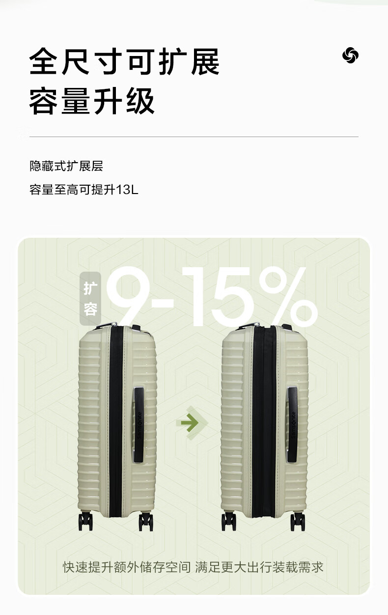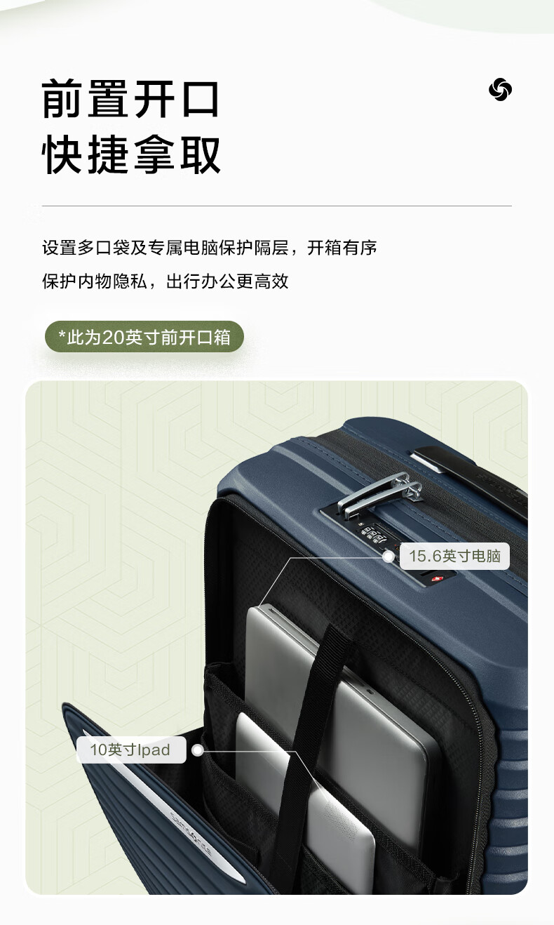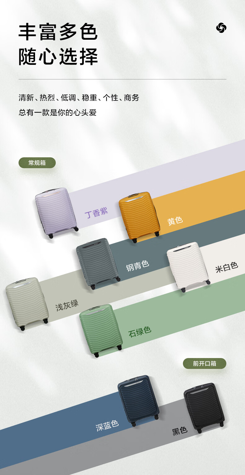 新秀丽(Samsonite)行李箱20英寸简约大波浪箱登机拉杆箱旅行箱KJ1浅灰绿密码箱