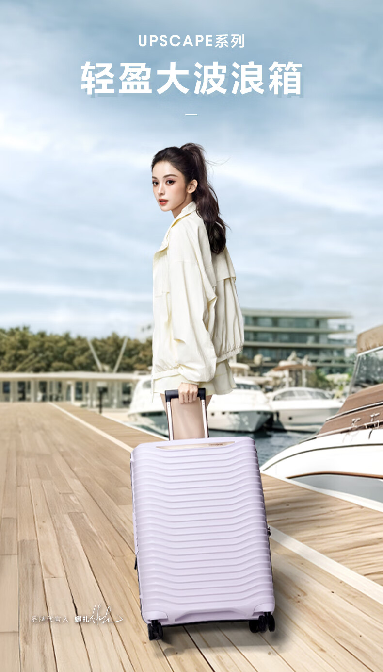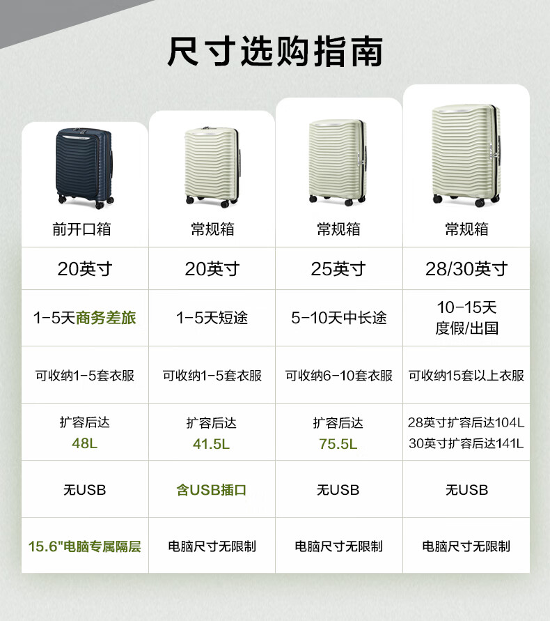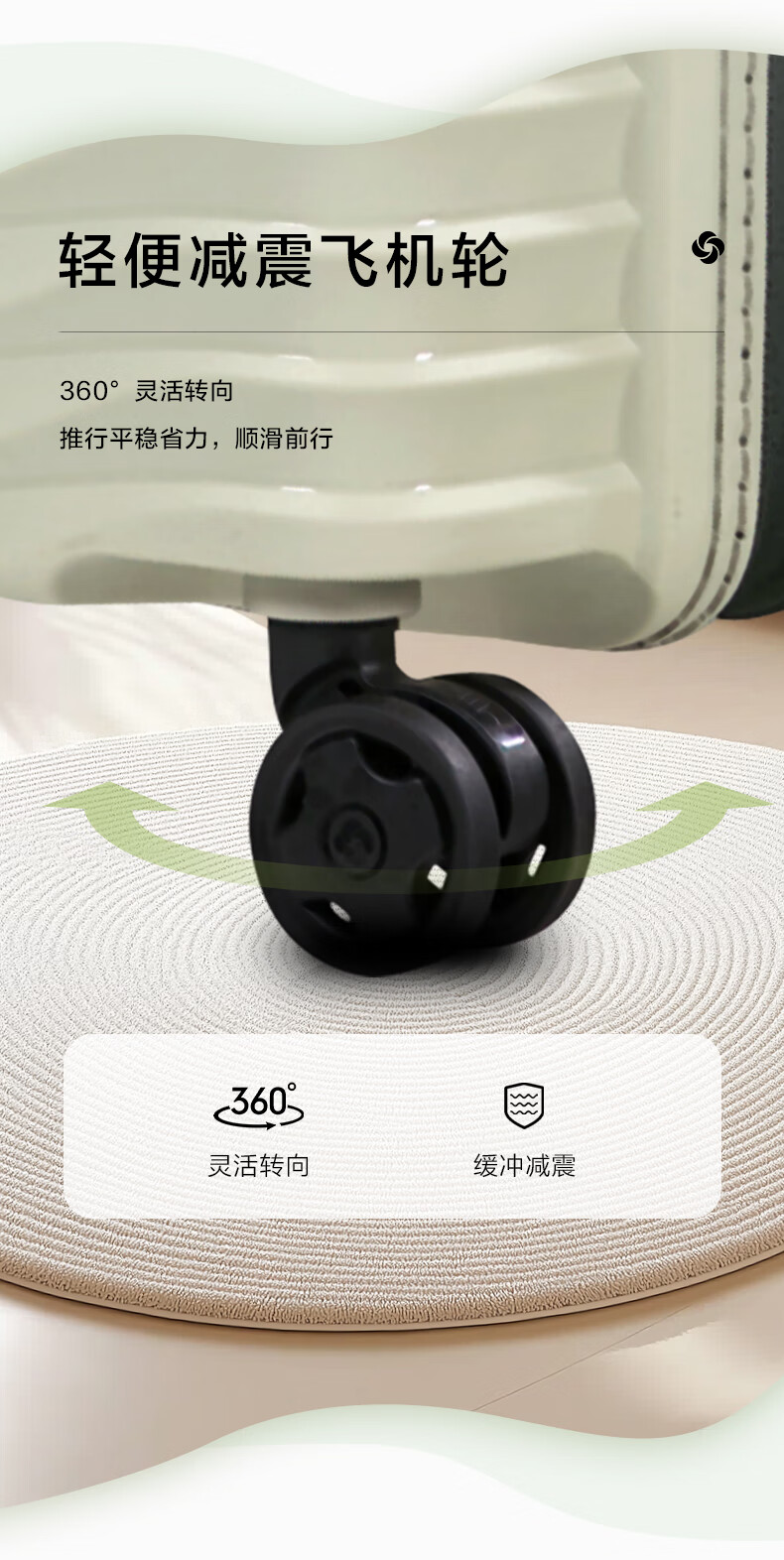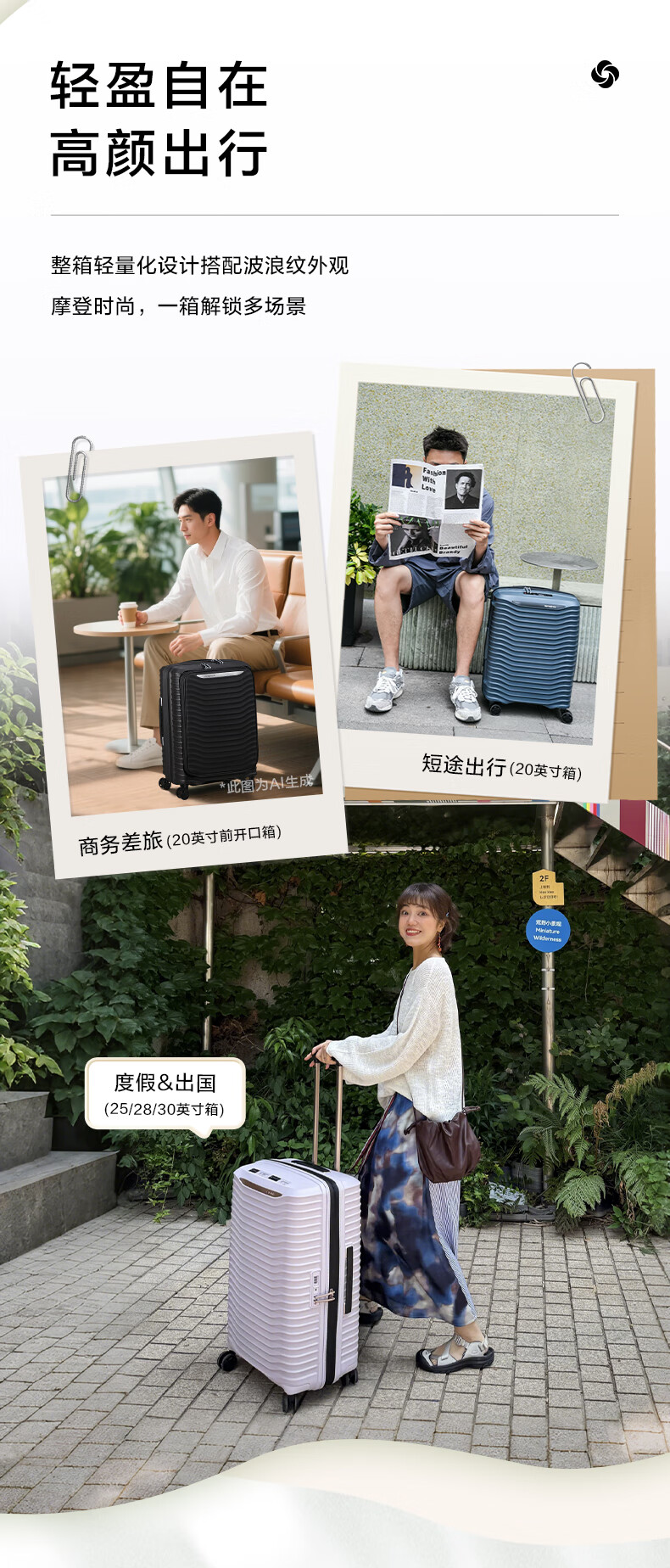 新秀丽(Samsonite)行李箱20英寸简约大波浪箱登机拉杆箱旅行箱KJ1浅灰绿密码箱