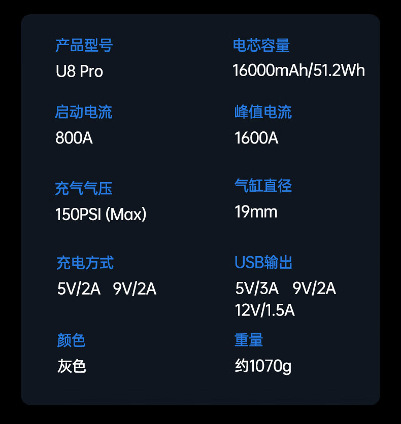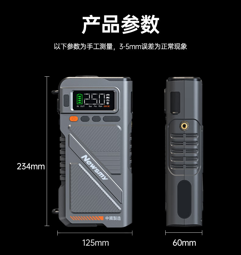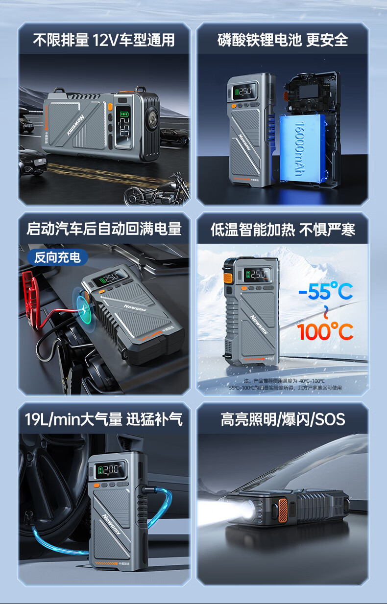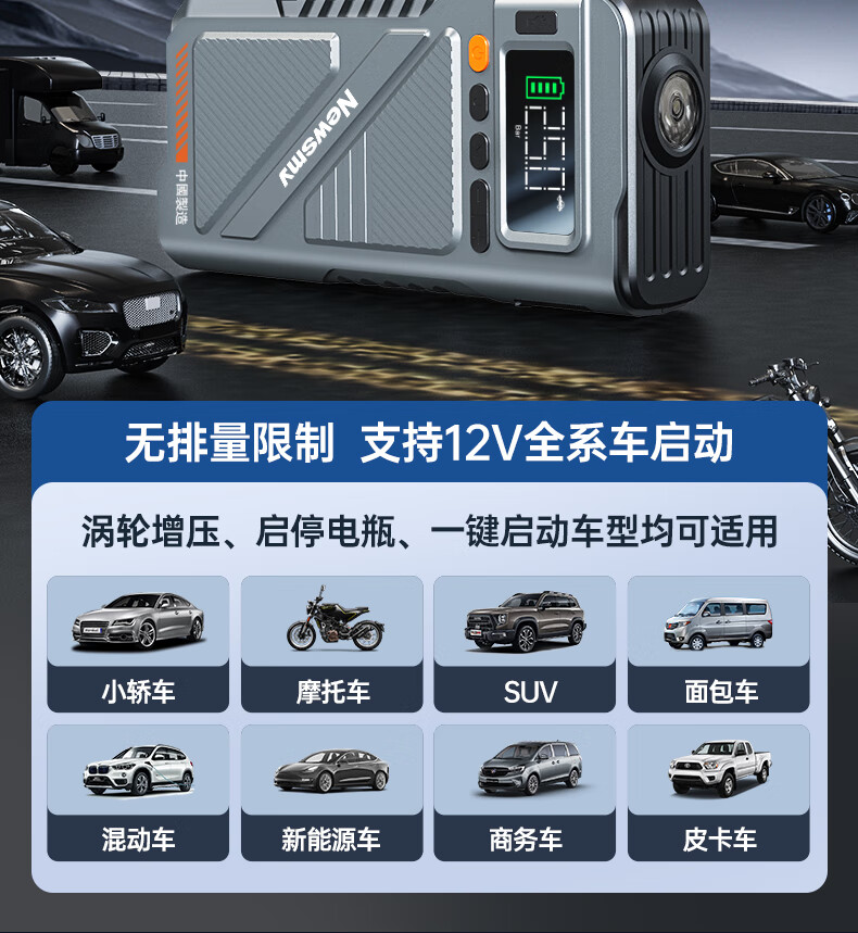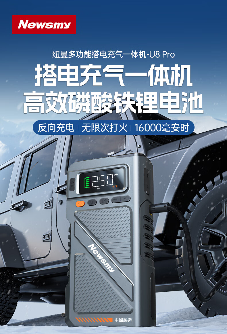 纽曼(Newsmy)【3C认证】U8pro汽车应急启动电源搭电宝充气泵一体机车载电瓶充电宝摩托车打气泵强启16000mAh