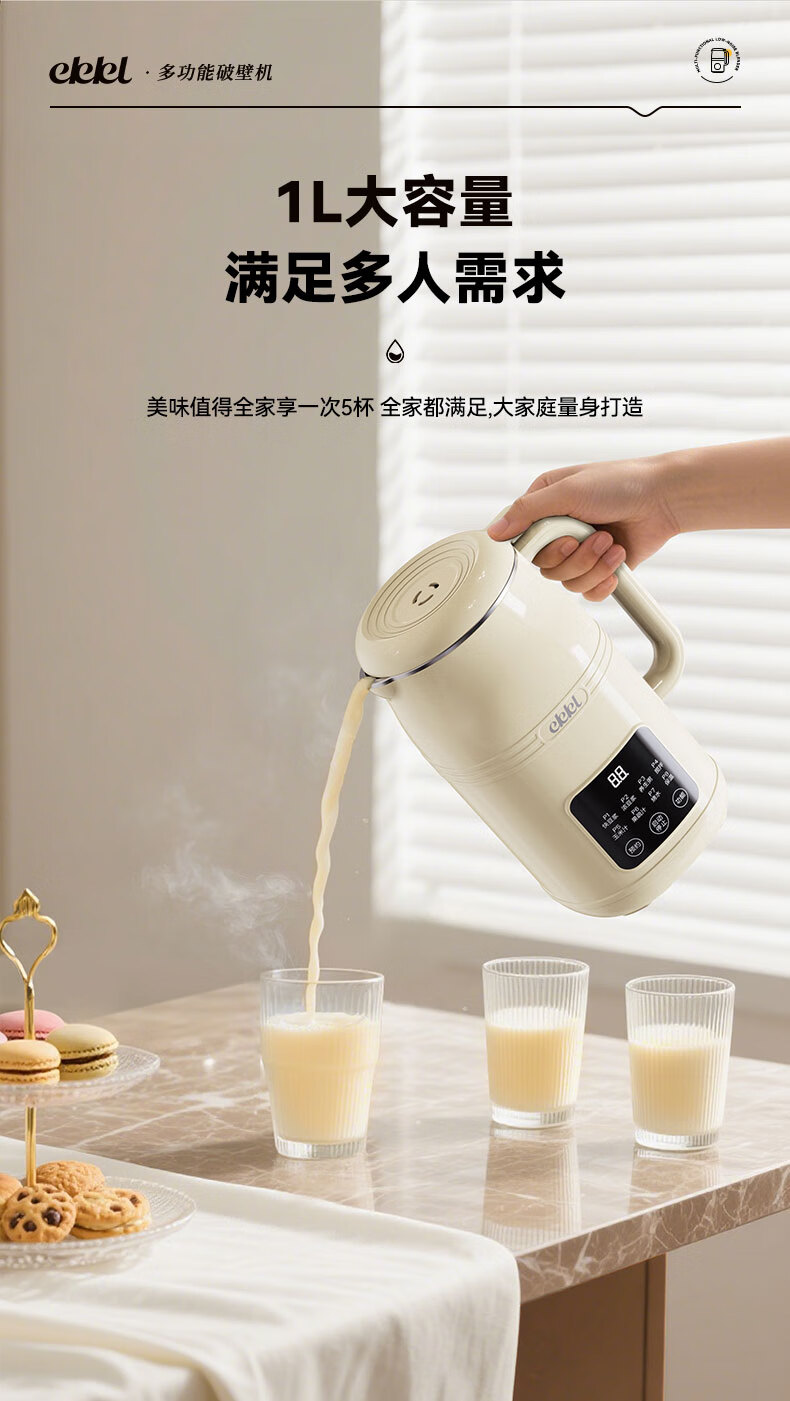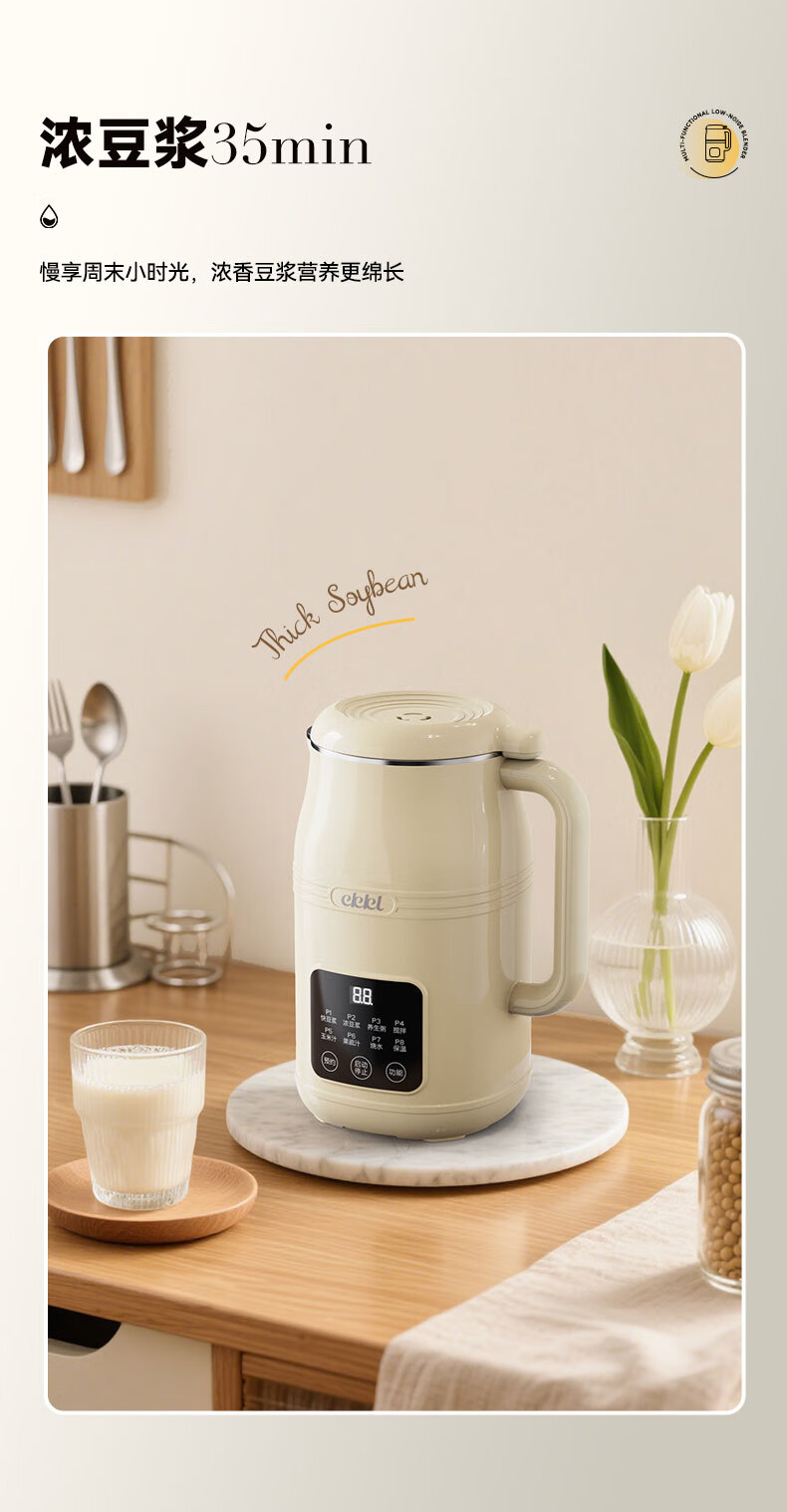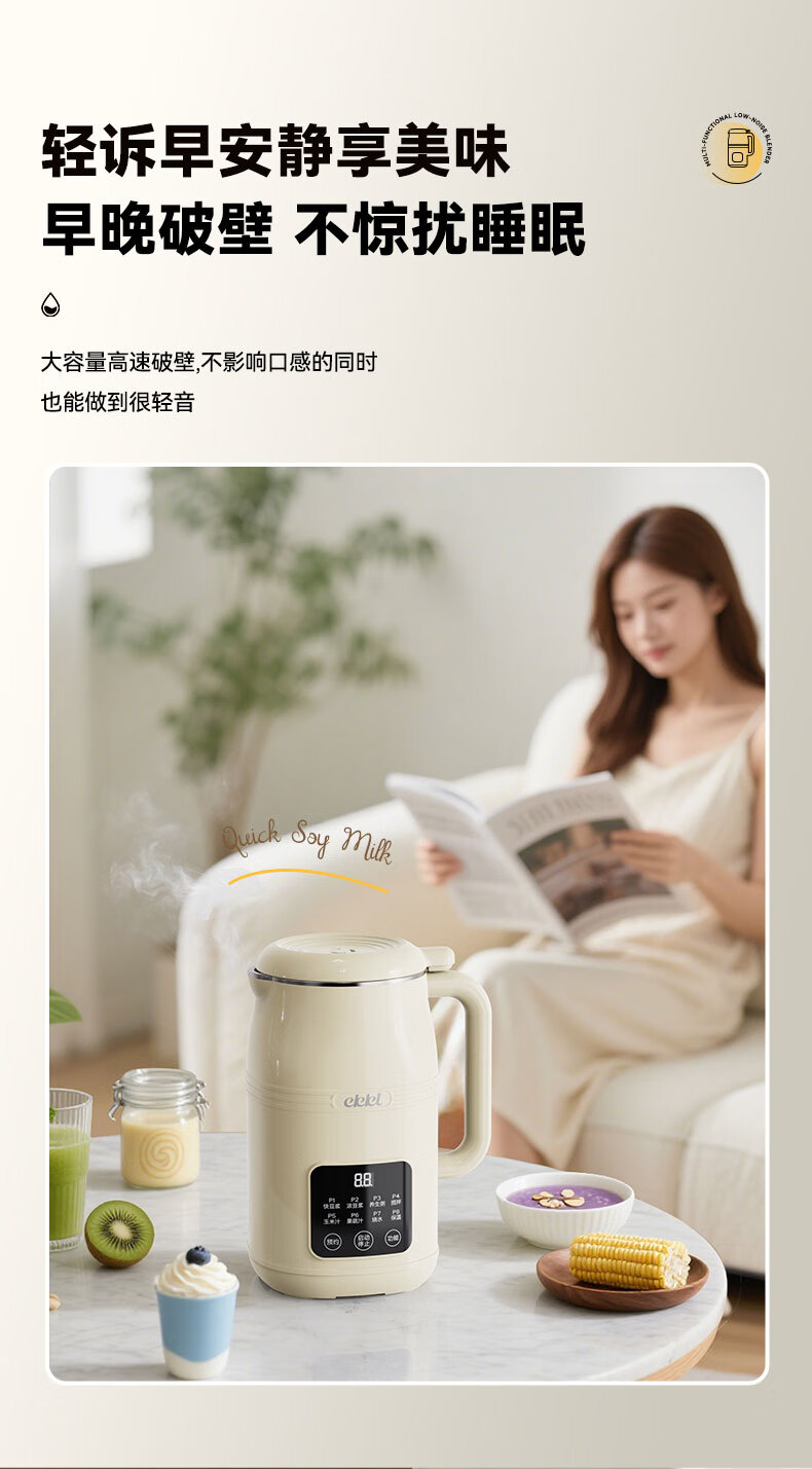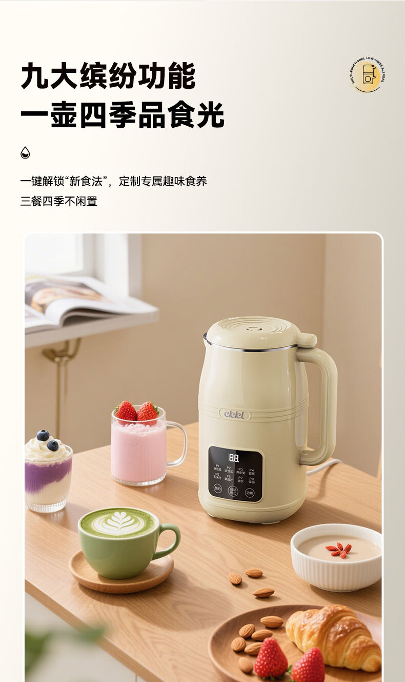 EKKL破壁机家用豆浆机全自动免煮2025新款五谷杂粮多功能轻音辅食果汁早餐机榨汁机免滤可预约1-3人 0涂层快制浆1L【1-3人食】