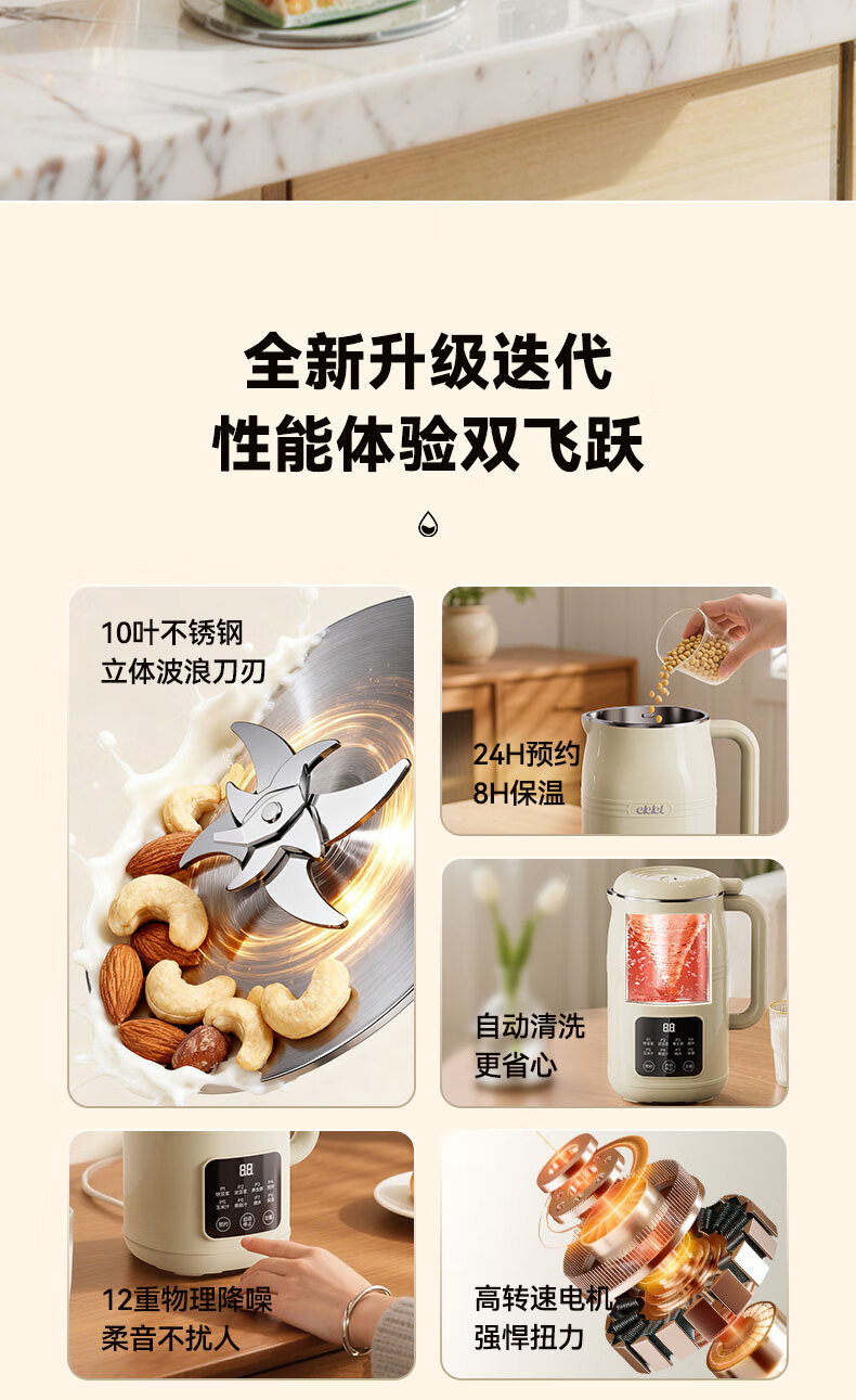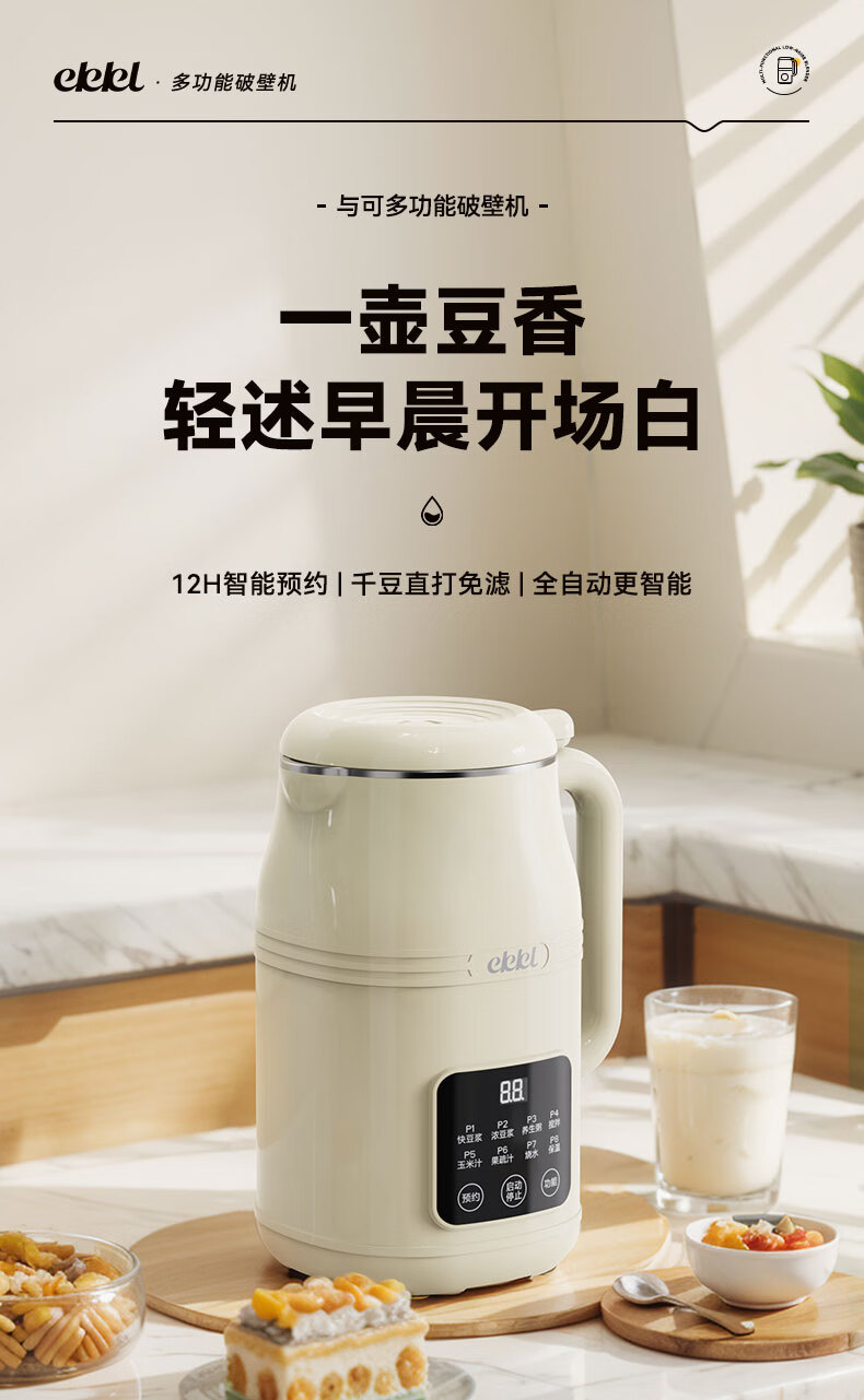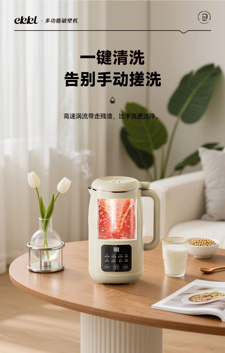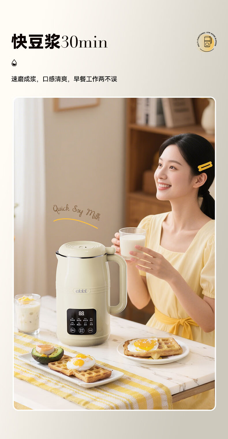 EKKL破壁机家用豆浆机全自动免煮2025新款五谷杂粮多功能轻音辅食果汁早餐机榨汁机免滤可预约1-3人 0涂层快制浆1L【1-3人食】