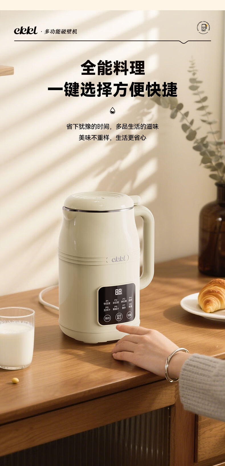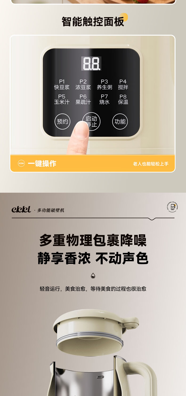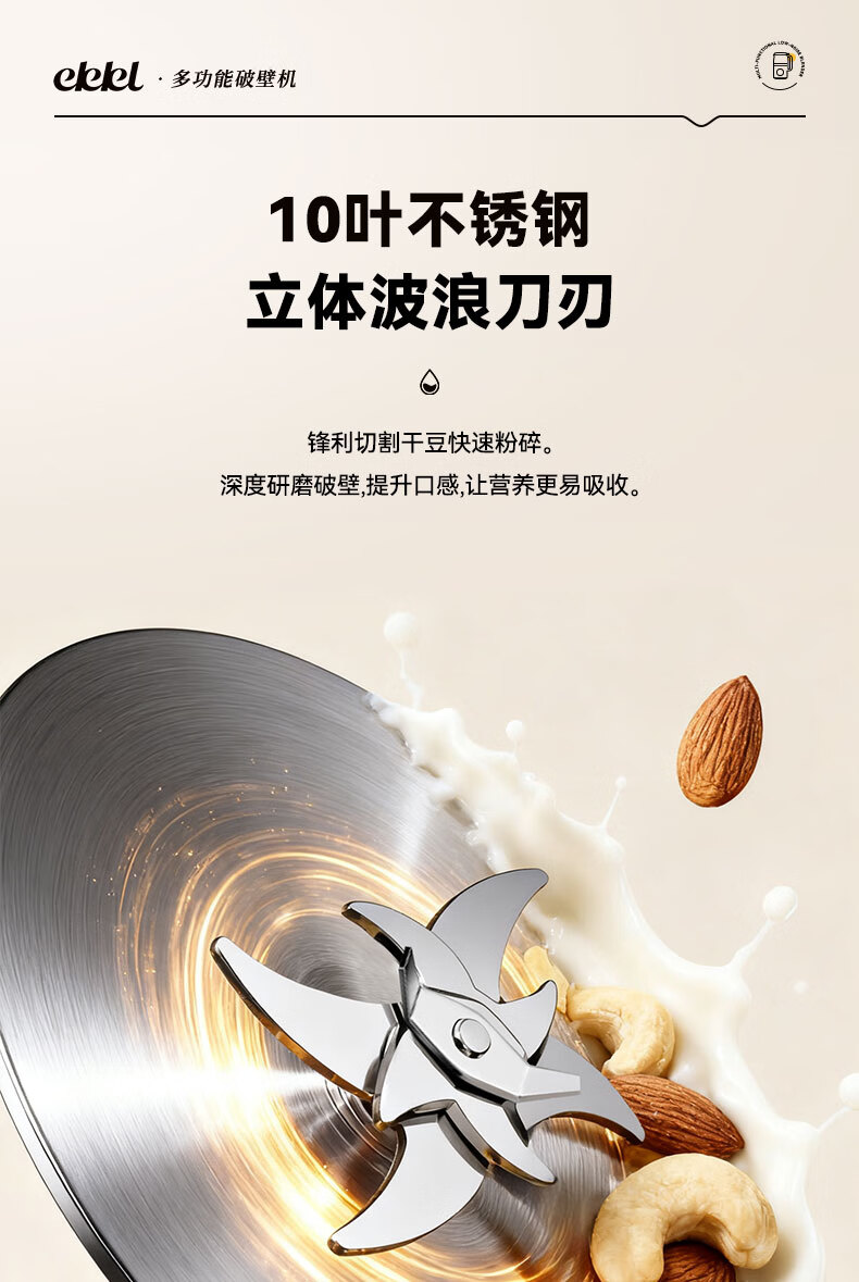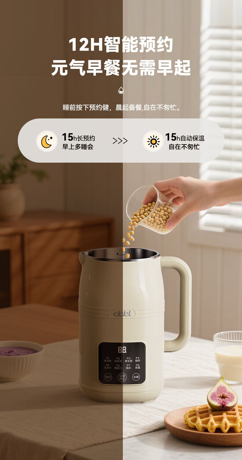 EKKL破壁机家用豆浆机全自动免煮2025新款五谷杂粮多功能轻音辅食果汁早餐机榨汁机免滤可预约1-3人 0涂层快制浆1L【1-3人食】