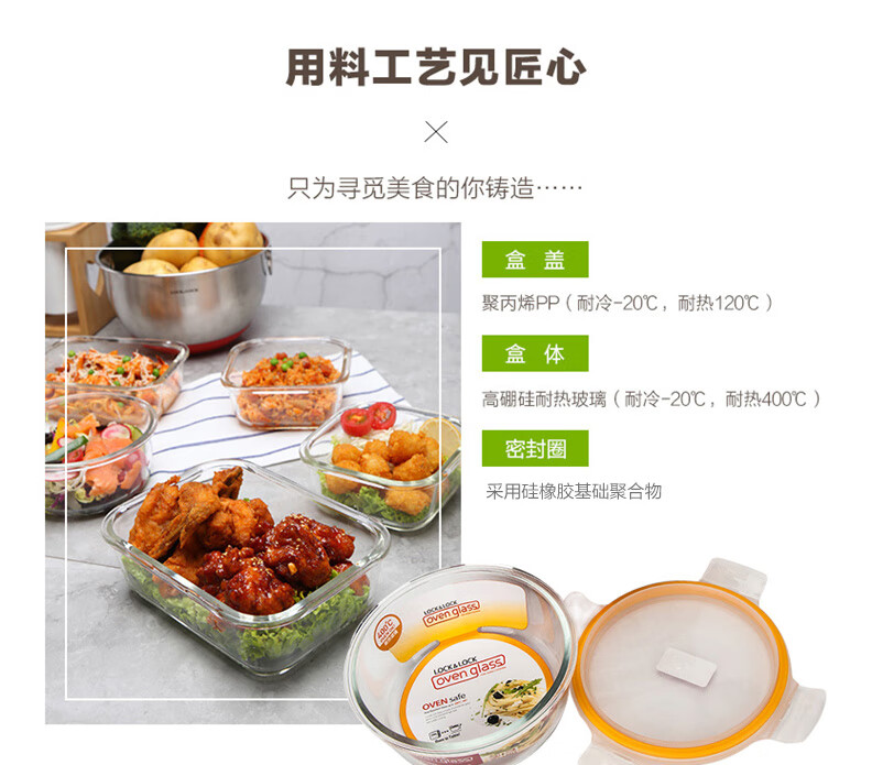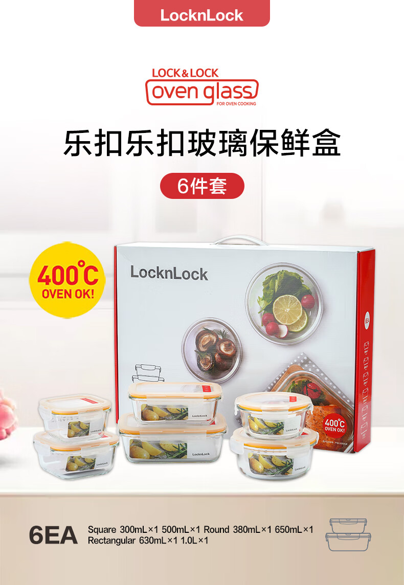 乐扣乐扣(LOCK&LOCK)耐热玻璃保鲜盒微波炉饭盒上班族便当盒学生水果饭菜餐盒6件套
