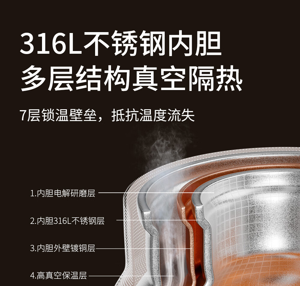 苏泊尔(SUPOR)72小时长效保温壶大容量热水瓶家用保温水壶2024新款办公室保温瓶 灰色1L