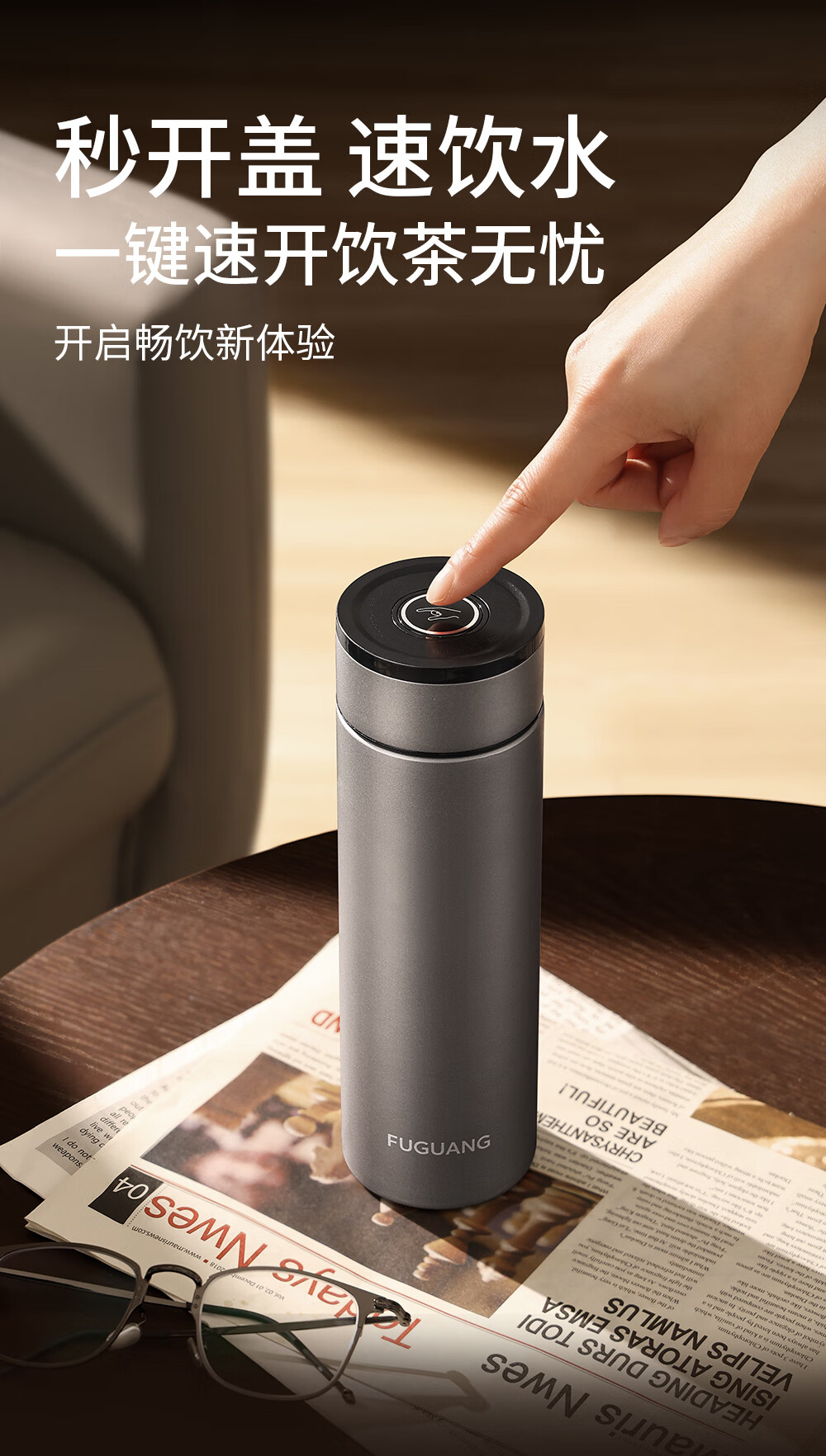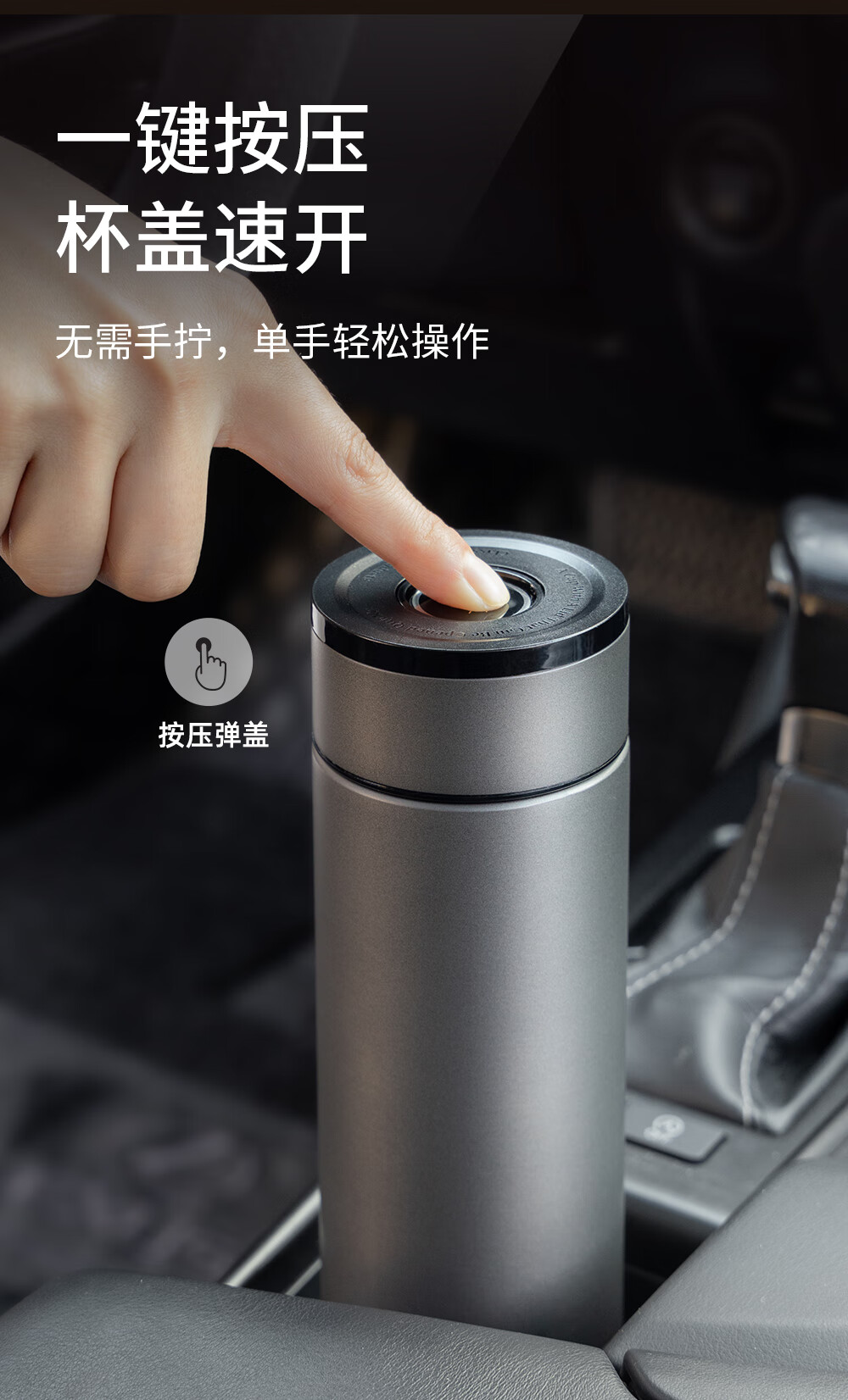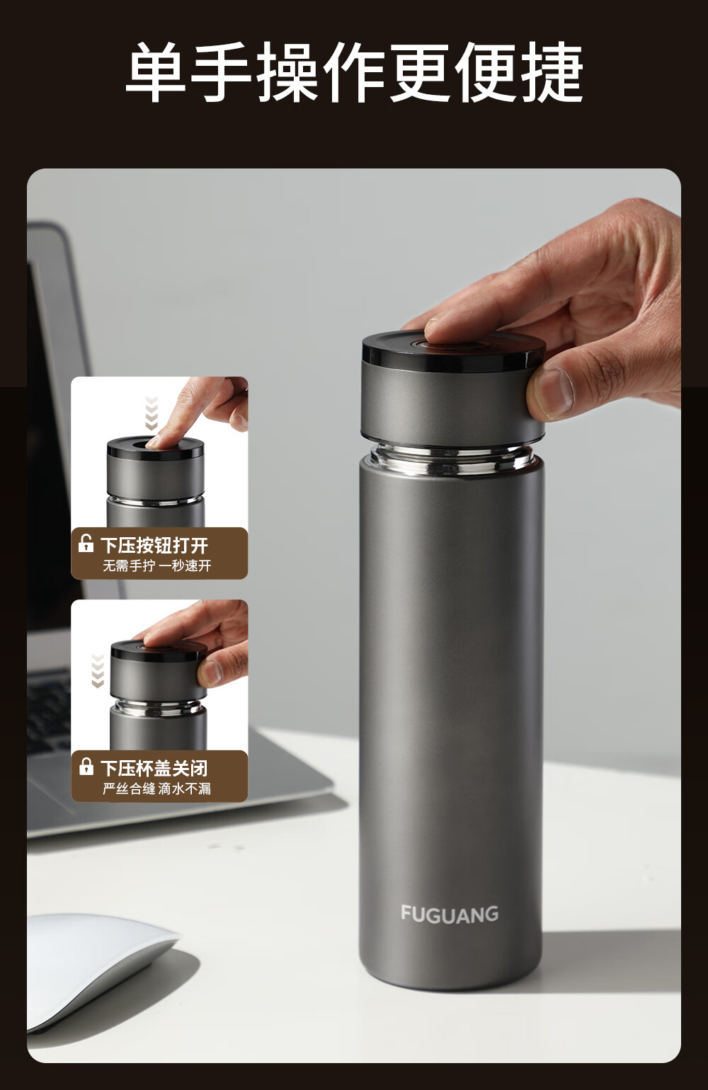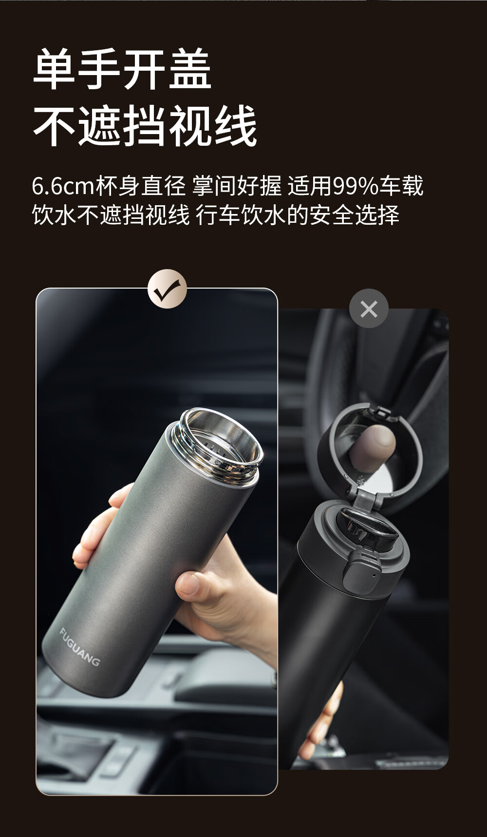 富光车载一键开盖保温杯 316L不锈钢泡茶杯子 保冷杯商务水杯男女士