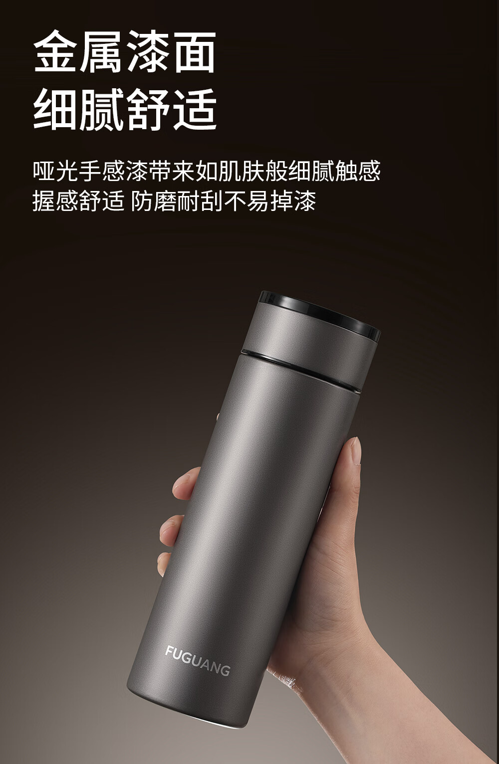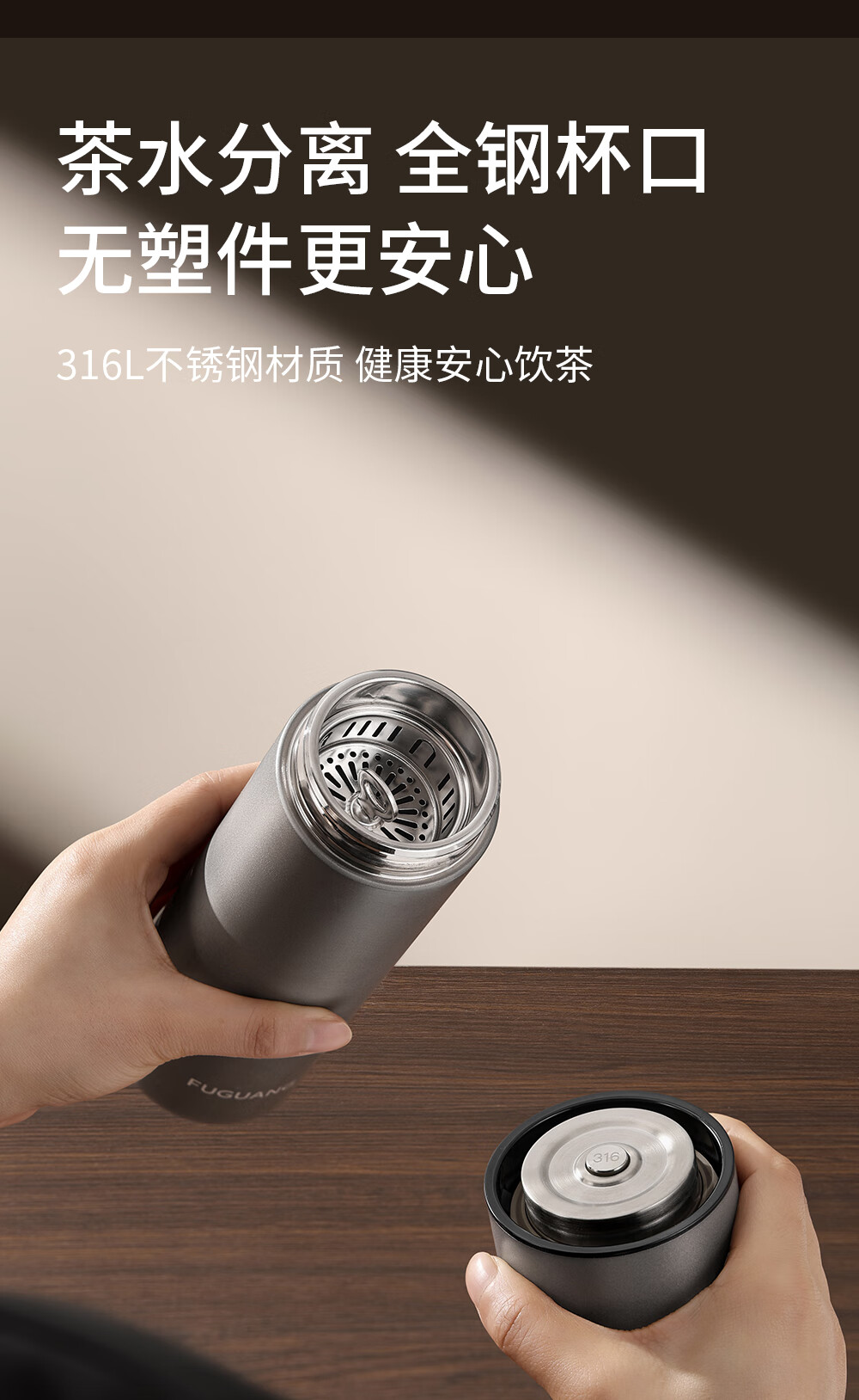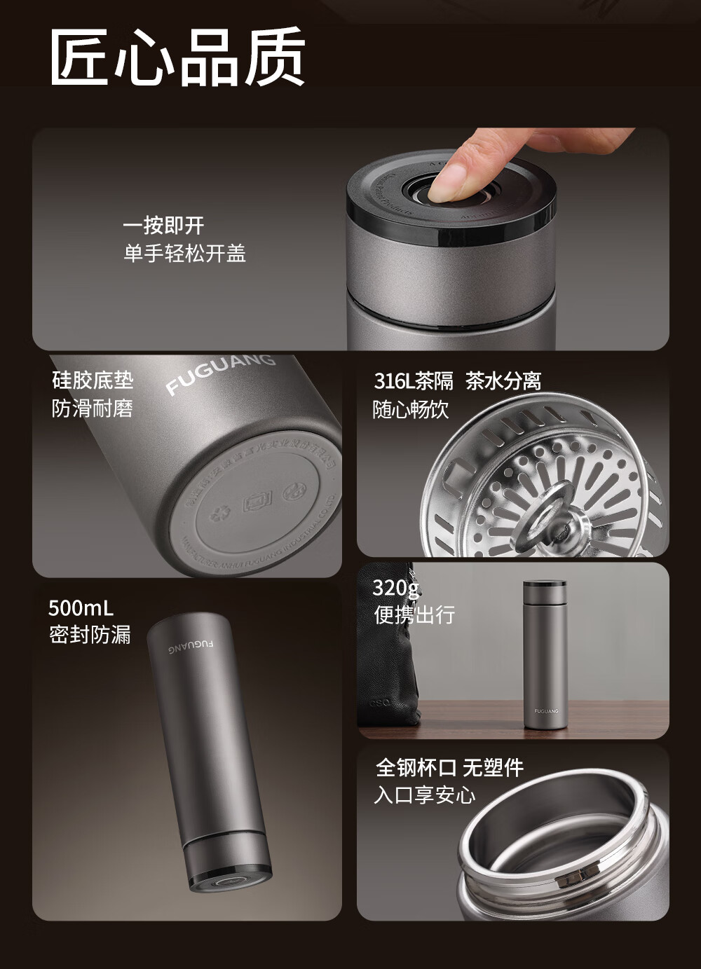 富光车载一键开盖保温杯 316L不锈钢泡茶杯子 保冷杯商务水杯男女士