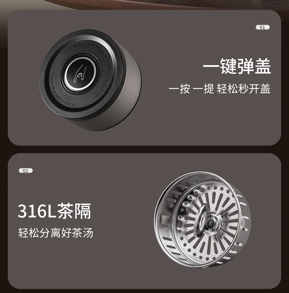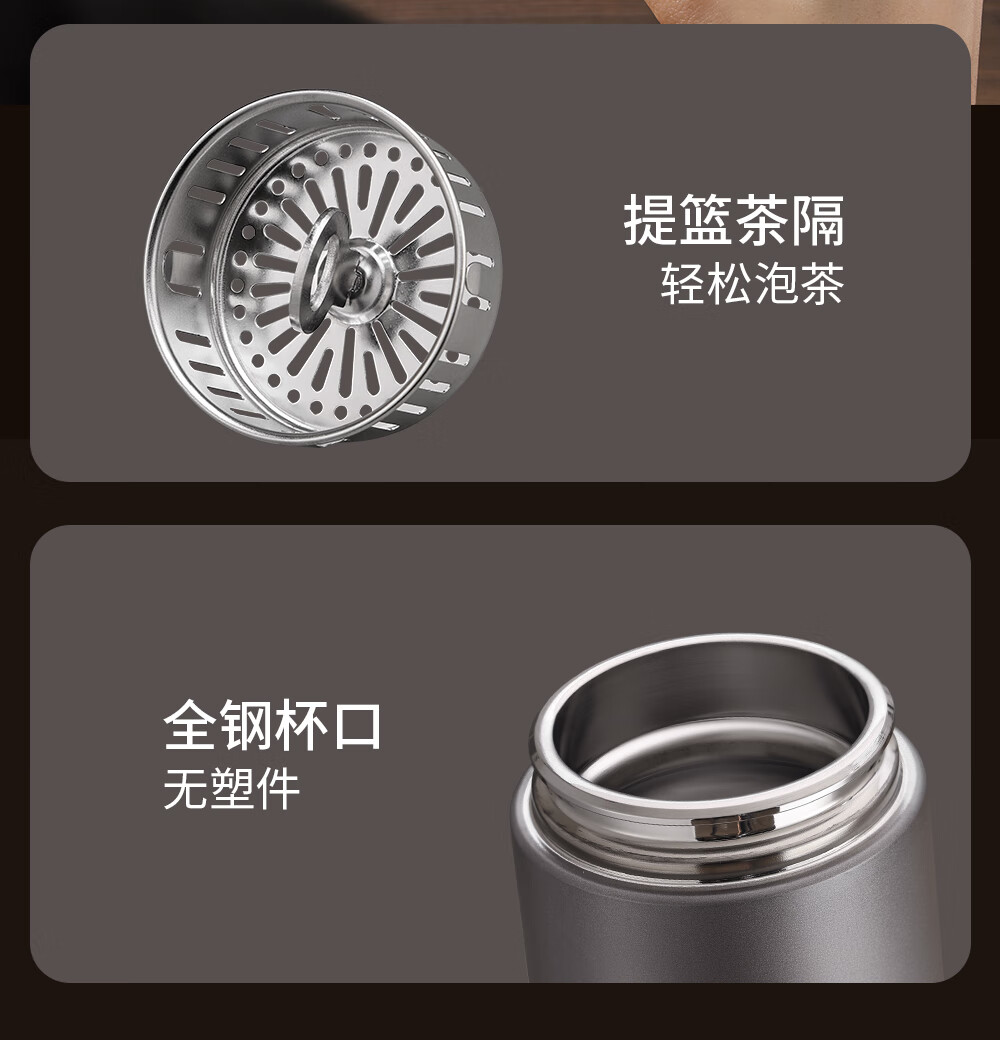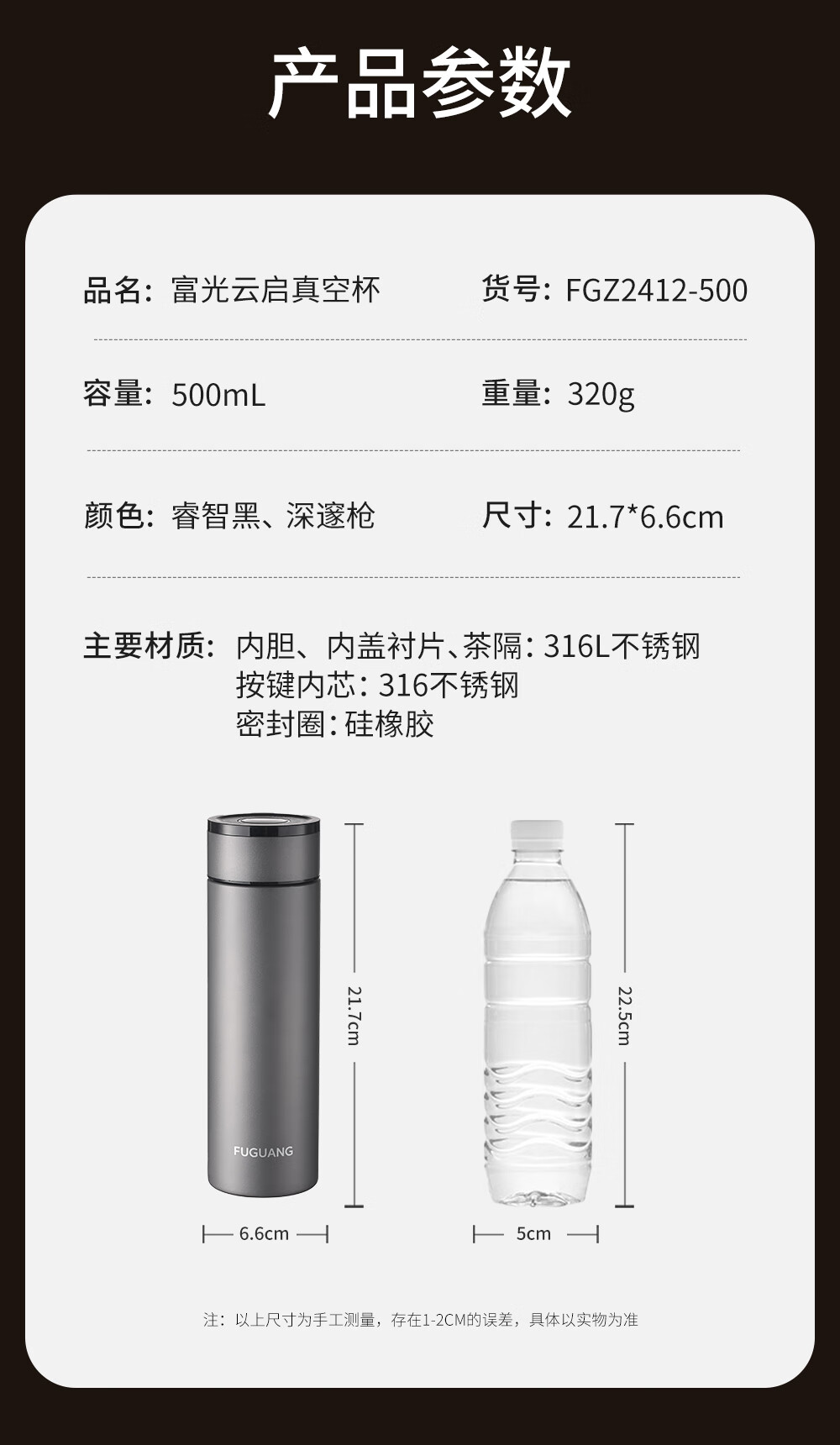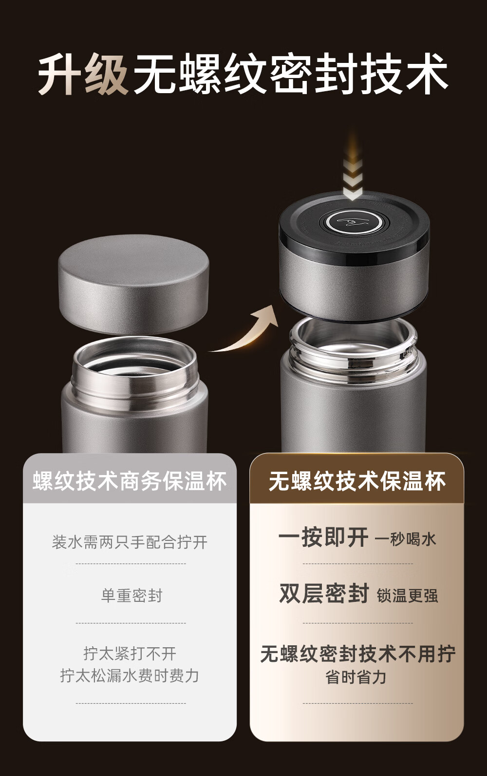 富光车载一键开盖保温杯 316L不锈钢泡茶杯子 保冷杯商务水杯男女士