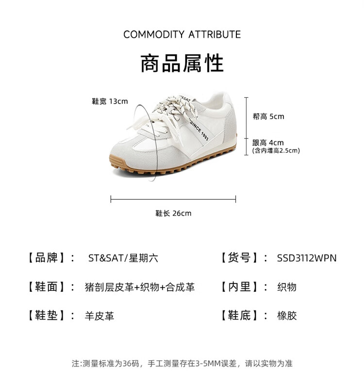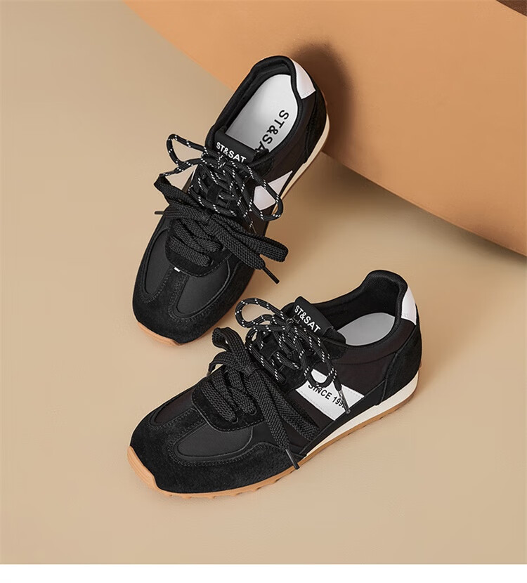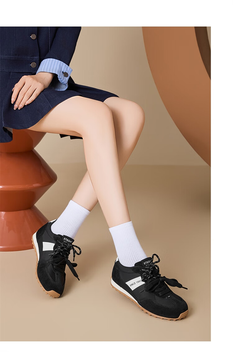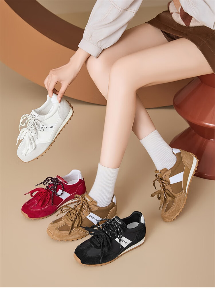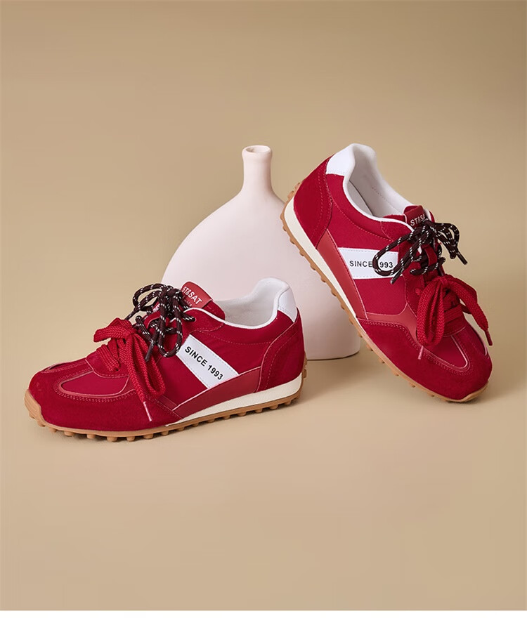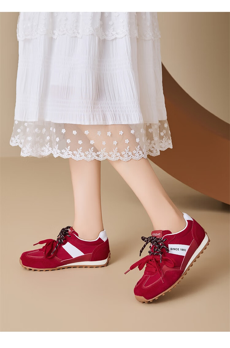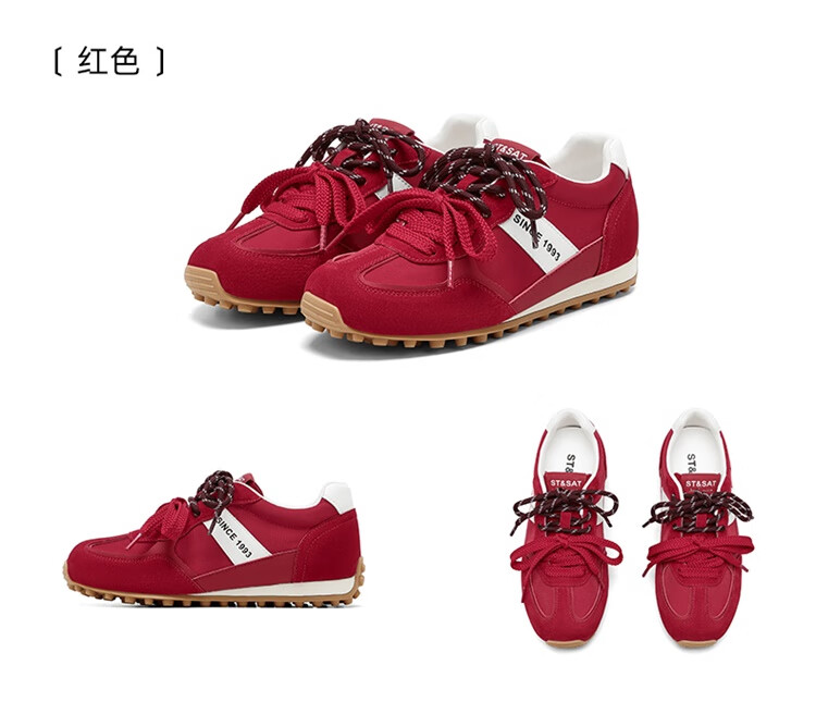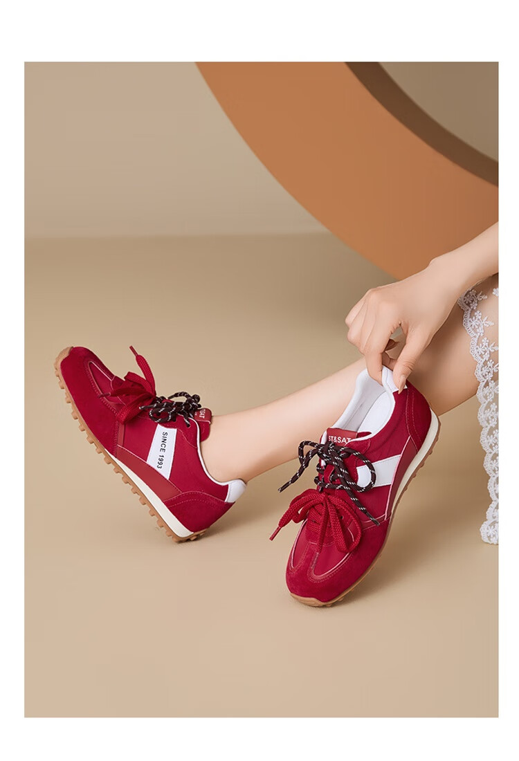 星期六圆头双鞋带运动女鞋2025秋季新款百搭休闲德训鞋MTSSD3112WPN 红色 35