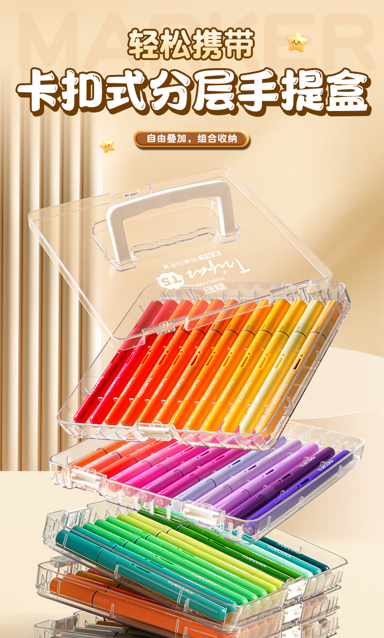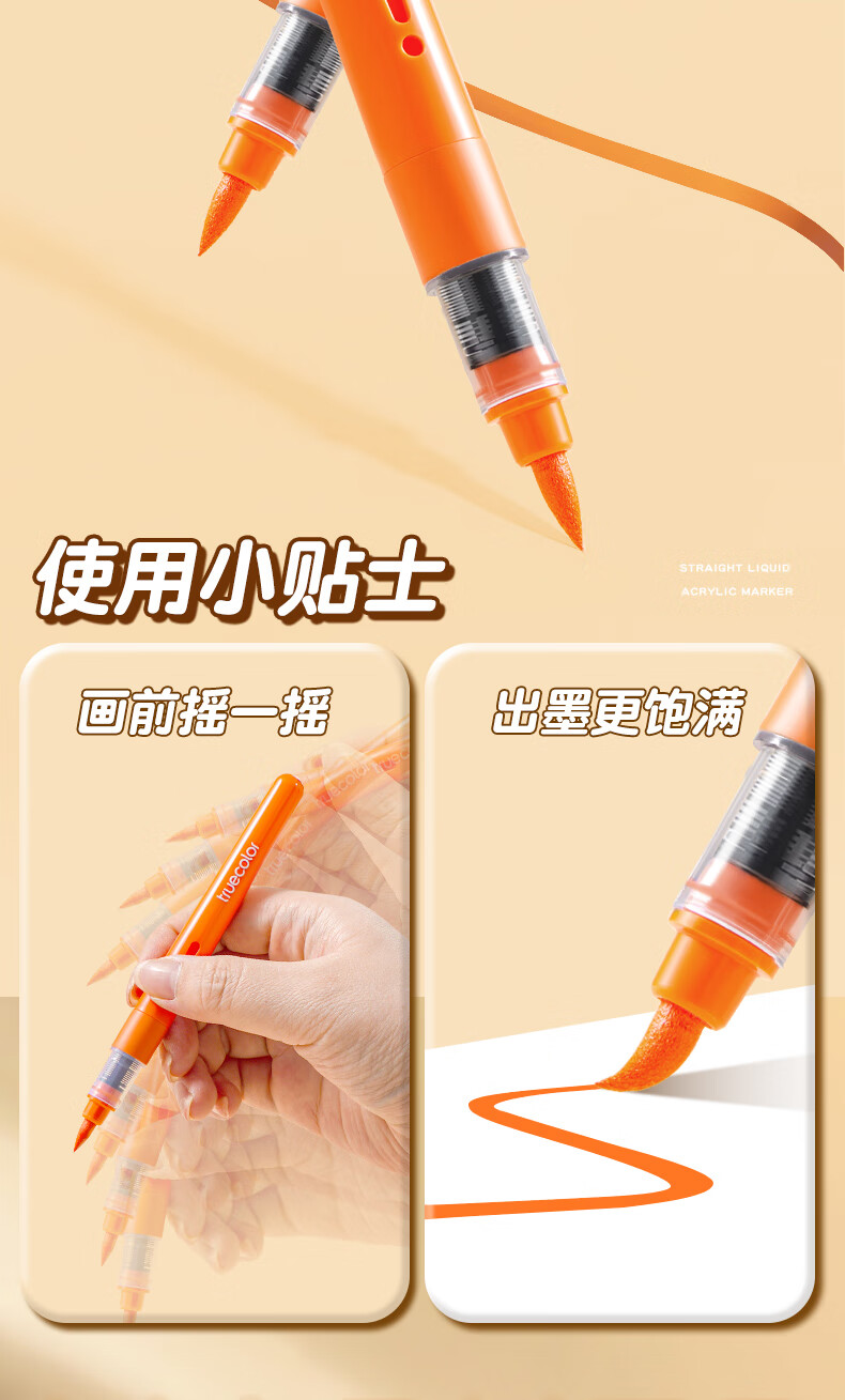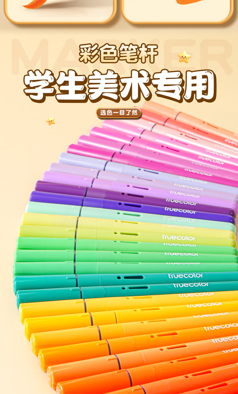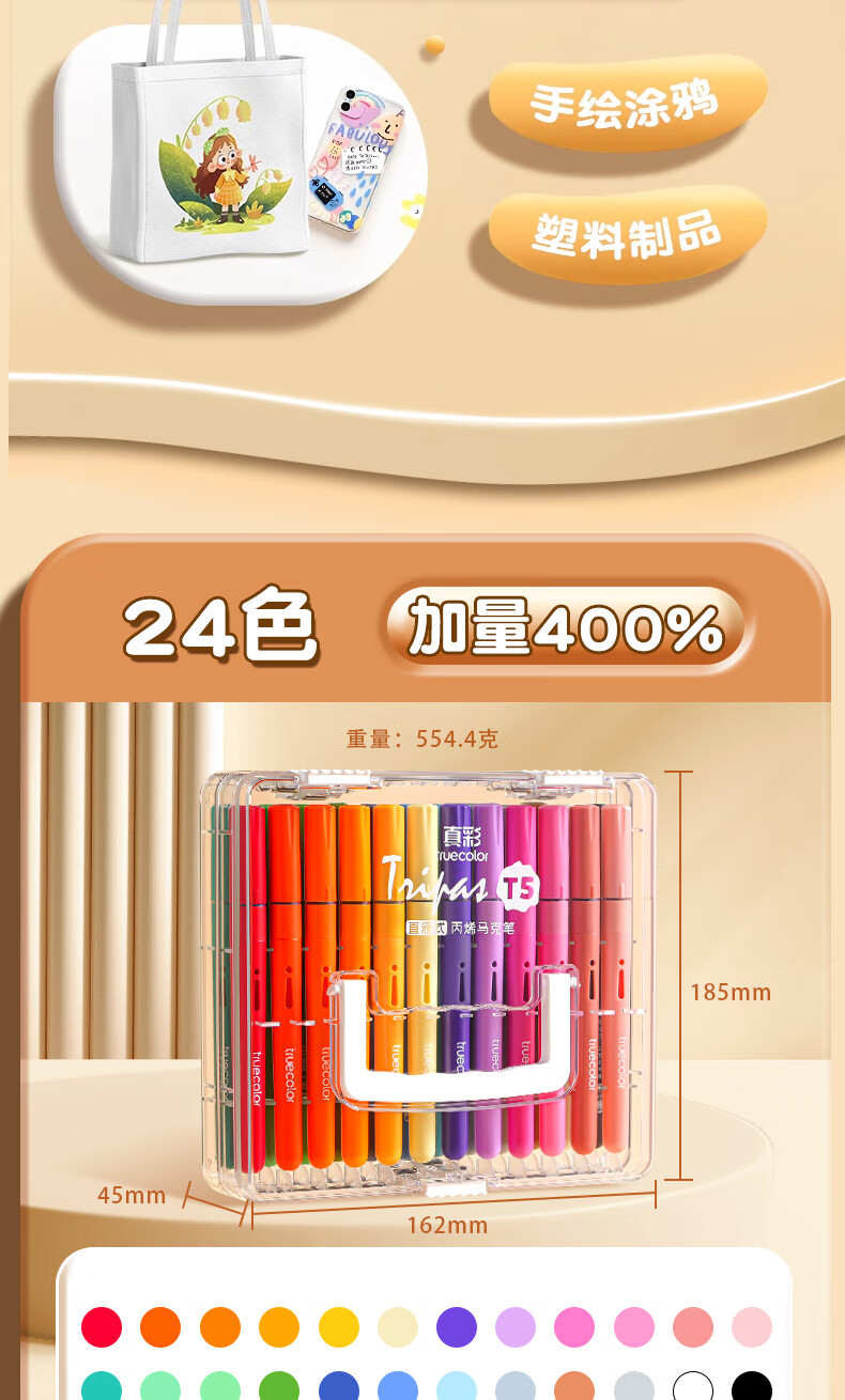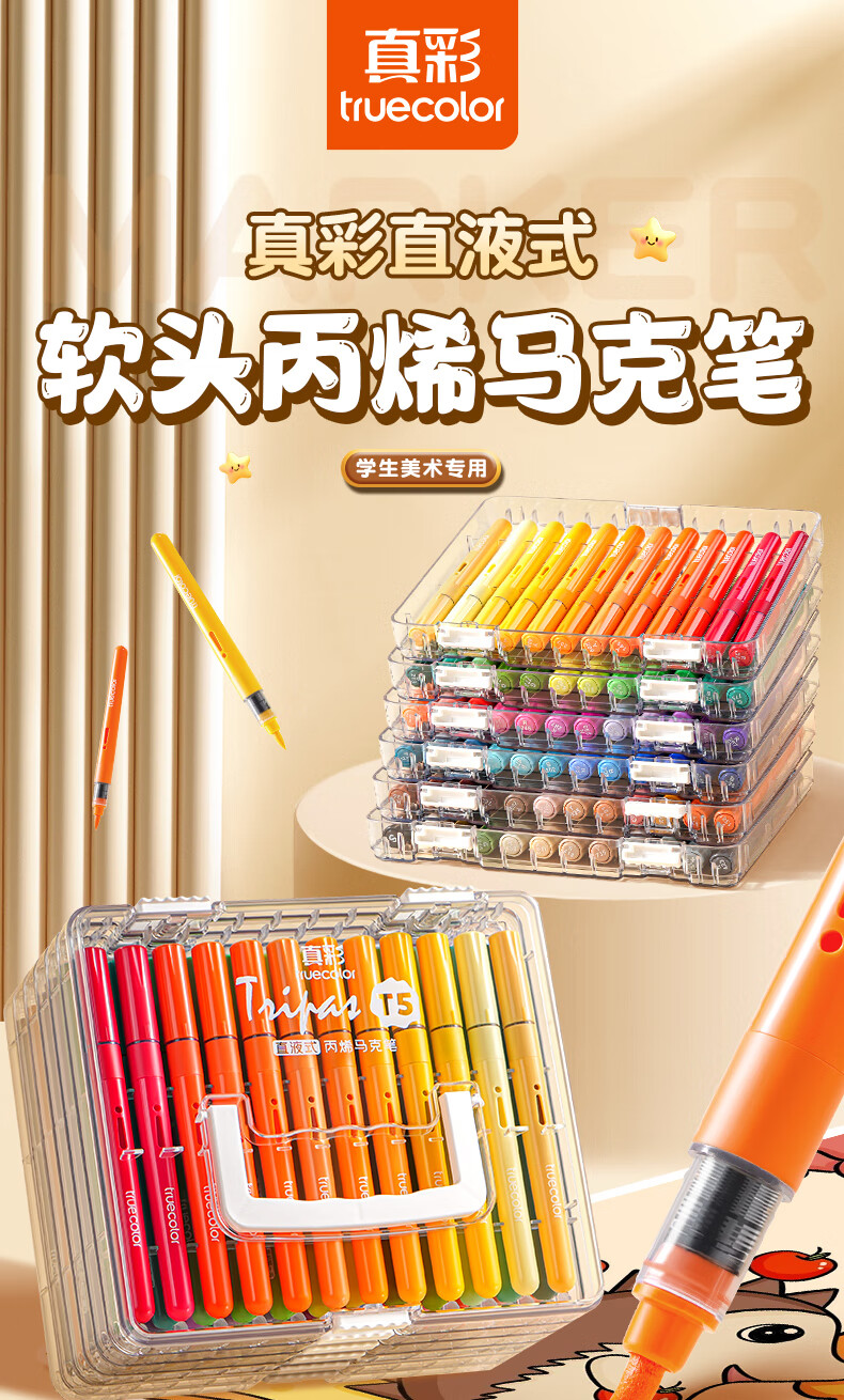 真彩(TRUECOLOR)24色直液式丙烯马克笔软头学生美术专用美术生不透色可叠色可水洗儿童小学生幼儿园水彩笔套装T5
