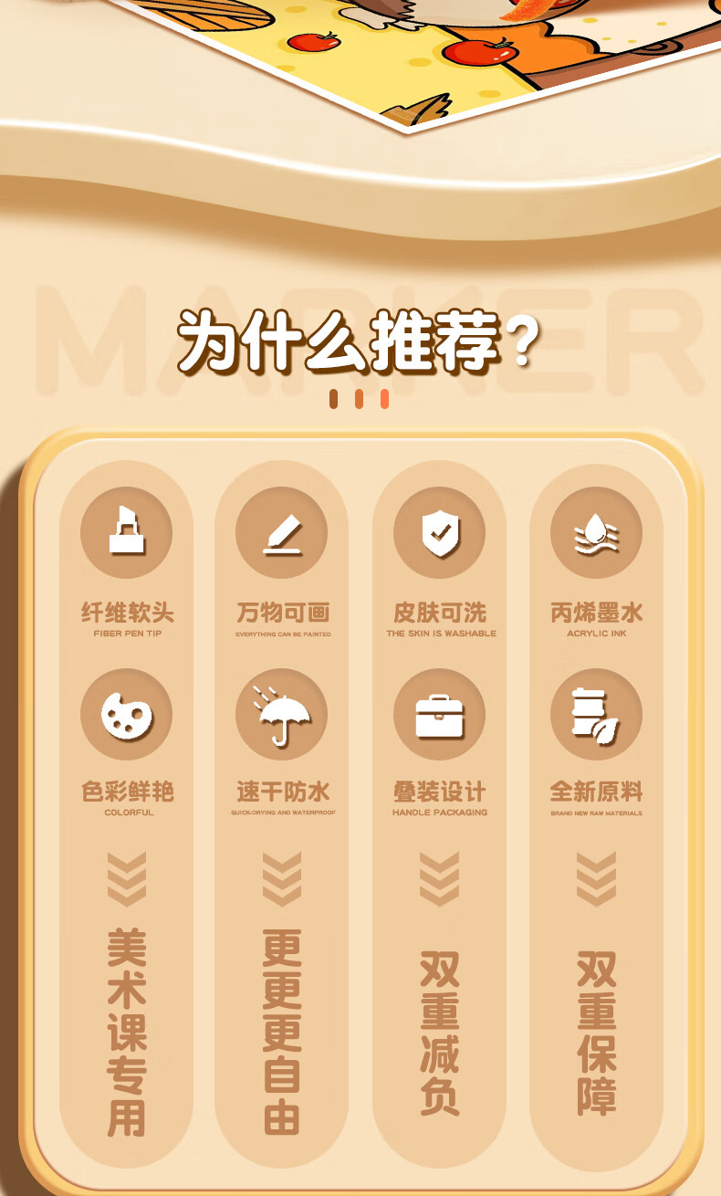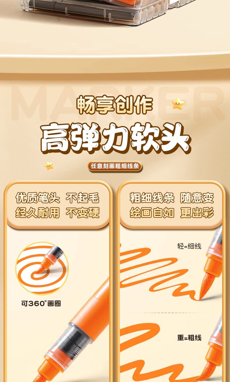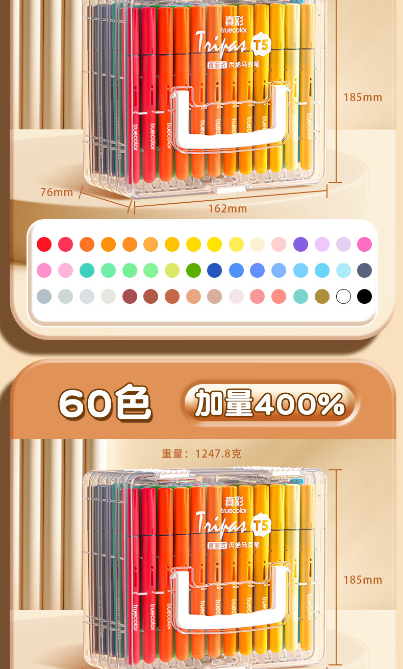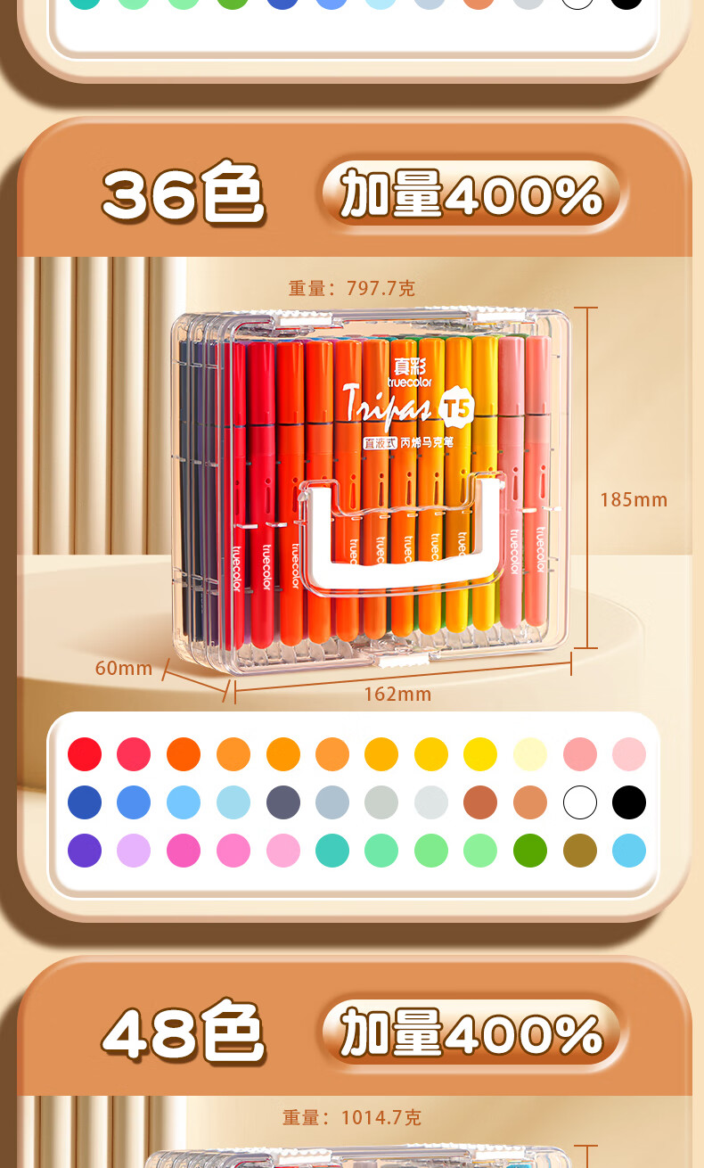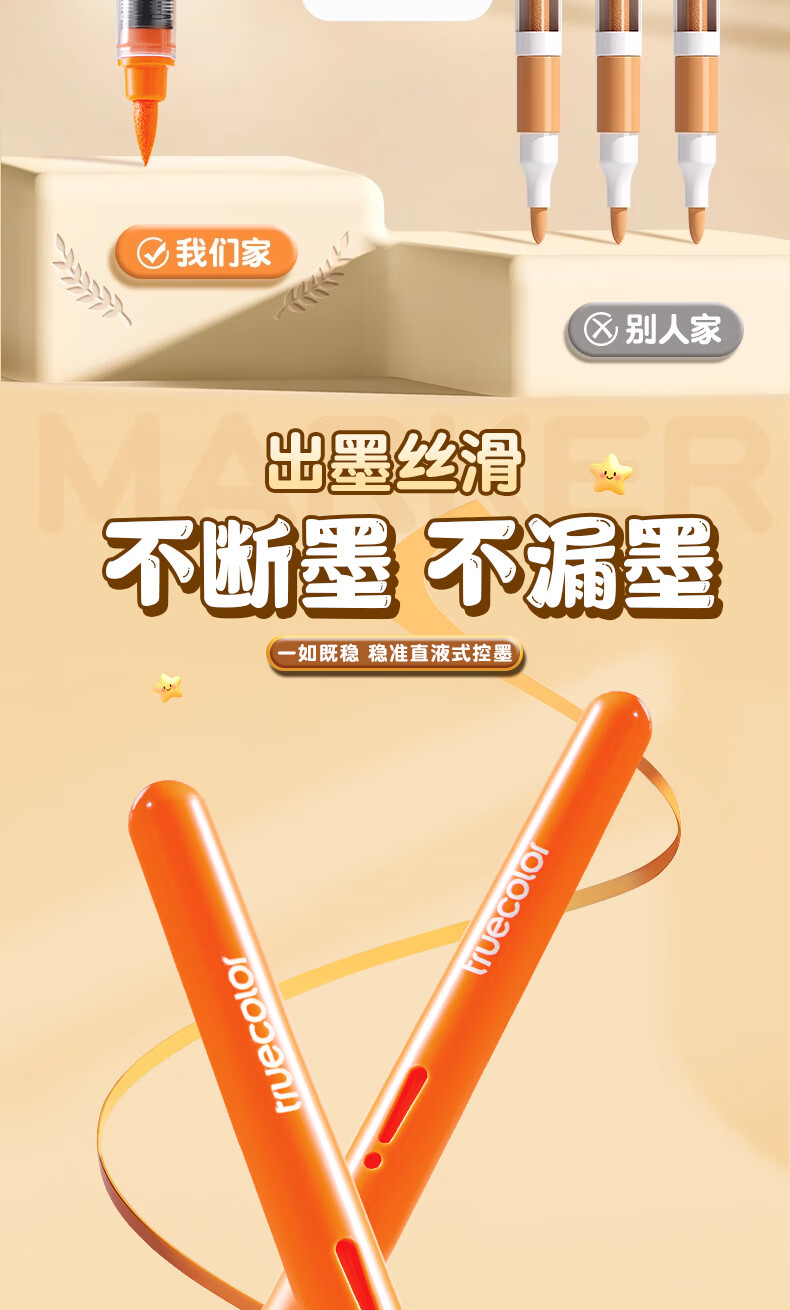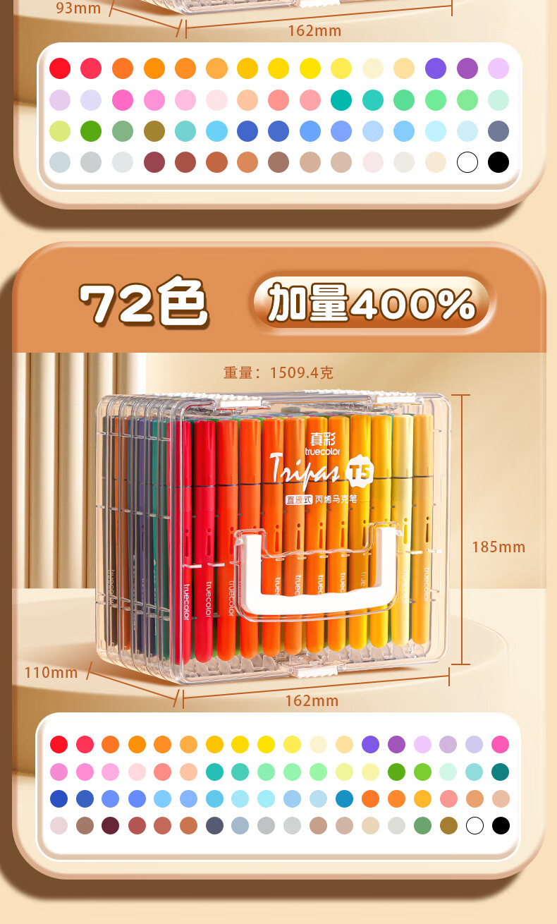 真彩(TRUECOLOR)24色直液式丙烯马克笔软头学生美术专用美术生不透色可叠色可水洗儿童小学生幼儿园水彩笔套装T5