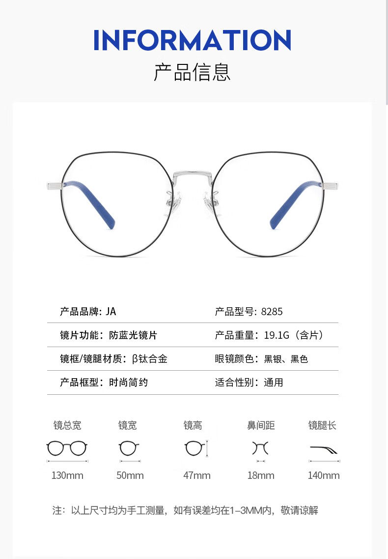 Jardin d'amour防蓝光辐射眼镜男女款大框显脸小护目镜平光钛架框可配度数8285