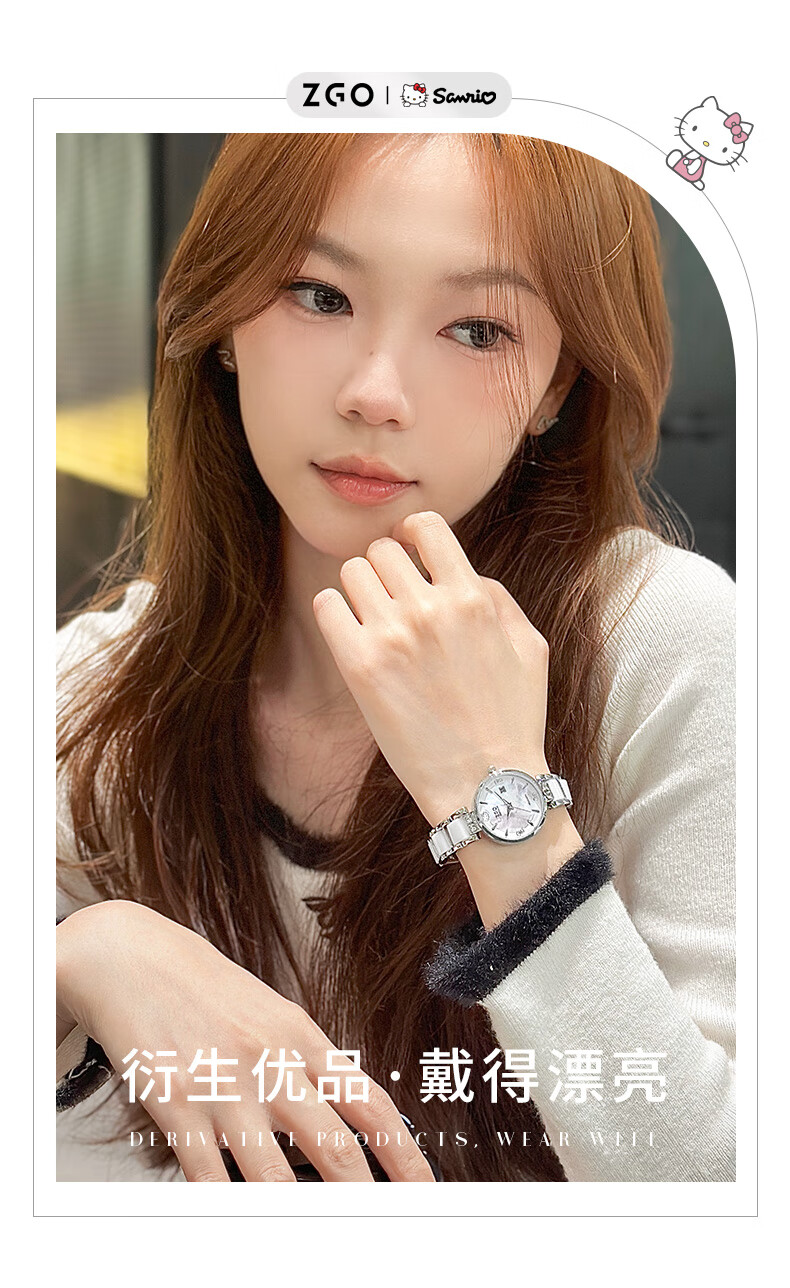 Hello Kitty三丽鸥手表女款轻奢精致手链女士机械风石英表小众生日礼物送女友