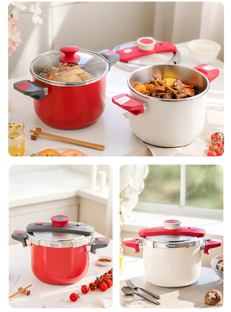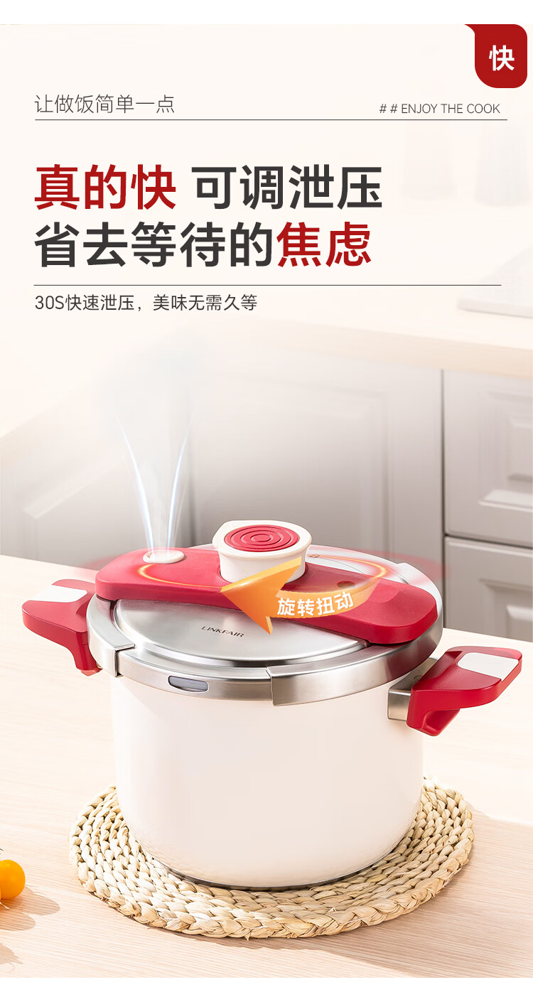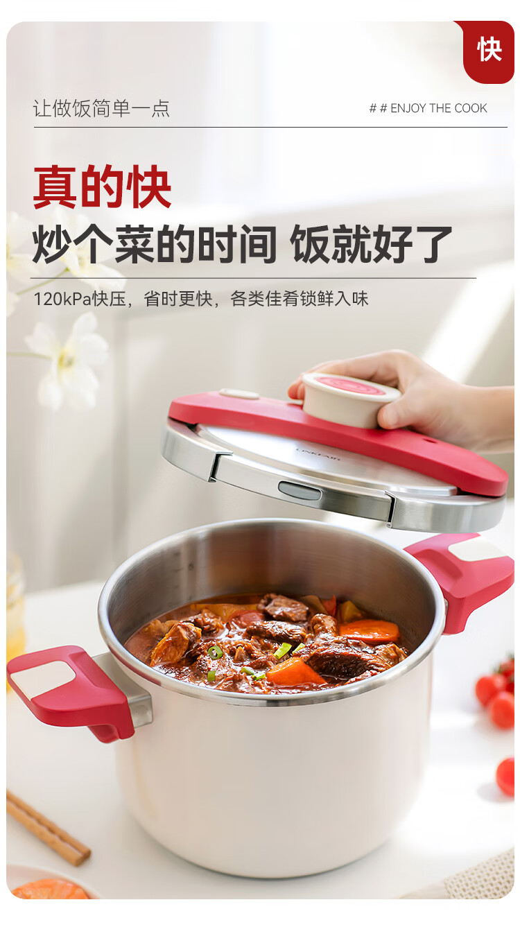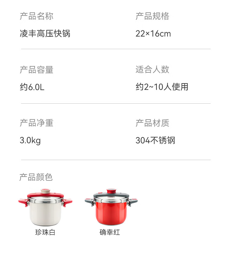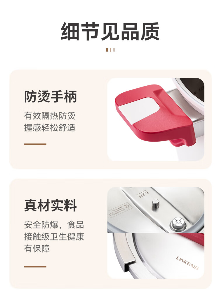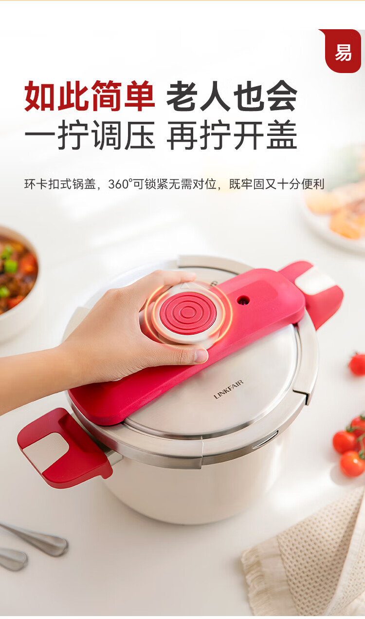凌丰不锈钢高压锅家用压力锅防爆单手开合燃气电磁炉通用【京东限定】