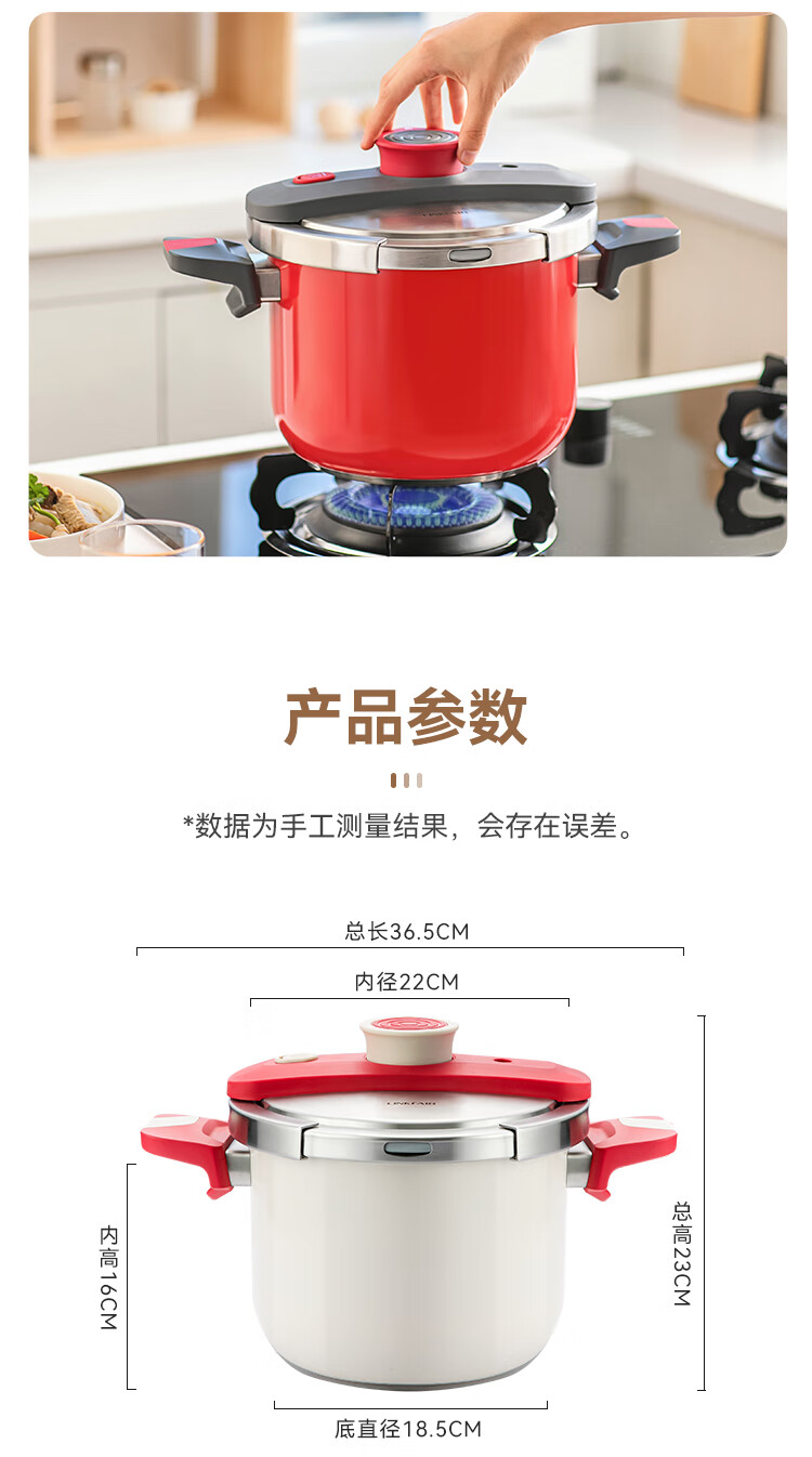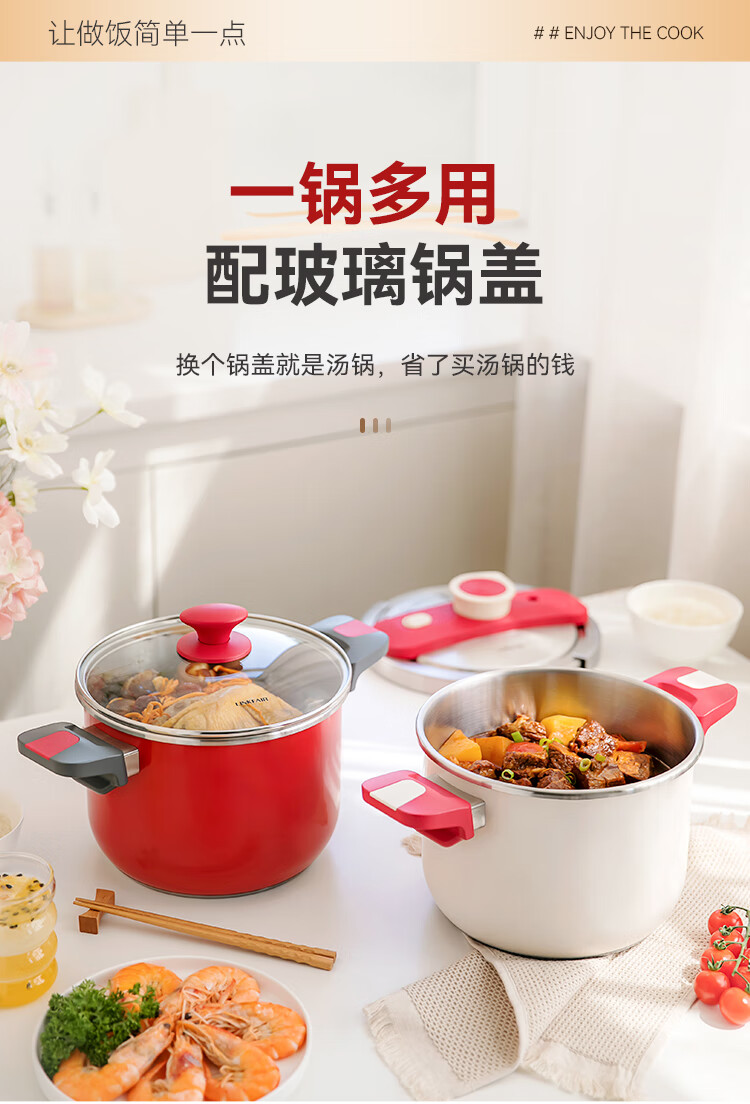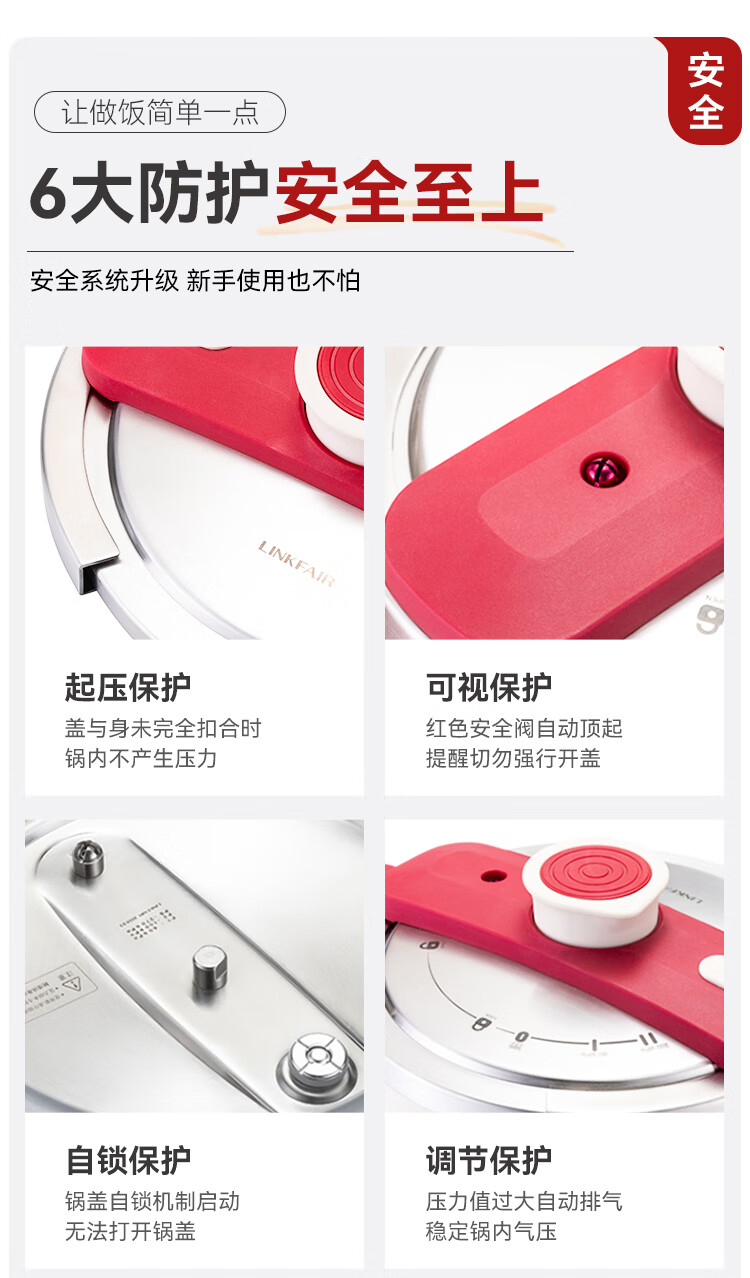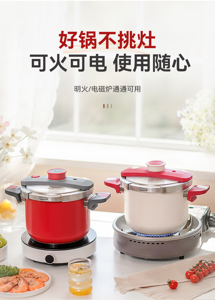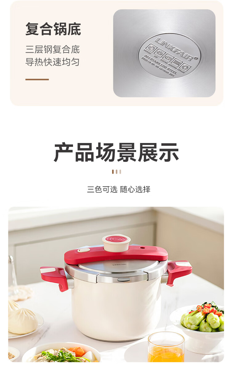 凌丰不锈钢高压锅家用压力锅防爆单手开合燃气电磁炉通用【京东限定】