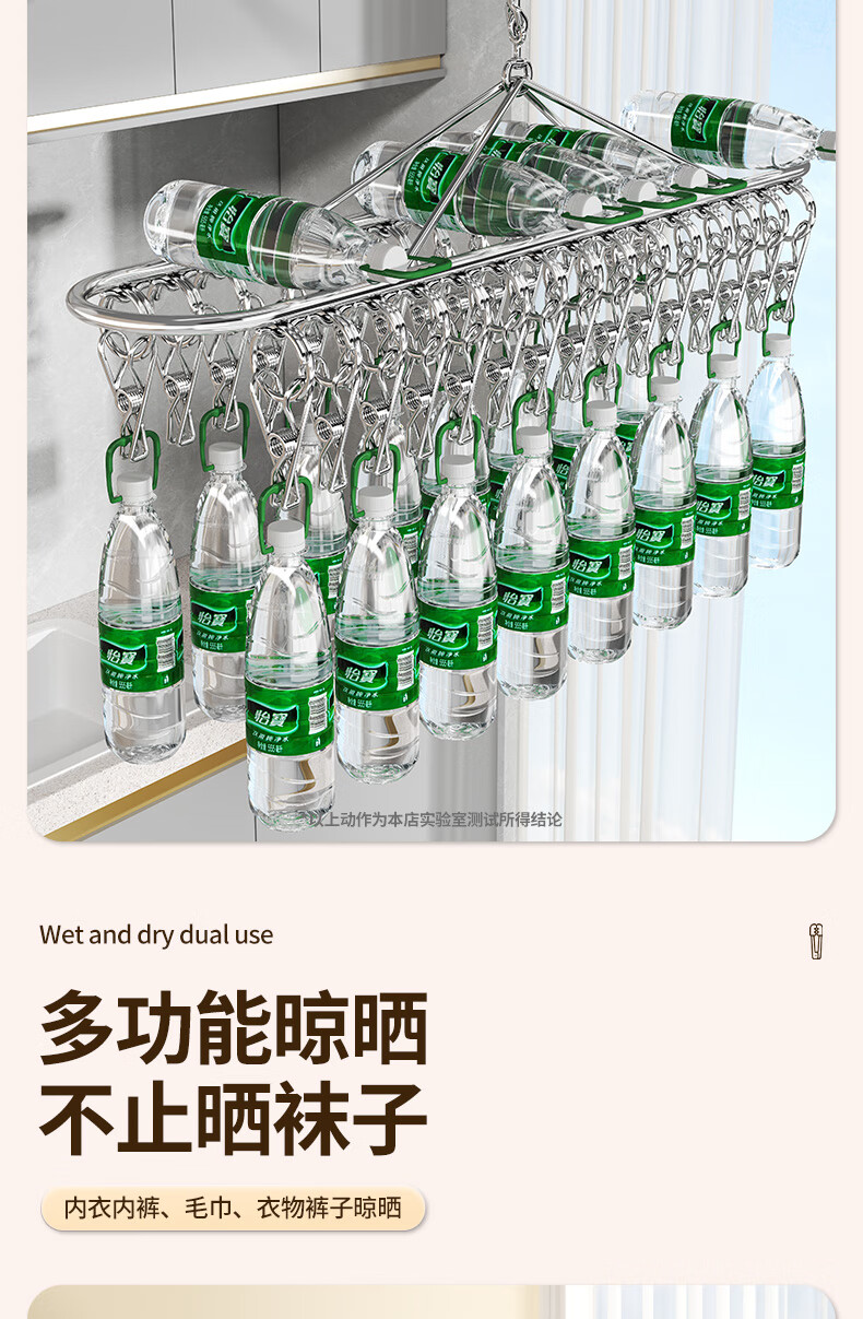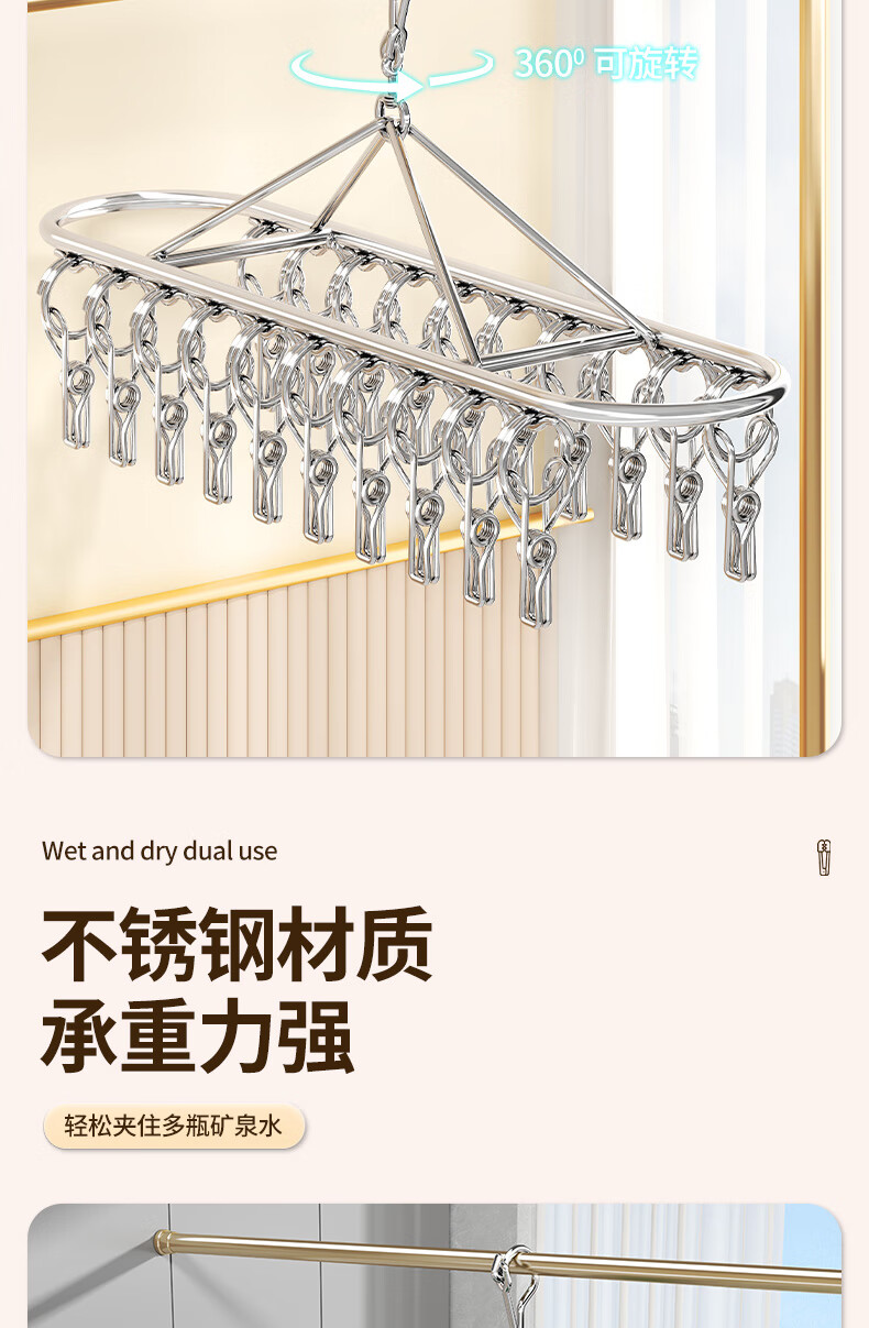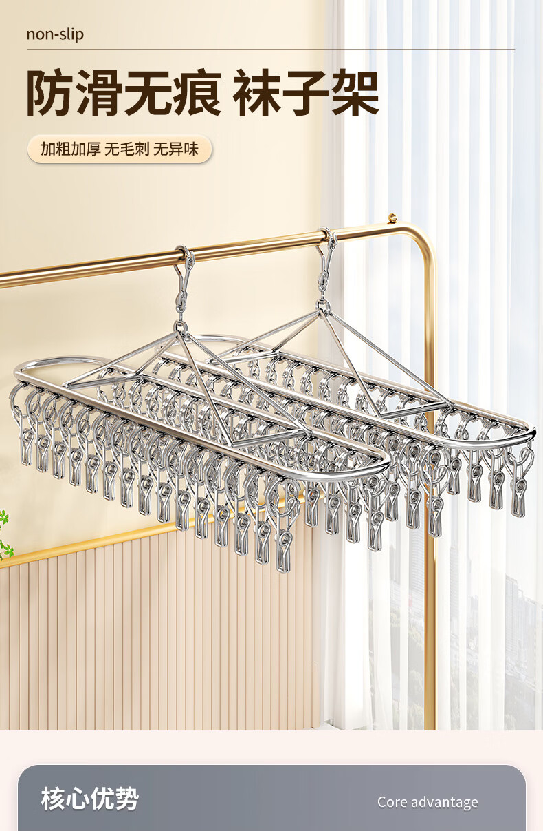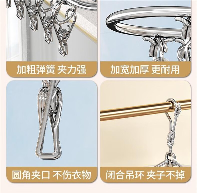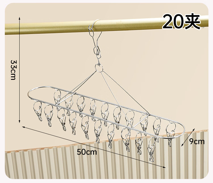梦庭不锈钢晾衣夹衣架 多功能袜架 多头晾晒夹子防风 20夹