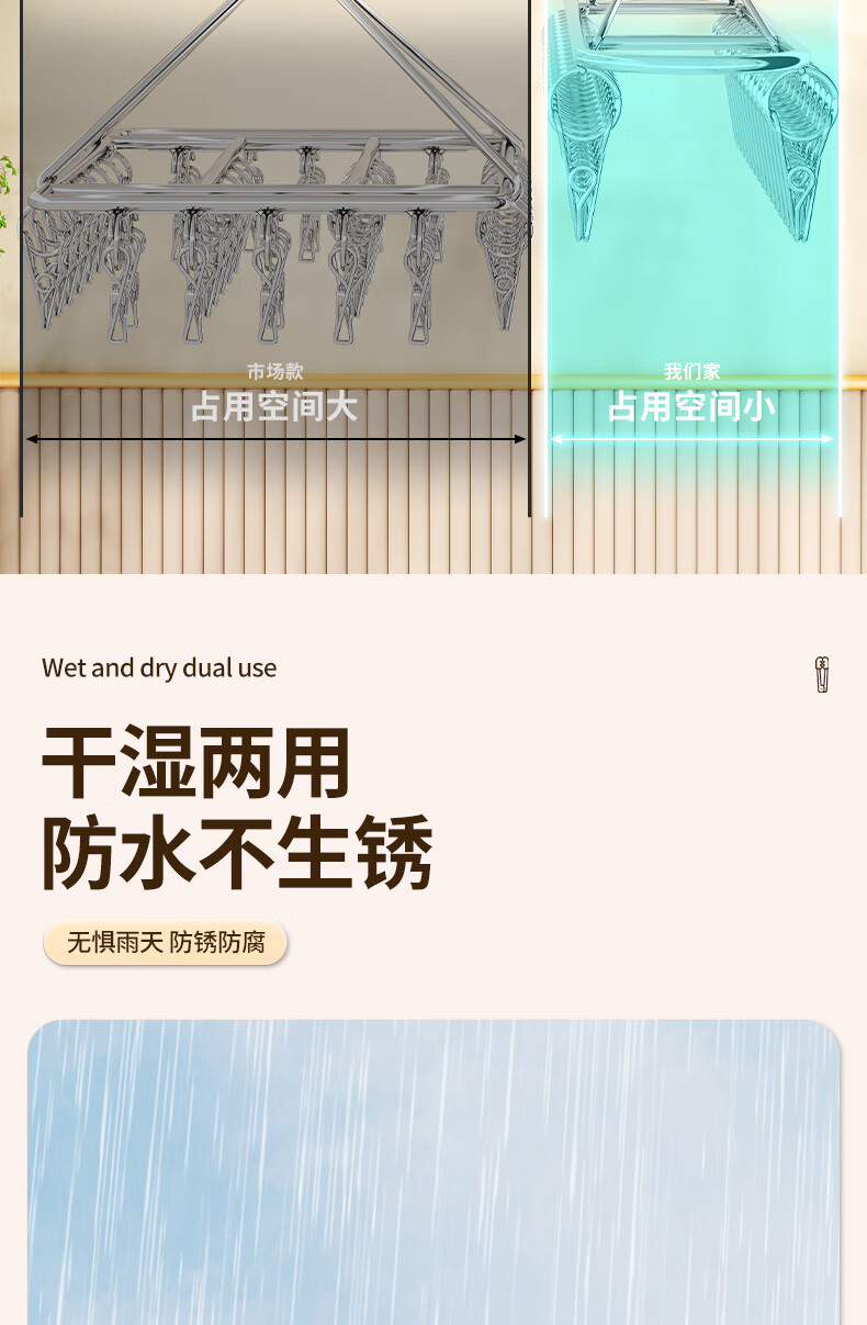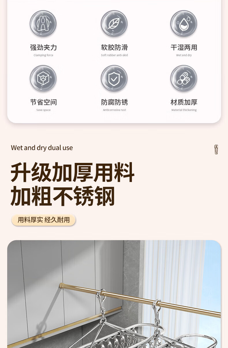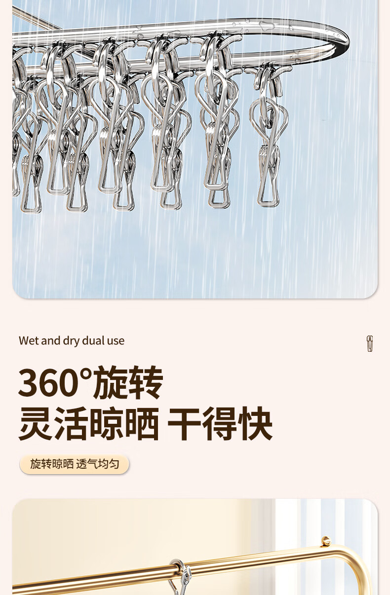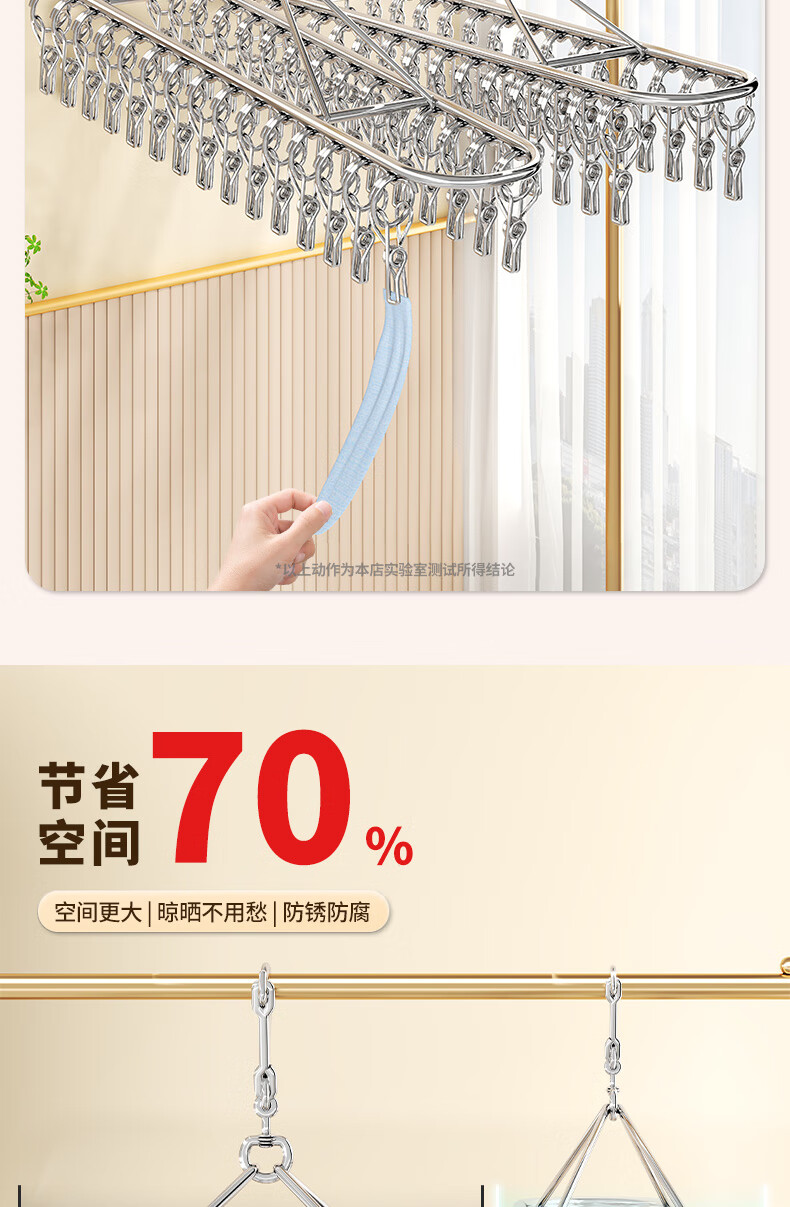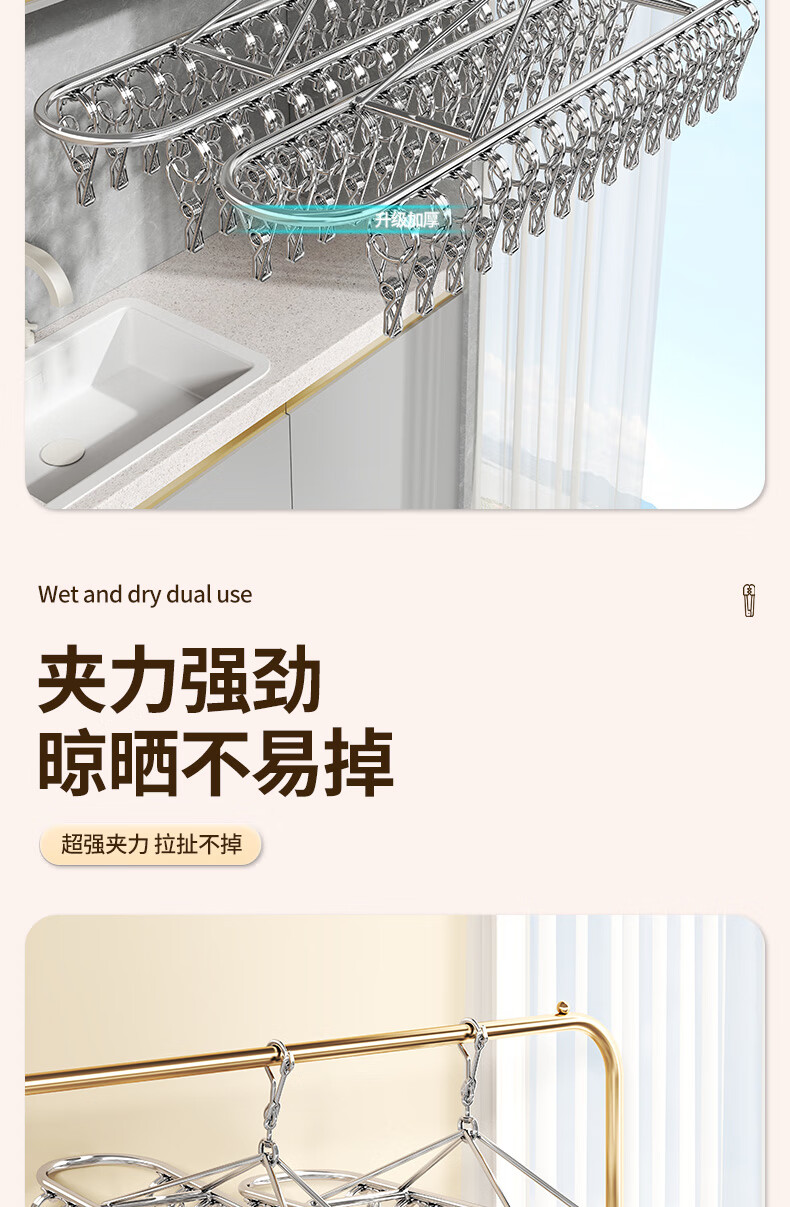 梦庭不锈钢晾衣夹衣架 多功能袜架 多头晾晒夹子防风 20夹