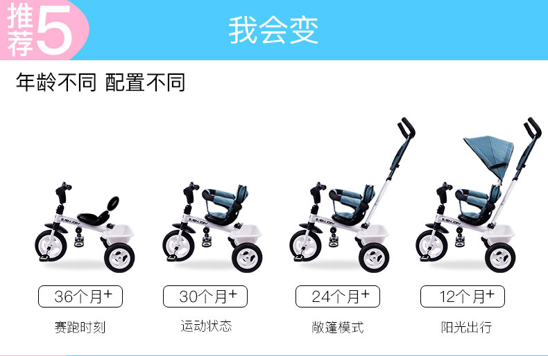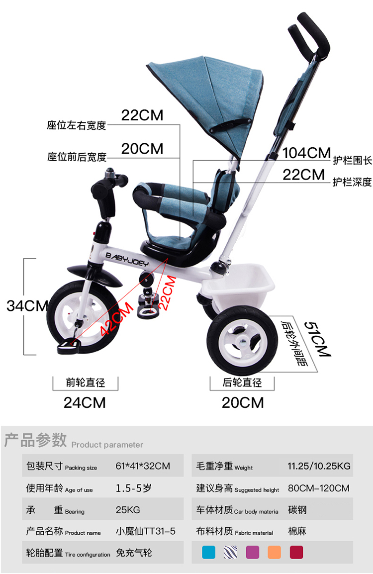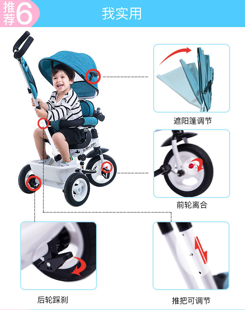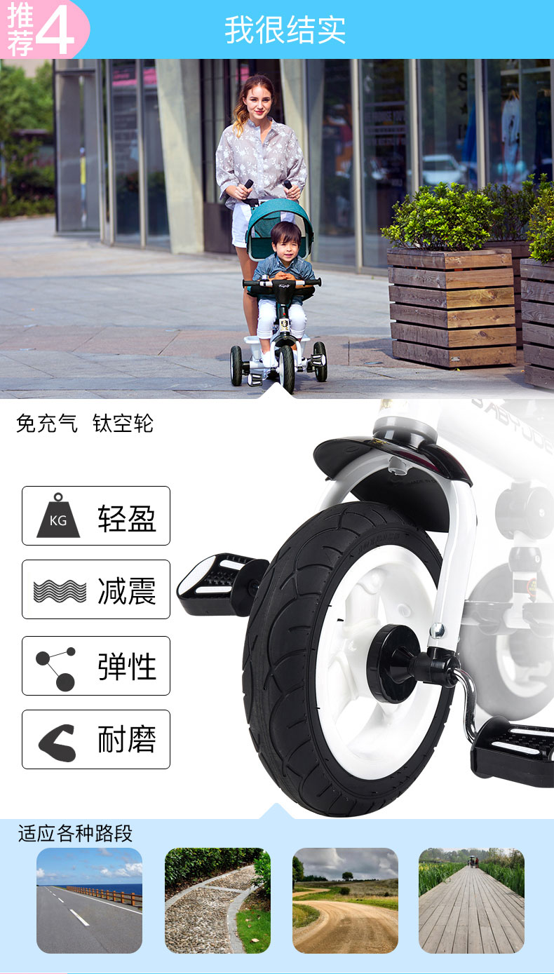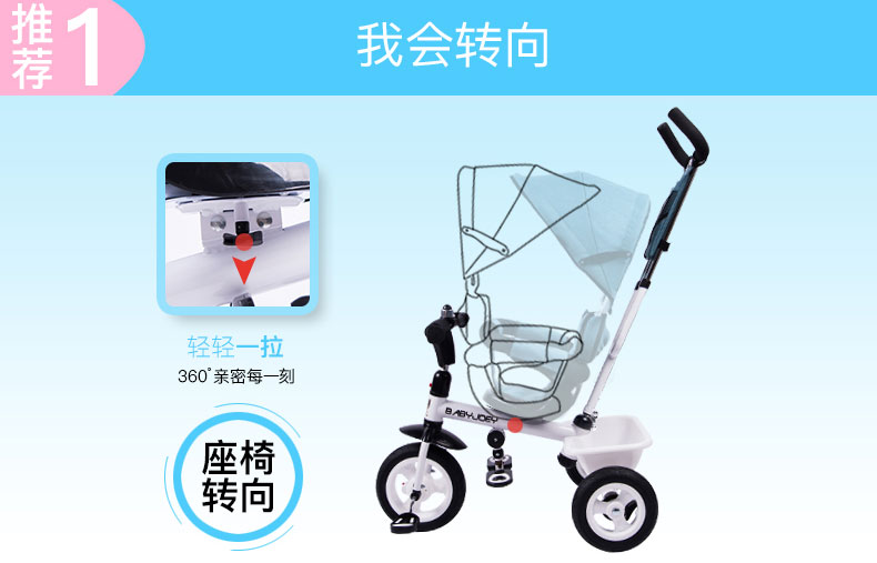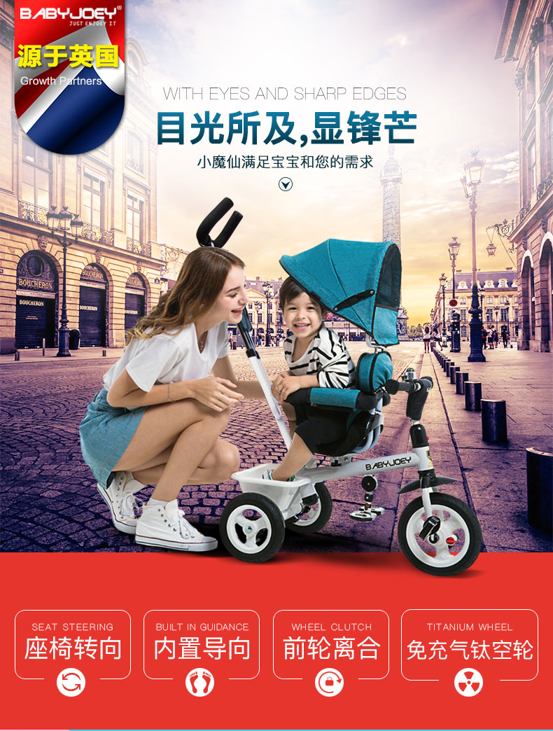 Babyjoey 英国儿童三轮车脚踏车手推车1-3-5岁宝宝自行车 小魔仙 精灵蓝