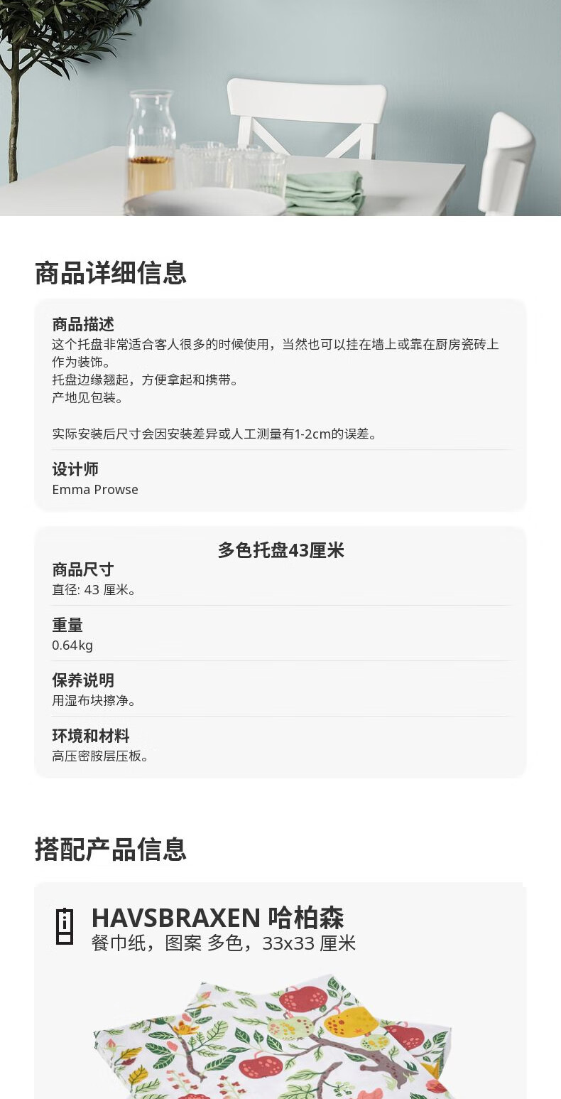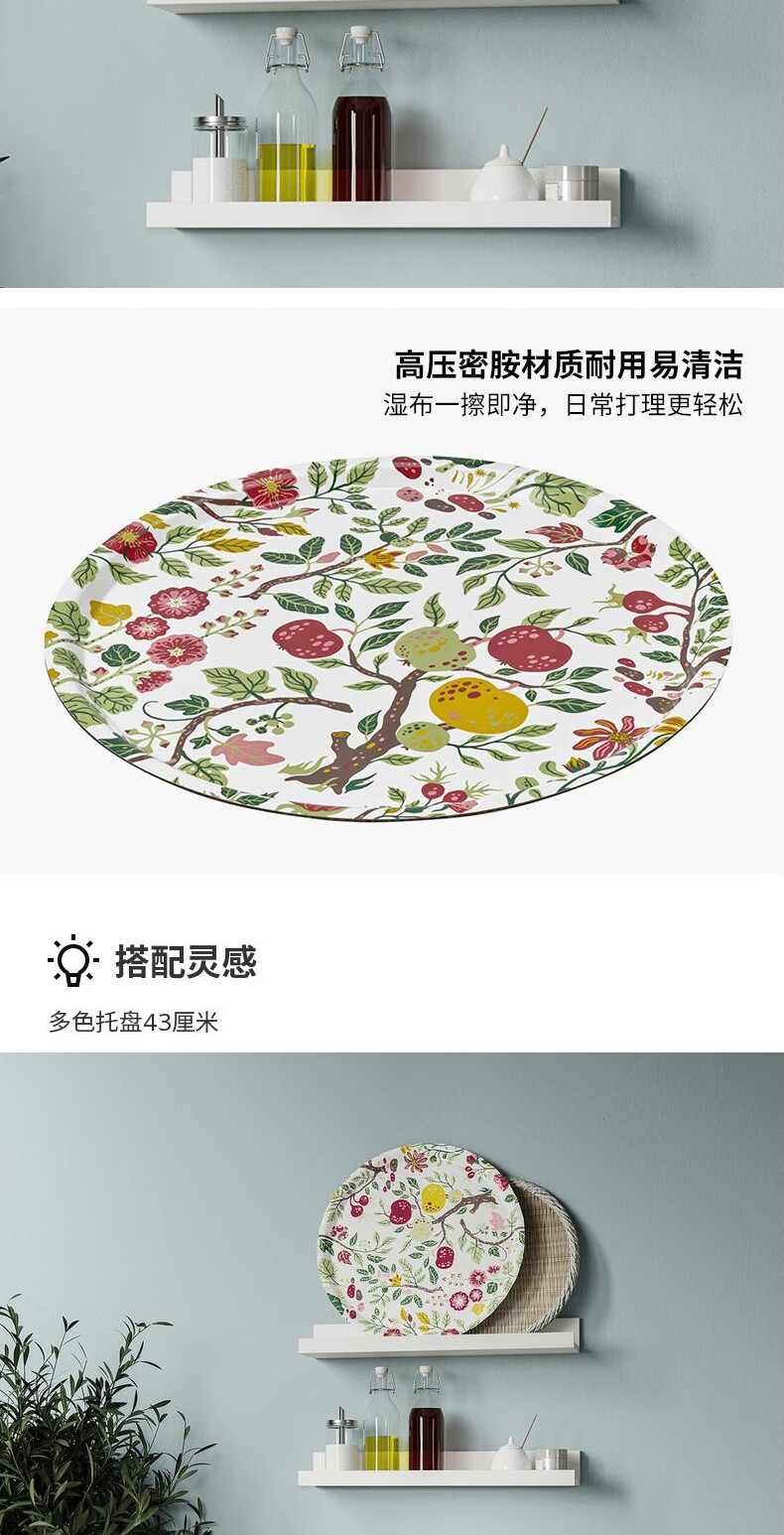 宜家(IKEA)【新品】HAVSBRAXEN哈柏森托盘茶水盘客厅零食盘家用 图案多色托盘43cm
