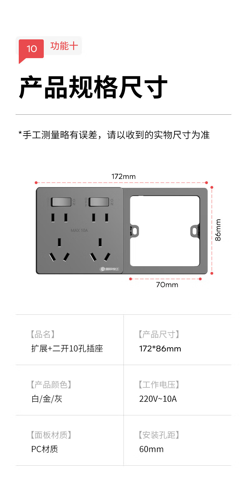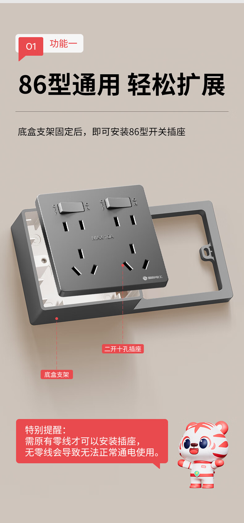 国际电工86型明装扩展开关插座一转多孔电源面板厨房多功能原位替换插座 【可上下扩展】白色空盒