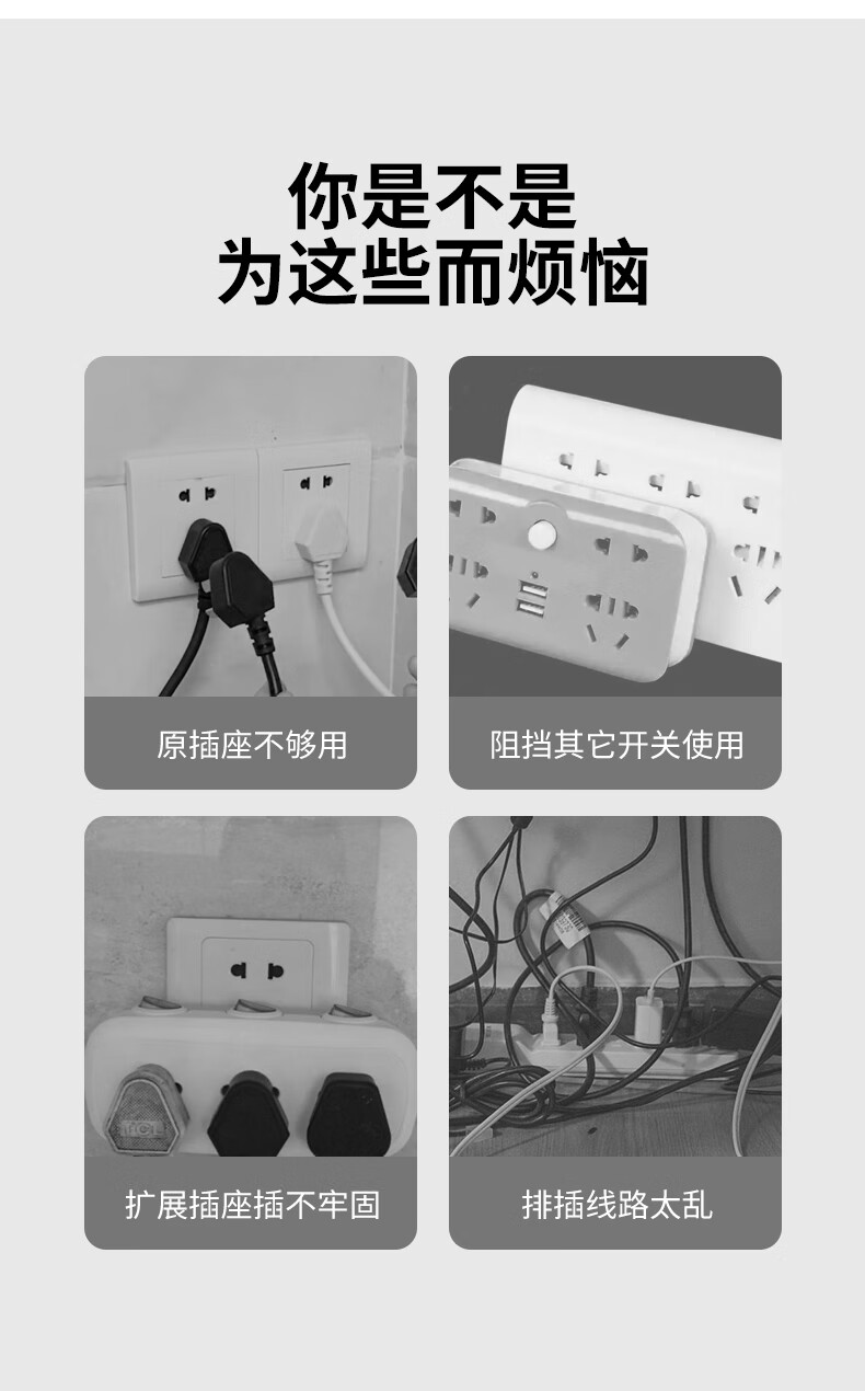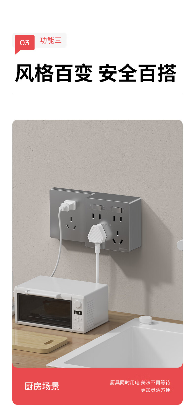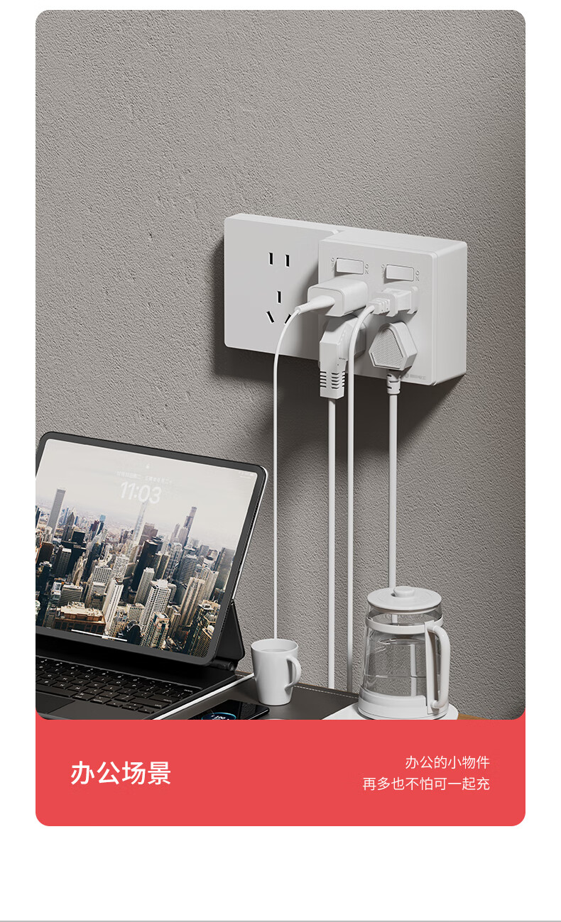 FDD国际电工20W快充带伸缩线86型直插转换器插座多功能一转四插板二合一接口 带C伸缩线一转四【A+C】灰色