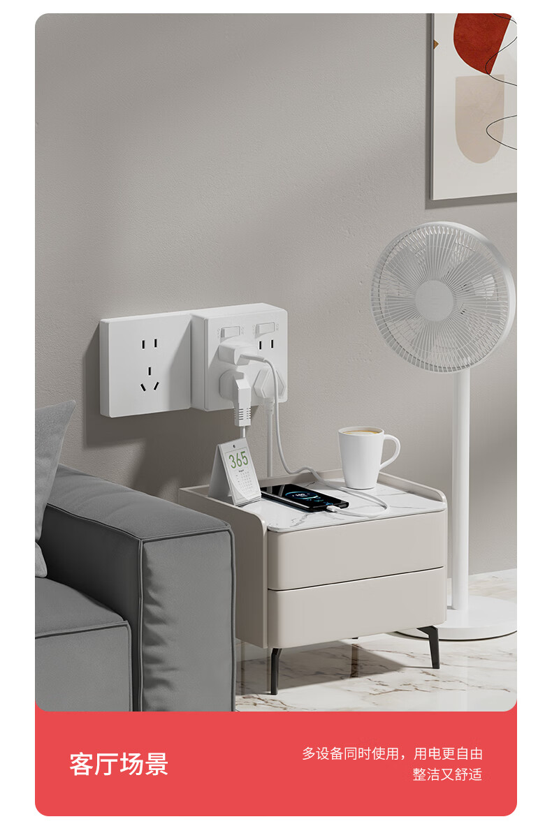 FDD国际电工20W快充带伸缩线86型直插转换器插座多功能一转四插板二合一接口 带C伸缩线一转四【A+C】白色